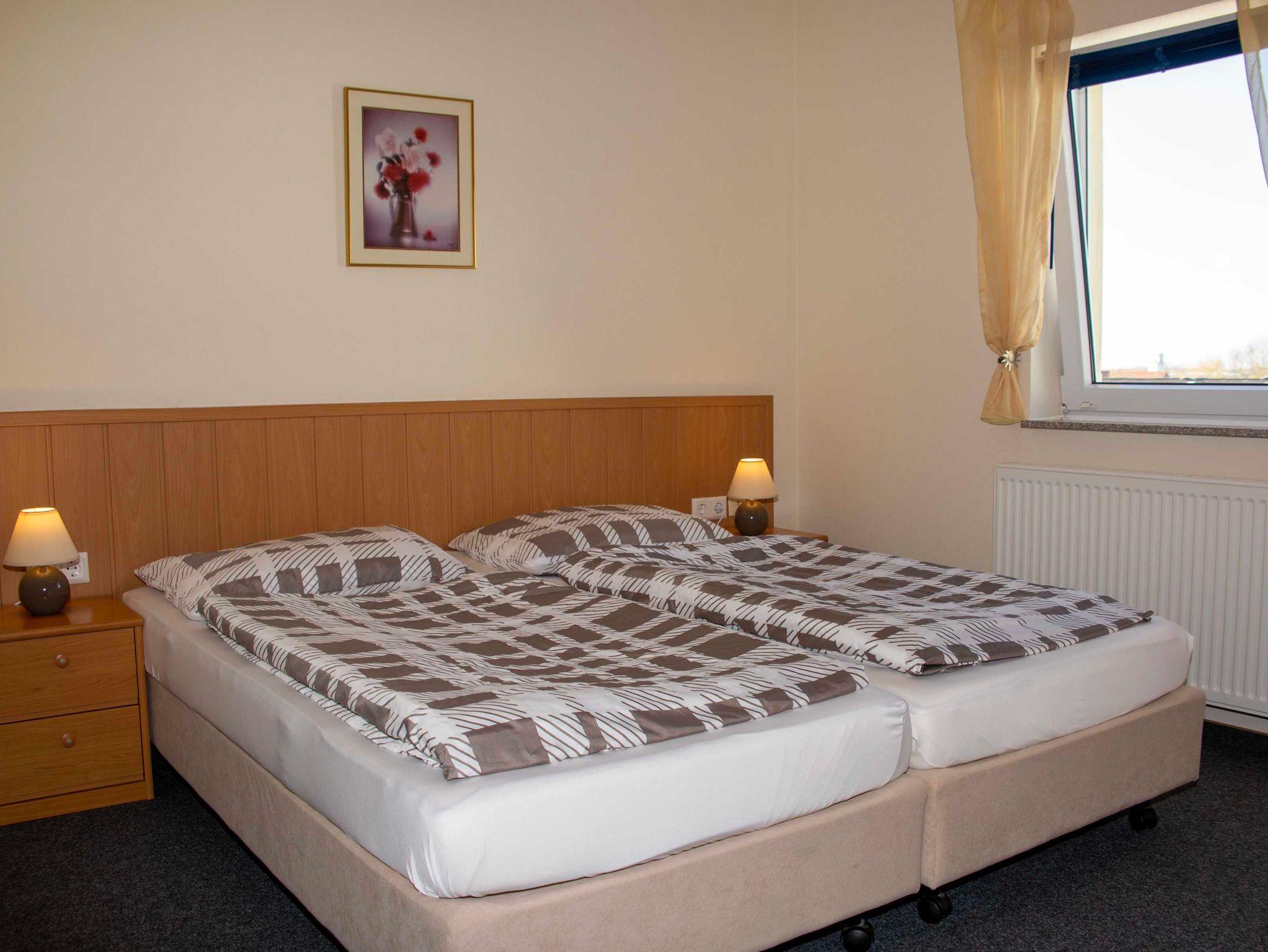 Die Wohnung verfügt über ein Schlafzimmer mit Doppelbett (2 getrennte Betten) und einem Einzelbett.