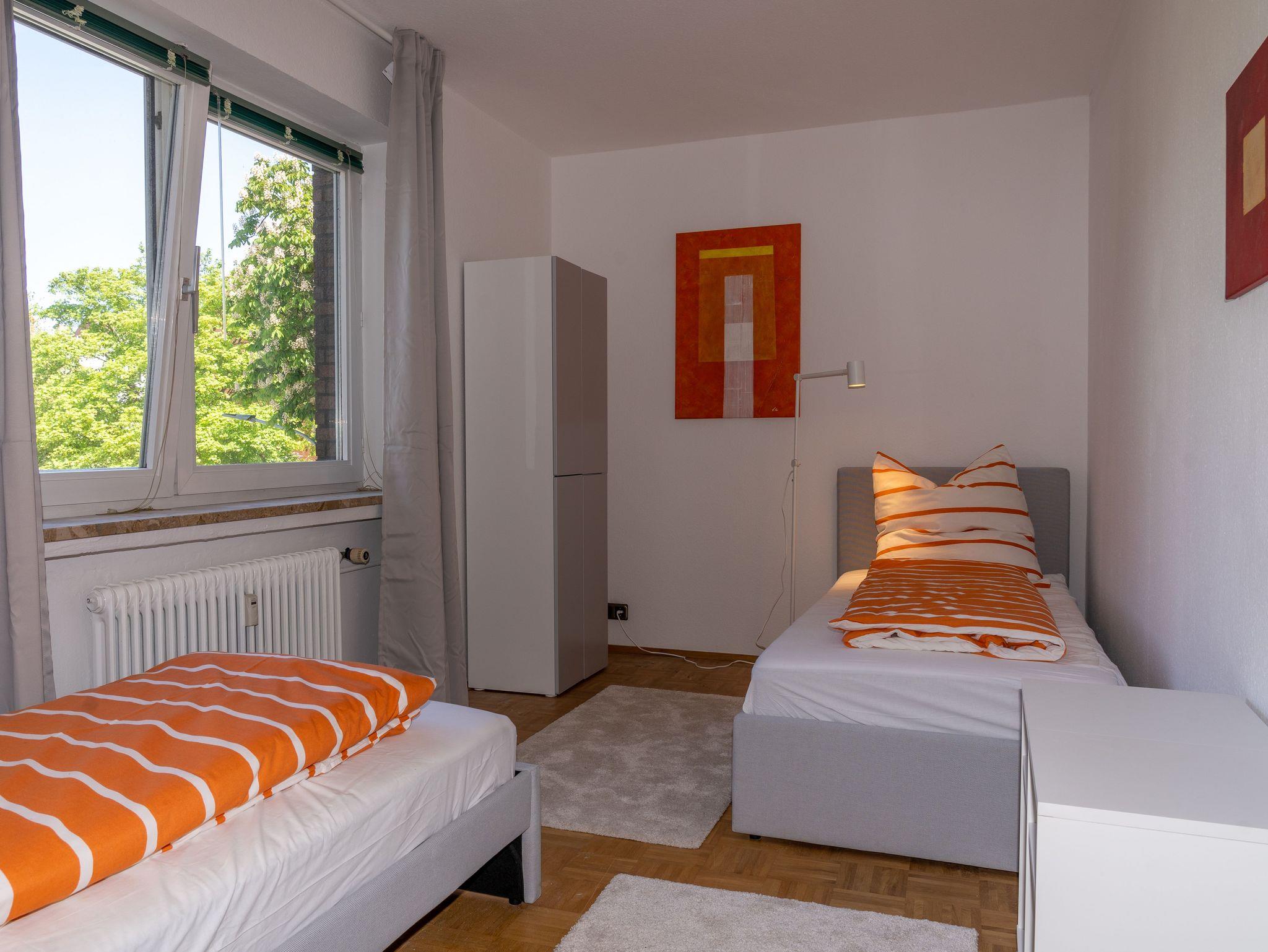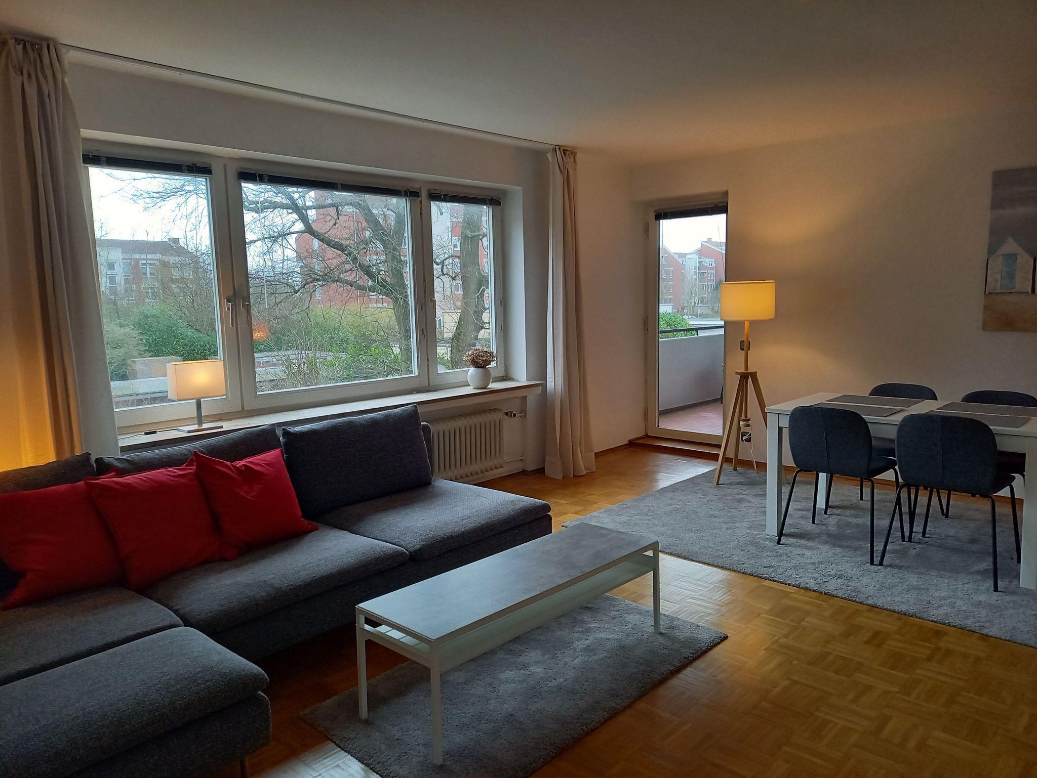 Große, geräumige Ferienwohnung am großen Hafen am Fuße der Kaiser Wilhelm Brücke gelegen bietet viel Platz für einen erholsamen und erlebnisreichen Urlaub für die ganze Familie. Der Südbalkon läd zum Verweilen an frischer Luft ein. Das große Wohnzimmer ist mit einem modernen Kabel-TV ausgestattet. WLAN ist in der gesamten Wohnung verfügbar. Die Küche ist ausgestattet mit einem Kühlschrank mit Gefrierfach, einem Ceranfeld-Herd und Backofen, einem Geschirrspüler, einer Mikrowelle, Frenchpress-Kaffeemachine, Toaster sowie Wasserkocher. Schlafzimmer 1 hat ein Doppelbett und Kleiderschrank, Schlafzimmer 2 ein französisches Bett sowie einen Kleiderschrank und das 3 Schlafzimmer wartet mit zwei Einzelbetten und einem Kleiderschrank auf. Die Zimmer können verdunkelt werden.