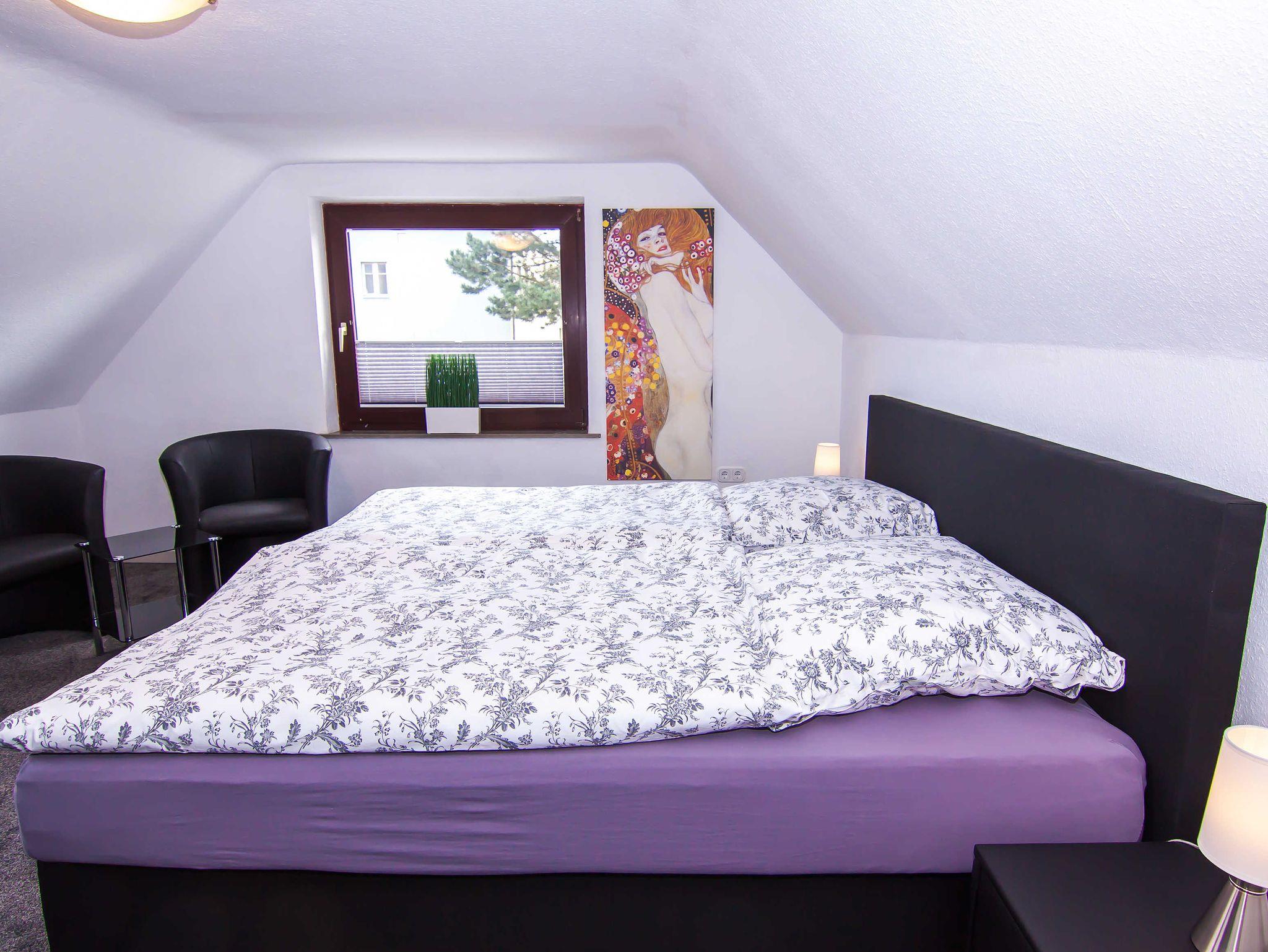 Flachbildfernseher in den Schlafzimmern und WLAN sind selbstverständlich für diese Wohnung. Eine gemütliche Wohnküche und drei autarke Wohn-Schlafräume sowie WC und Dusche getrennt bieten auch Firmenmitarbeitern eine optimale Unterkunft. Sie haben die Möglichkeit überdacht draußen zu sitzen.