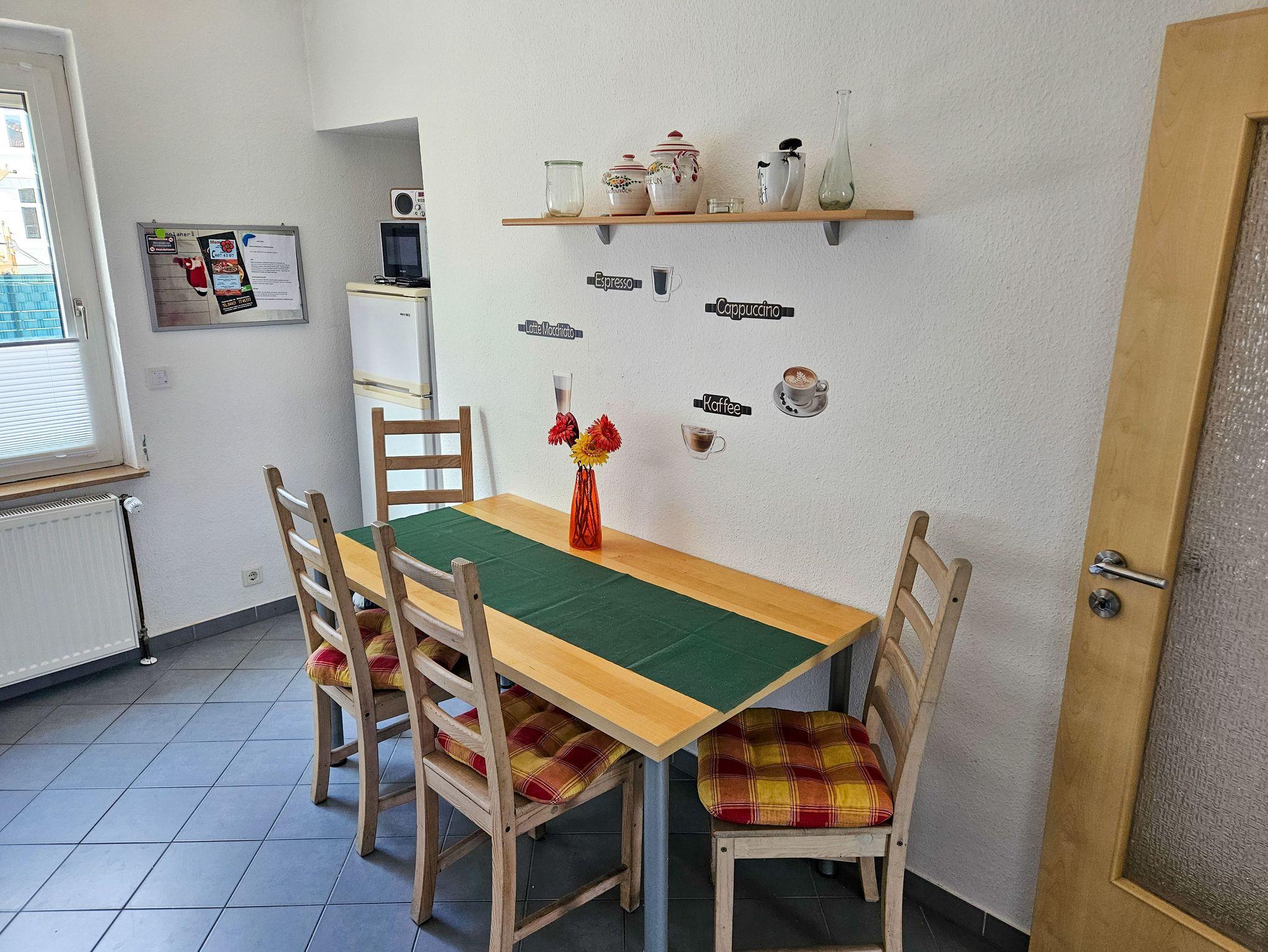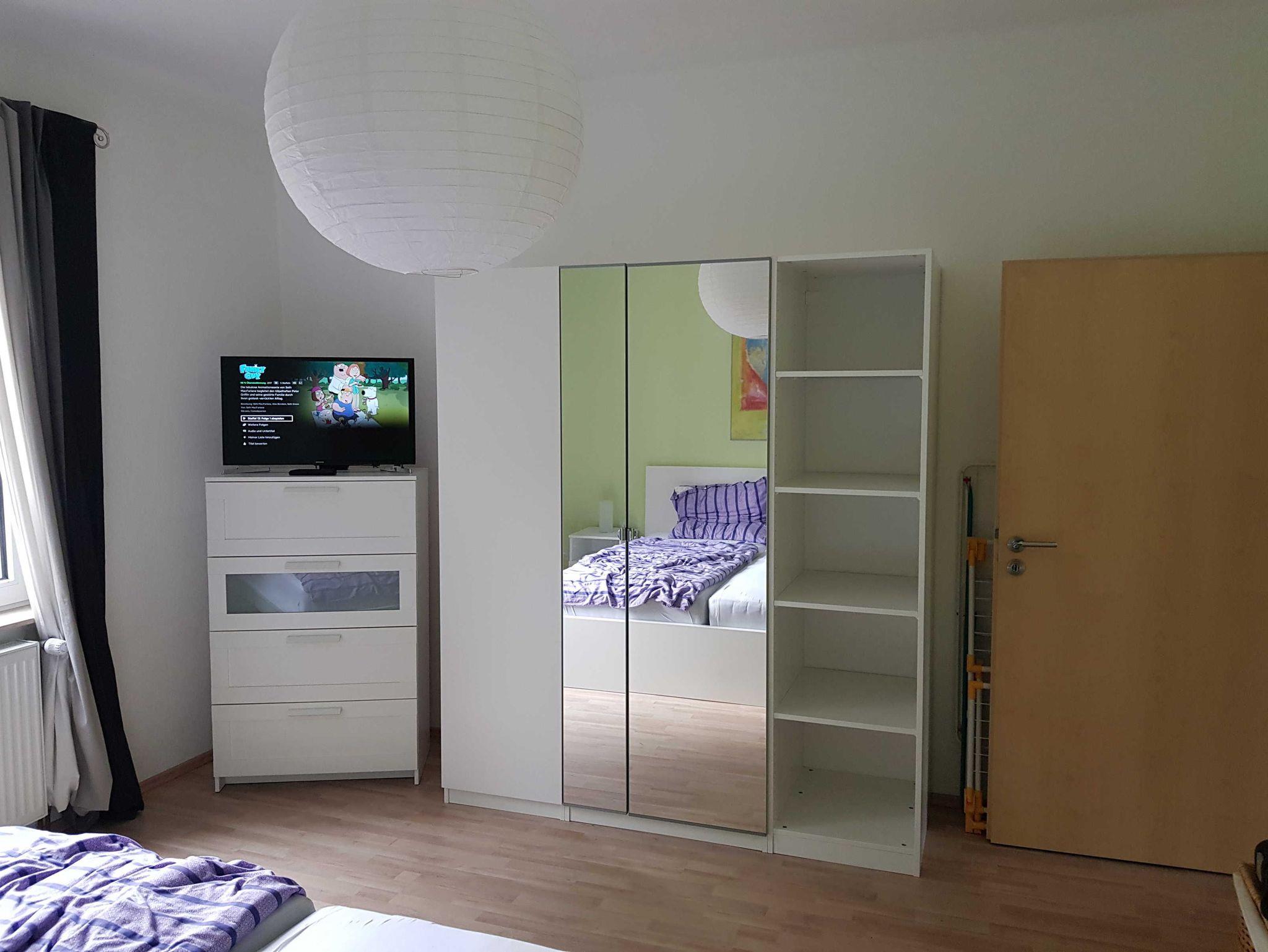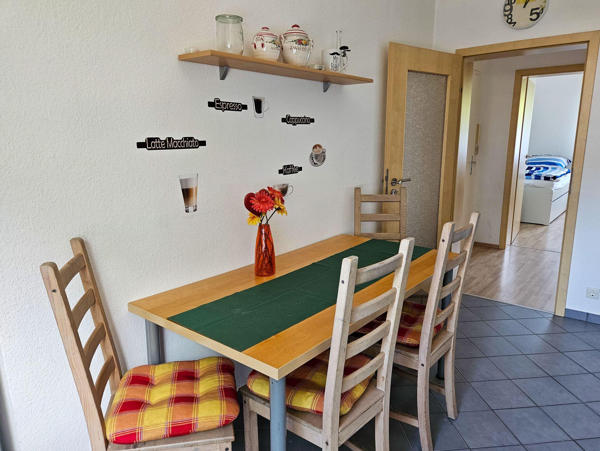 Die Wohnung bietet seinen Gästen 2 Schlafzimmer an. Das große Schlafzimmer ist mit einem Doppelbett, Kleiderschrank und einem weiteren Fernseher ausgestattet, während das kleine Schlafzimmer ein Einzelbett bietet, welches ausgezogen werden kann zu zwei vollwertigen Einzelbetten. Das 2. Schlafzimmer ist ebenfalls mit einem modernen Fernseher ausgestattet. Ein Kinderreisebett sowie ein Hochstuhl steht ebenfalls zur Nutzung bereit. Die gemütliche Wohnküche ist voll ausgestattet und lädt zum kulinarischen Zaubern ein. Im Wohnzimmer gibt es einen Kaminofen sowie ein Fernseher, HiFi-Anlage und DVD-Player. WLAN ist selbstverständlich für diese familienfreundliche Wohnung. Ein weiteres Highlight ist die Eckbadewanne im Bad.