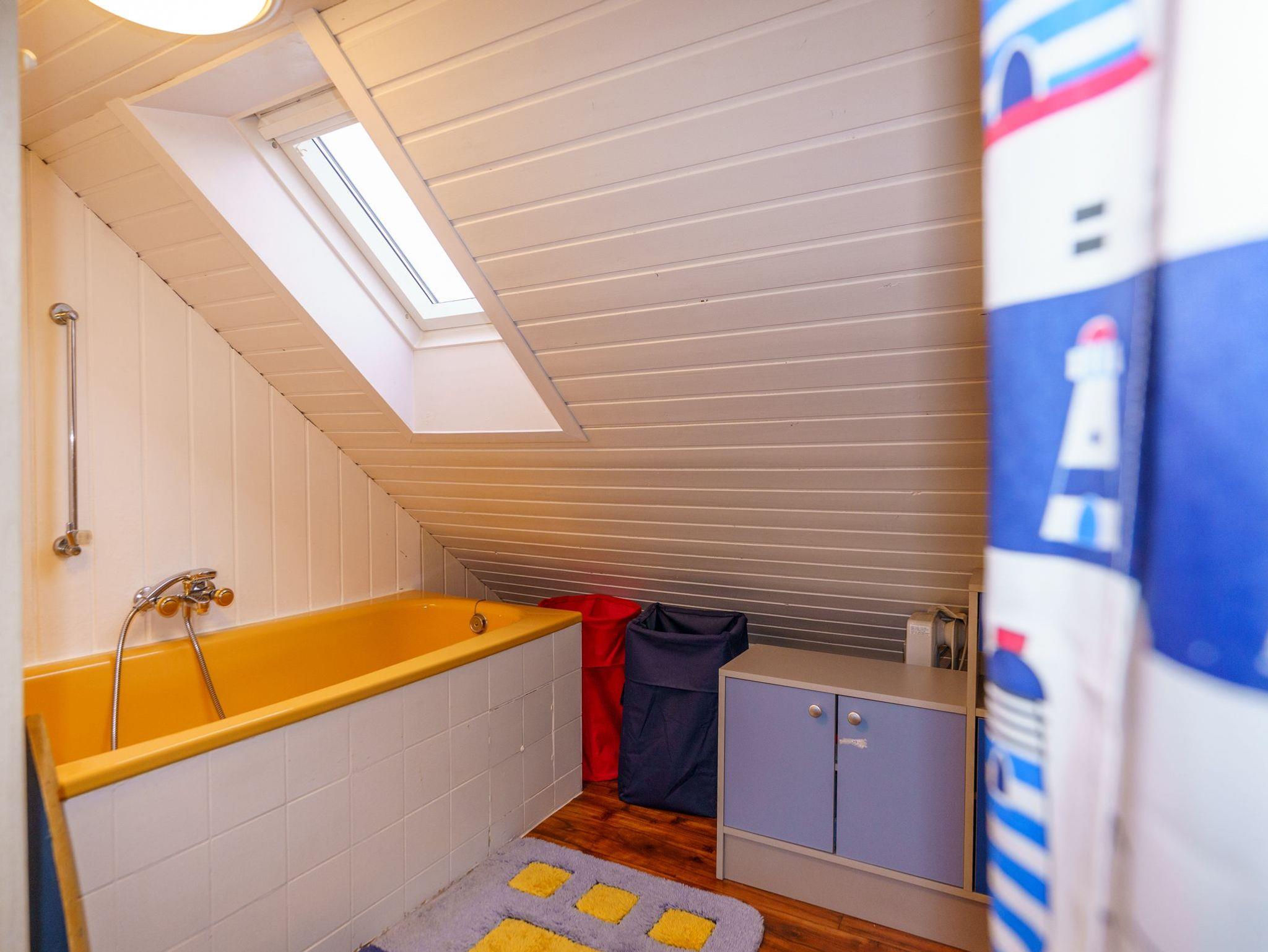 Ein kleiner Geschirrspüler hat ebenfalls Platz in der gemütlichen Wohnküche gefunden. Zu den Sanitäranlagen gehört zum einen eine Badewanne sowie ein Föhn zum Trocknen der Haare. Um sich zwischendurch zu vergnügen, steht Ihnen ein LCD-TV von Samsung mit Kabel-TV von Vodafone sowie WLAN zur Verfügung. Es ist aber auch möglich über einen DVD-Player den einen oder anderen interessanten Film zu gucken. Wer eher einen ruhigen Ort sucht, um frische Luft zu schnuppern, hat hier die Möglichkeit, einen Außensitzplatz von einer Fläche von 25 qm zu nutzen, welcher sich am Haus befindet. Um den Tag dann gemütlich zu beenden, gibt es zwei Betten mit den Maßen 1,40 x 2,00 m und 1,60 x 2,00 m, sowie noch ein Schlafsofa mit den Maßen 1,20 x 2,00 m.
