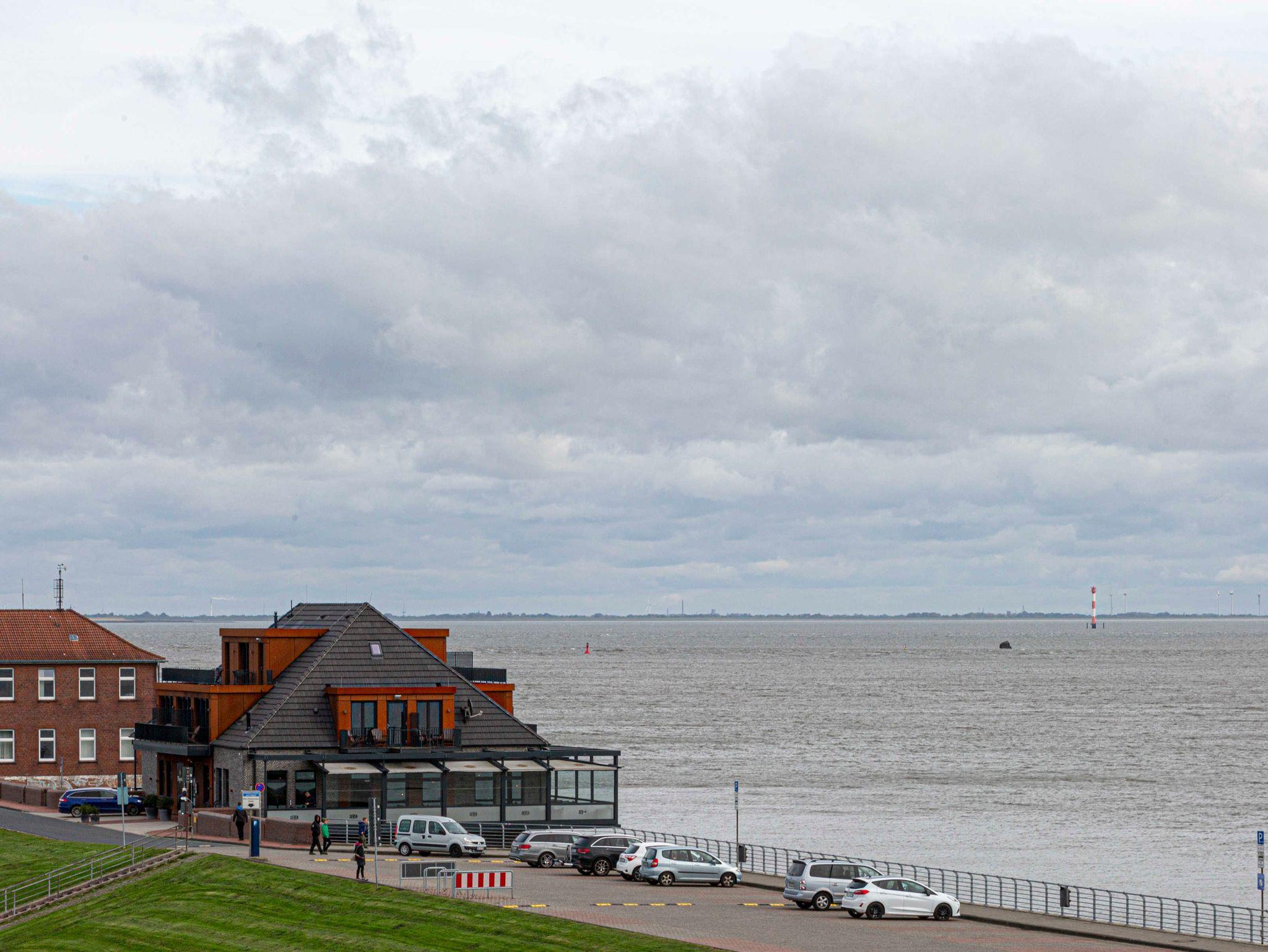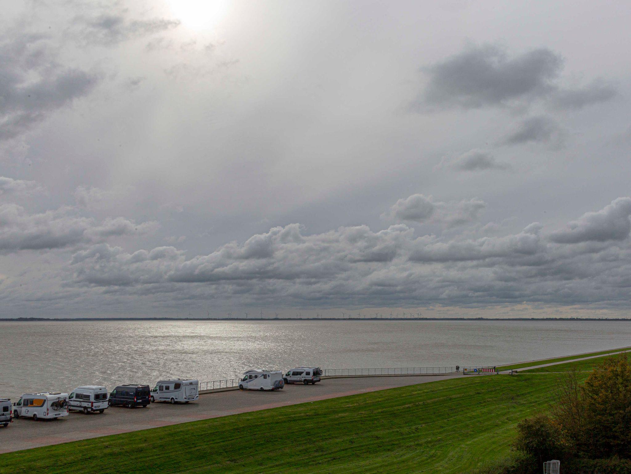 Auf der einen Seite der große Hafen und auf der anderen Seite derJadebusen - mehr Wasser geht nicht !