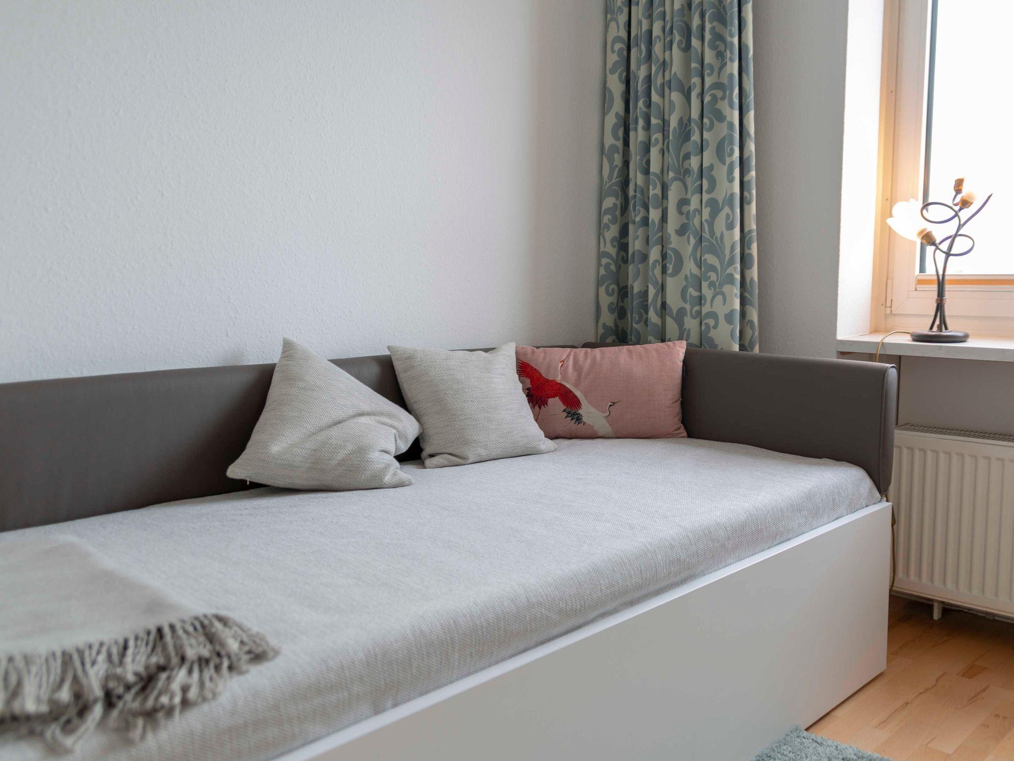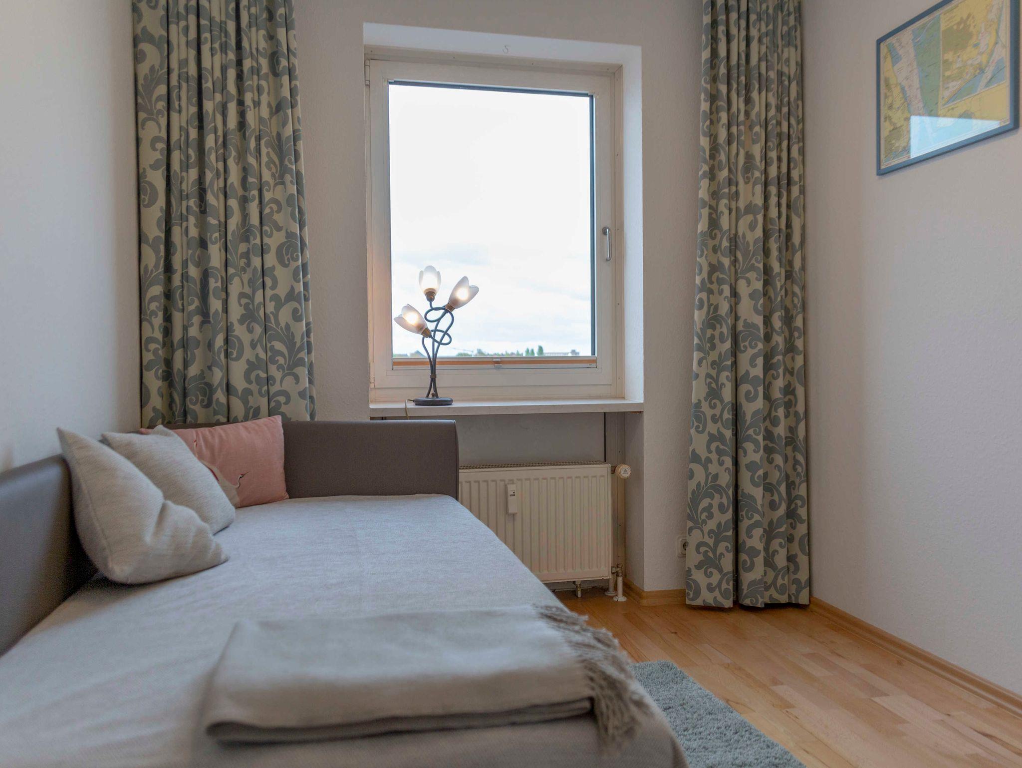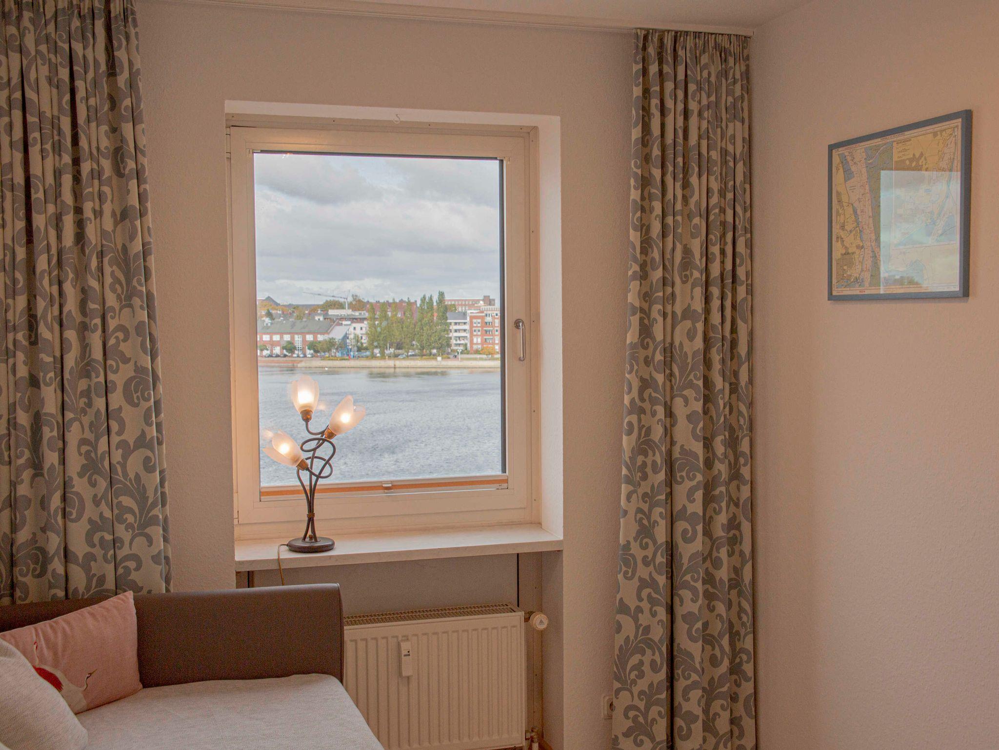 Das schön ausgestattete Schlafzimmer mit Blick auf den Innenhafen, das zweite Schlafzimmer mit eine funktionellen und gemütlichen Schlafcouch, sowie das Bad mit Dusche und einer Waschmaschine lassen den Aufenthalt zum Urlaubserlebnis werden.