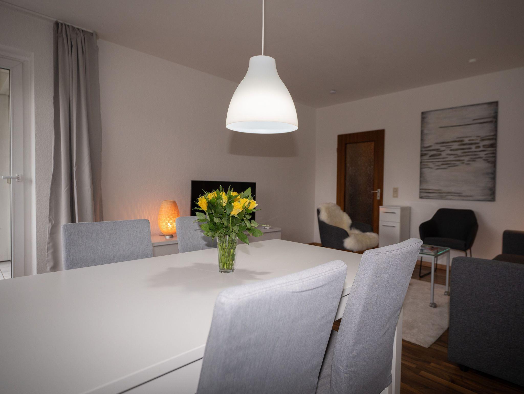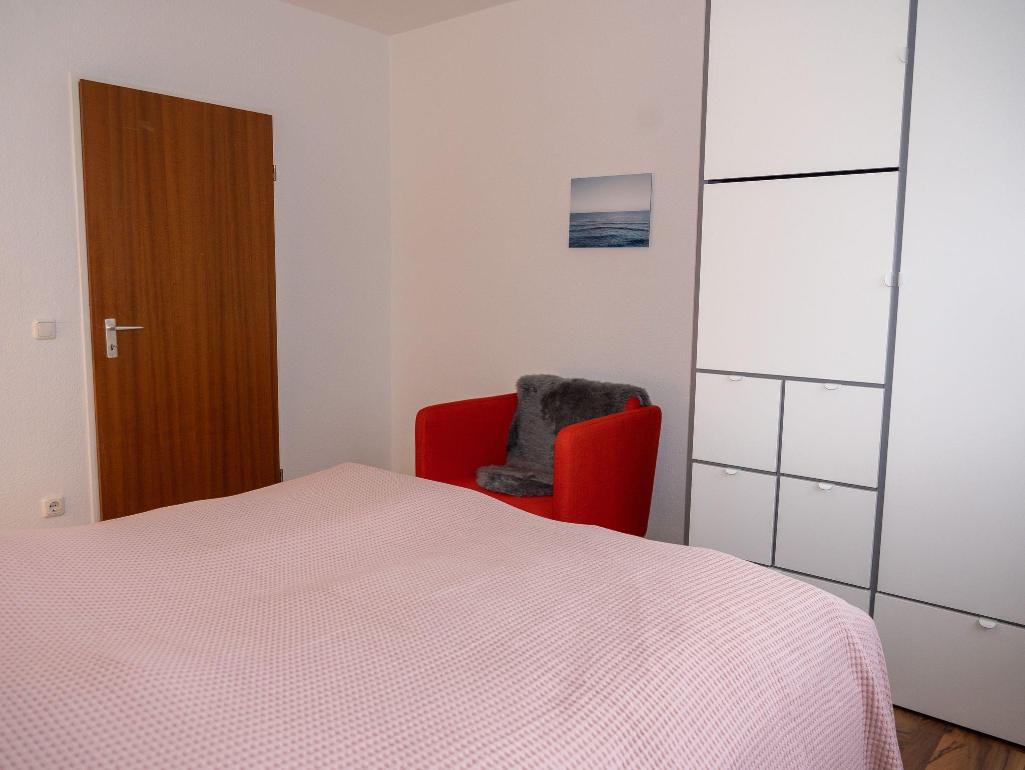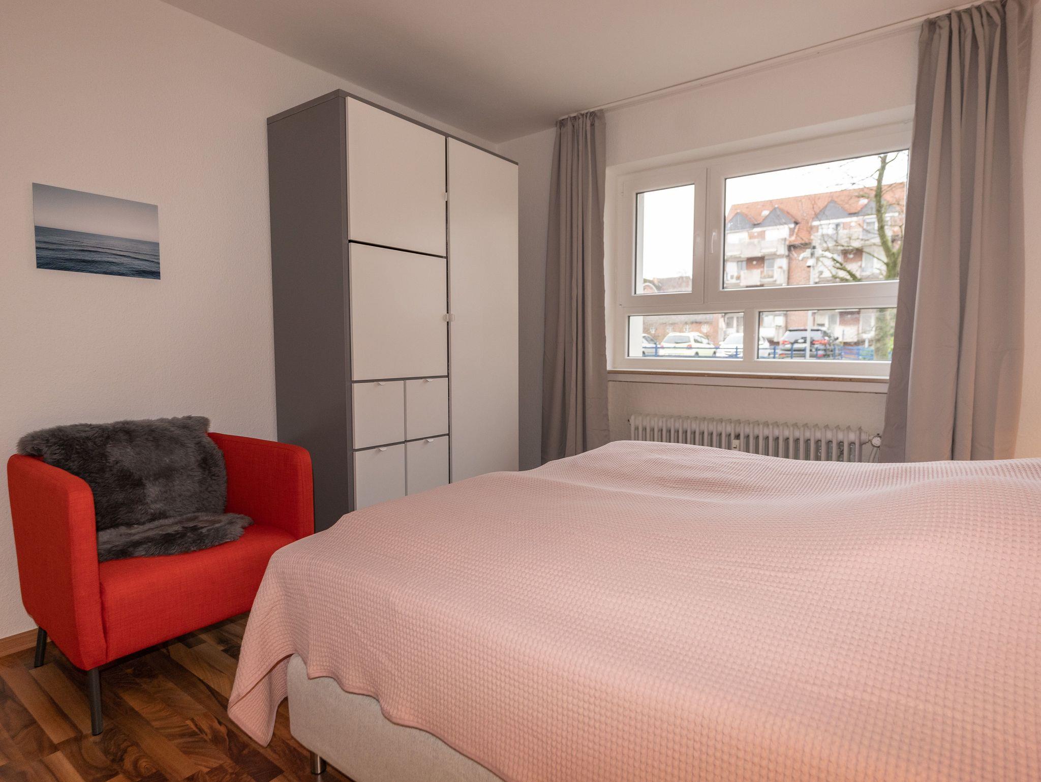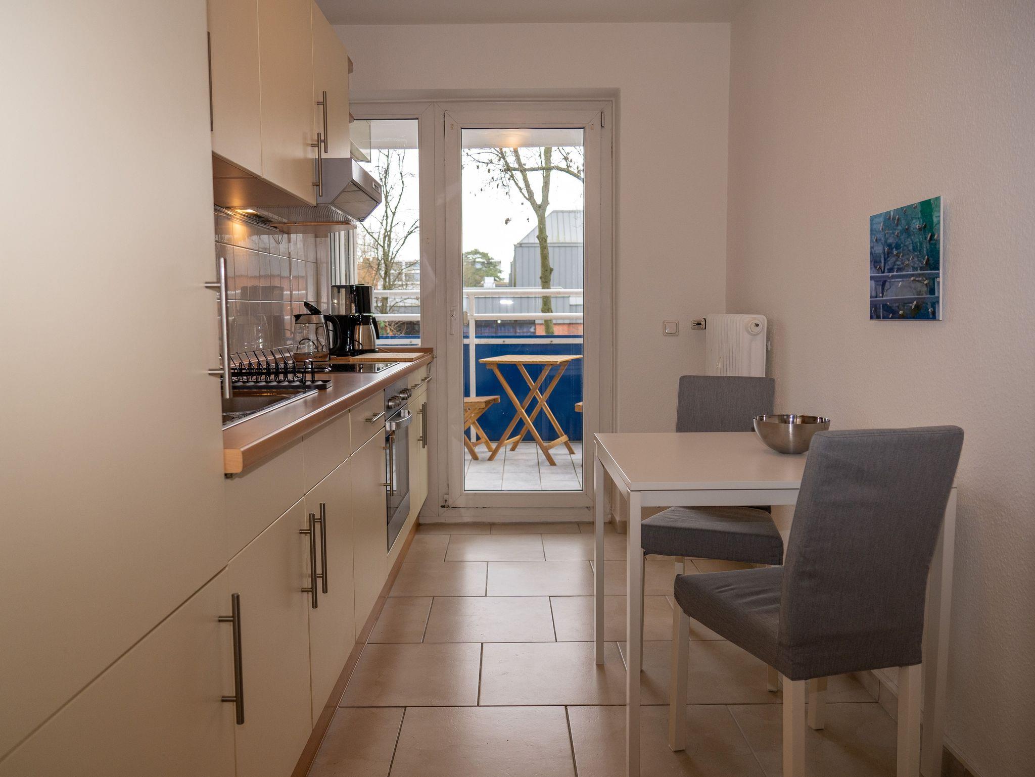 Die Ferienwohnung Havenhuus bietet Schlafplätze für bis zu vier Personen. Der große Wohnraum ist mit einer gemütlichen Couch, die mit wenigen Griffen zu einem vollwertigen Bett (1,40 x 2,00 m) umgebaut werden kann, ausgestattet. An der Fensterfront befindet sich ein Esstisch mit 4 Stühlen. WLAN und ein Smart-TV (Kabelanschluß) bieten Ihnen Gelegenheit zur Entspannung und Verbindung mit der digitalen Welt. Vom Wohnzimmer aus gelangen Sie auf den überdachten Balkon. Einen weiteren Zugang zum Außenbereich wird Ihnen durch die Küche ermöglicht. Diese ist ausgestattet mit einem kleinen Tisch mit zwei Stühlen, Ceranfeld Herd mit Backofen, Geschirrspüler, Kaffemaschine, Wasserkocher, Toaster, Kühlschrank mit Gefrierfach sowie Pött und Pann. Das Schlafzimmer verfügt über ein Doppelbett (1,60 x 2,00 m) sowie einen Kleiderschrank. Im Wohnzimmer und im Schlafzimmer sind die Fenster mit Verdunkelungsvorhängen versehen.