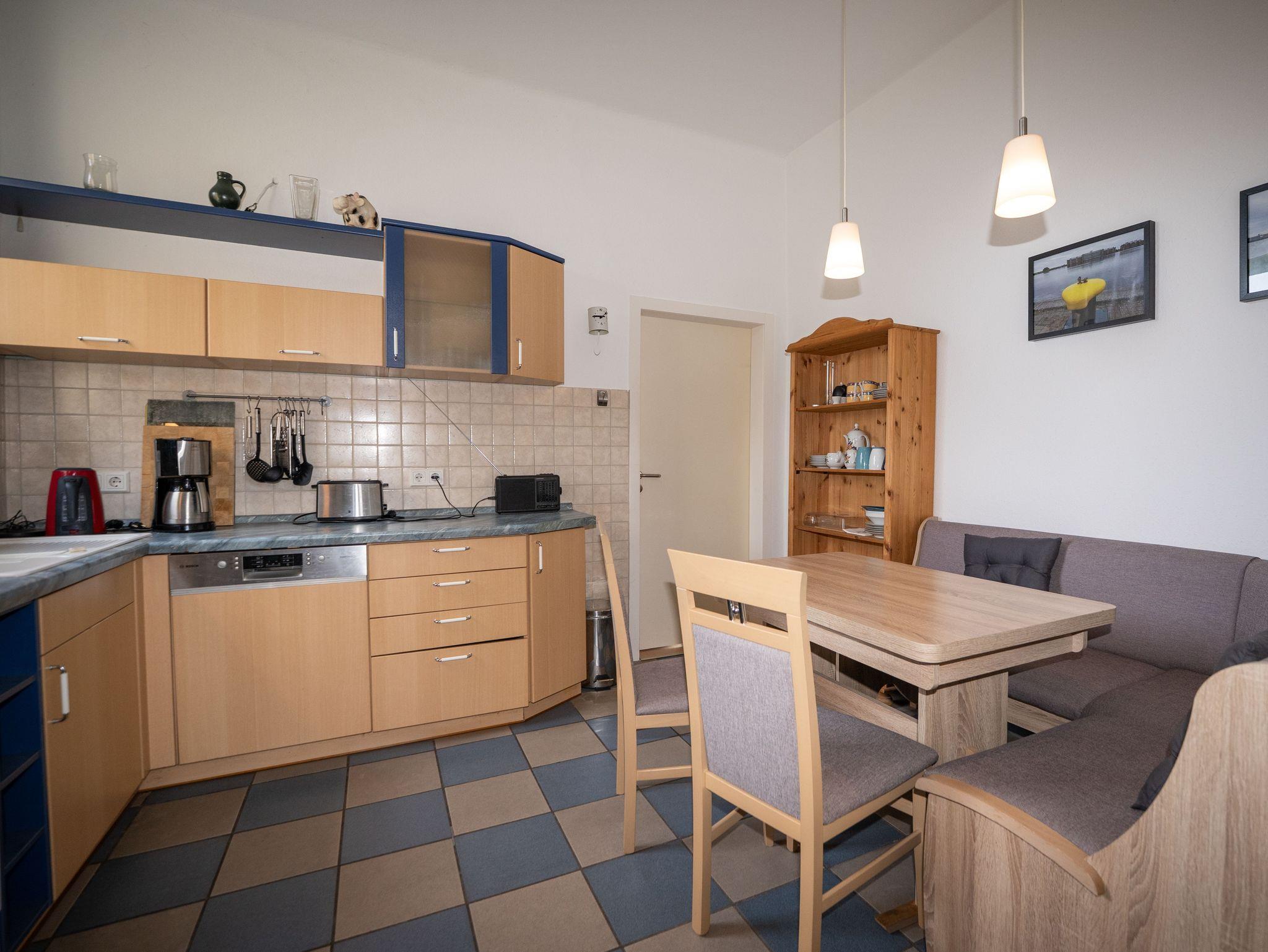 Diese lichtdurchflutete Altbauwohnung bietet 4 Personen in 2 getrennten Schlafräumen, einer vollständig ausgestatteten Küche, einem Tageslichtbad mit Dusche (Fön ist vorhanden), einem großen Wohnraum mit modernster TV-Technik, CD- und DVD-Spieler sowie einem überdachten kleinen Balkon ausreichend Platz an. Beide Schlafzimmer verfügen über einen Fernseher. WLAN ist eine Selbstverständlichkeit für diese Wohnung. Auch ist eine Waschmaschine vorhanden, die bei längeren Aufenthalten von vielen Gästen geschätzt wird. Ein Kinderbett kann bei Bedarf über die Hausverwalterin bereitgestellt werden.