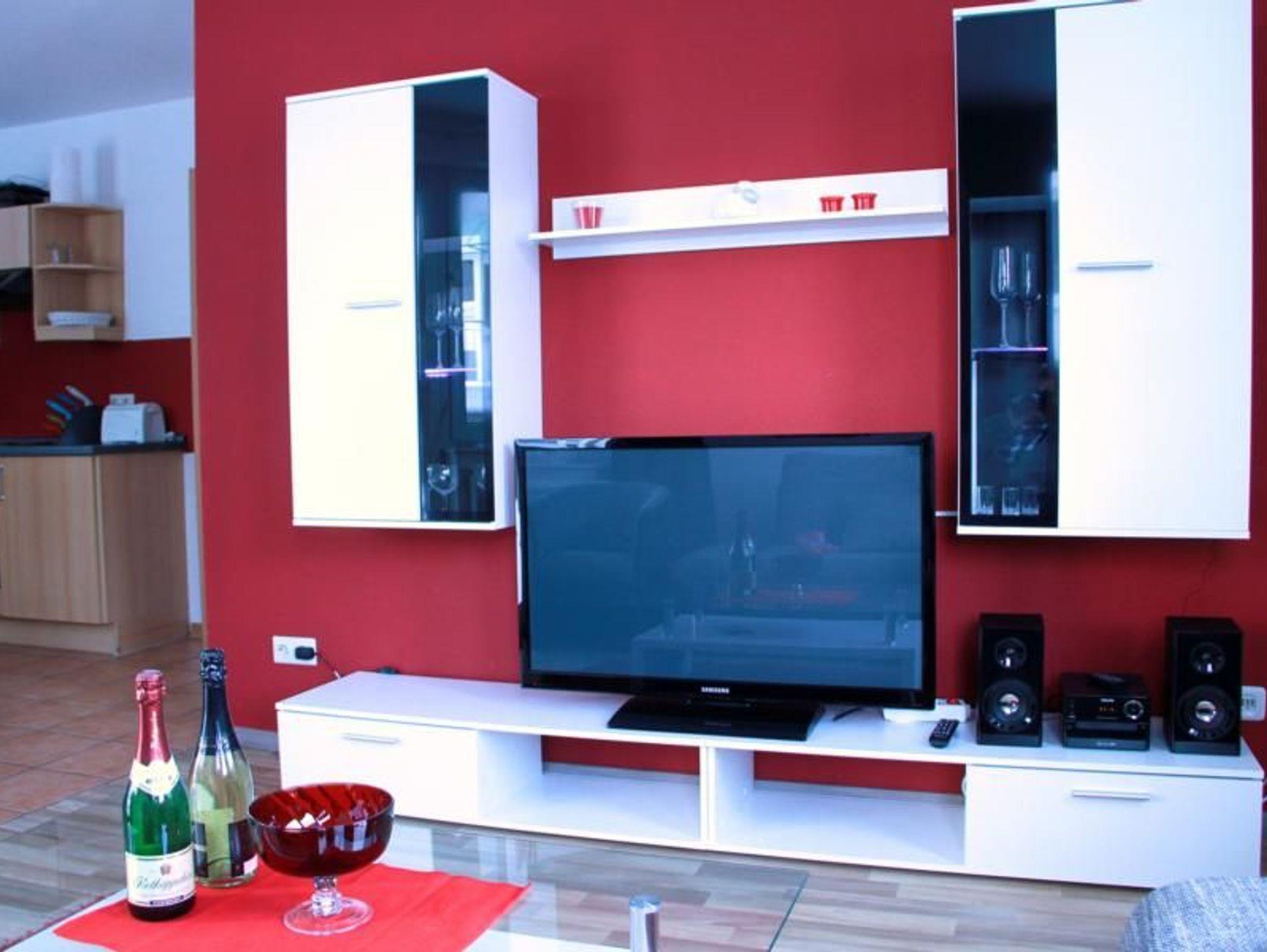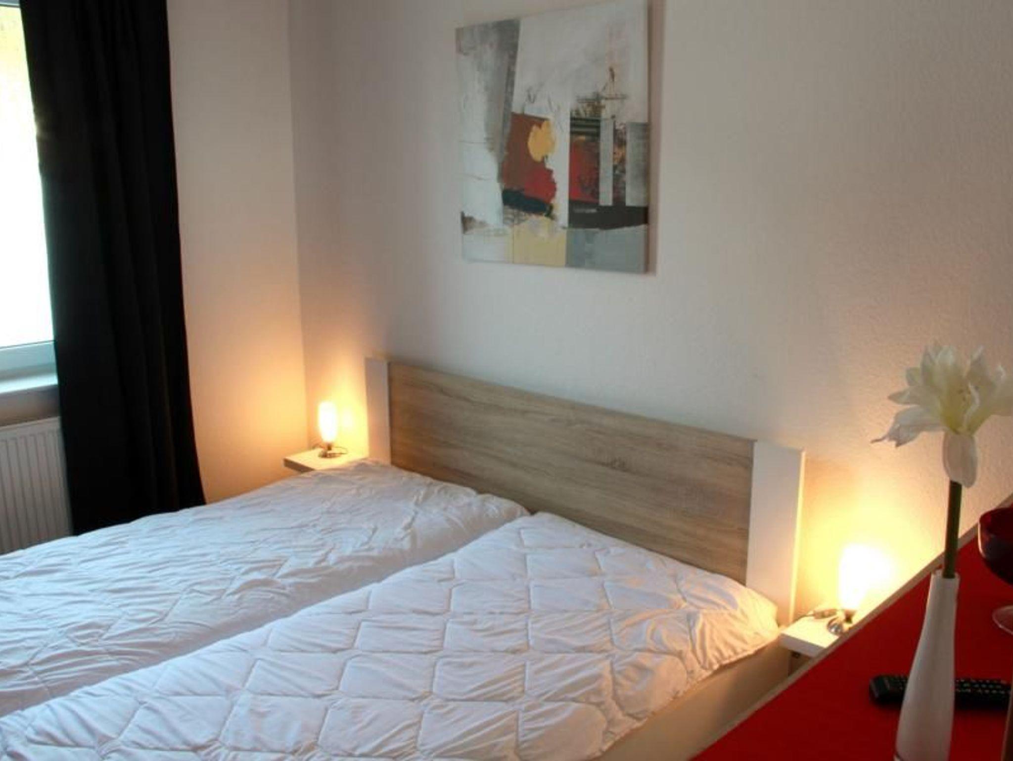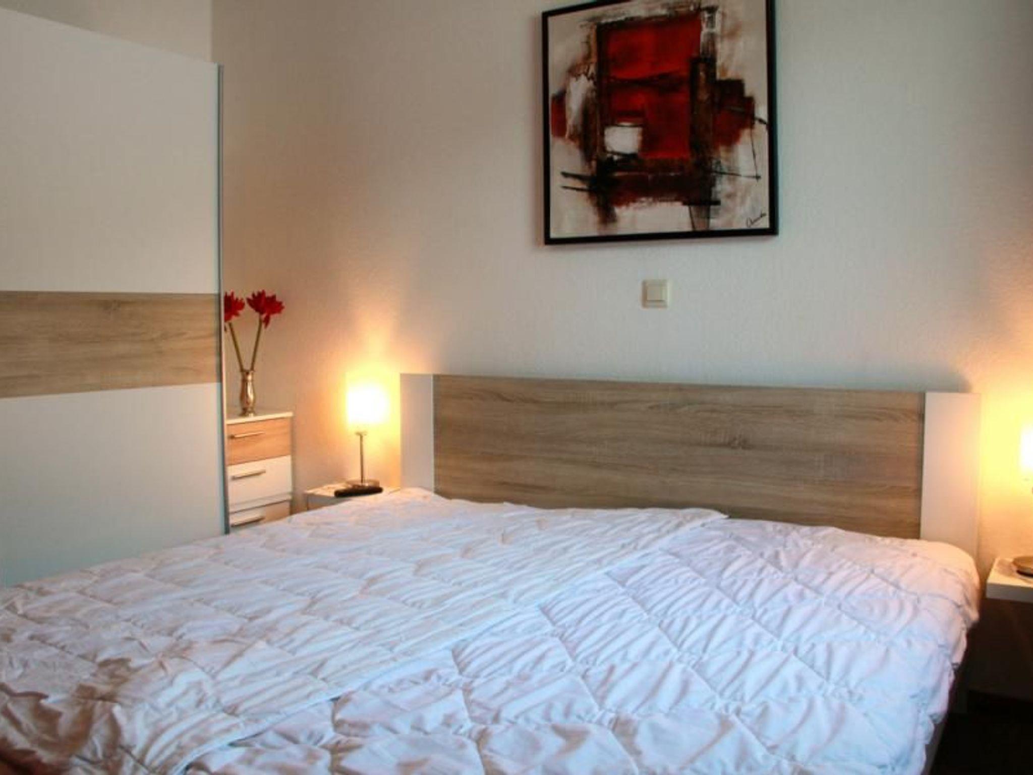 Sie wohnen in einem 3-Zimmer-Appartement für bis zu 5 Personen auf ca. 60 m² Wohnfläche im Erdgeschoss. Das erste Schlafzimmer mit Doppelbett und großem LED-Fernseher, das zweite Schlafzimmer ebenfalls mit einem Doppelbett und einem großen LED-Fernseher. Im Wohnraum befindet sich eine Doppelbettcouch (Schlafmöglichkeit für eine Person), Plasma-Fernseher mit sky-Empfang, separater Essplatz, voll ausgestatteter Küchenbereich mit Geschirrspüler und Mikrowelle, Dusche/WC und Terrasse. Rauchen Verboten.