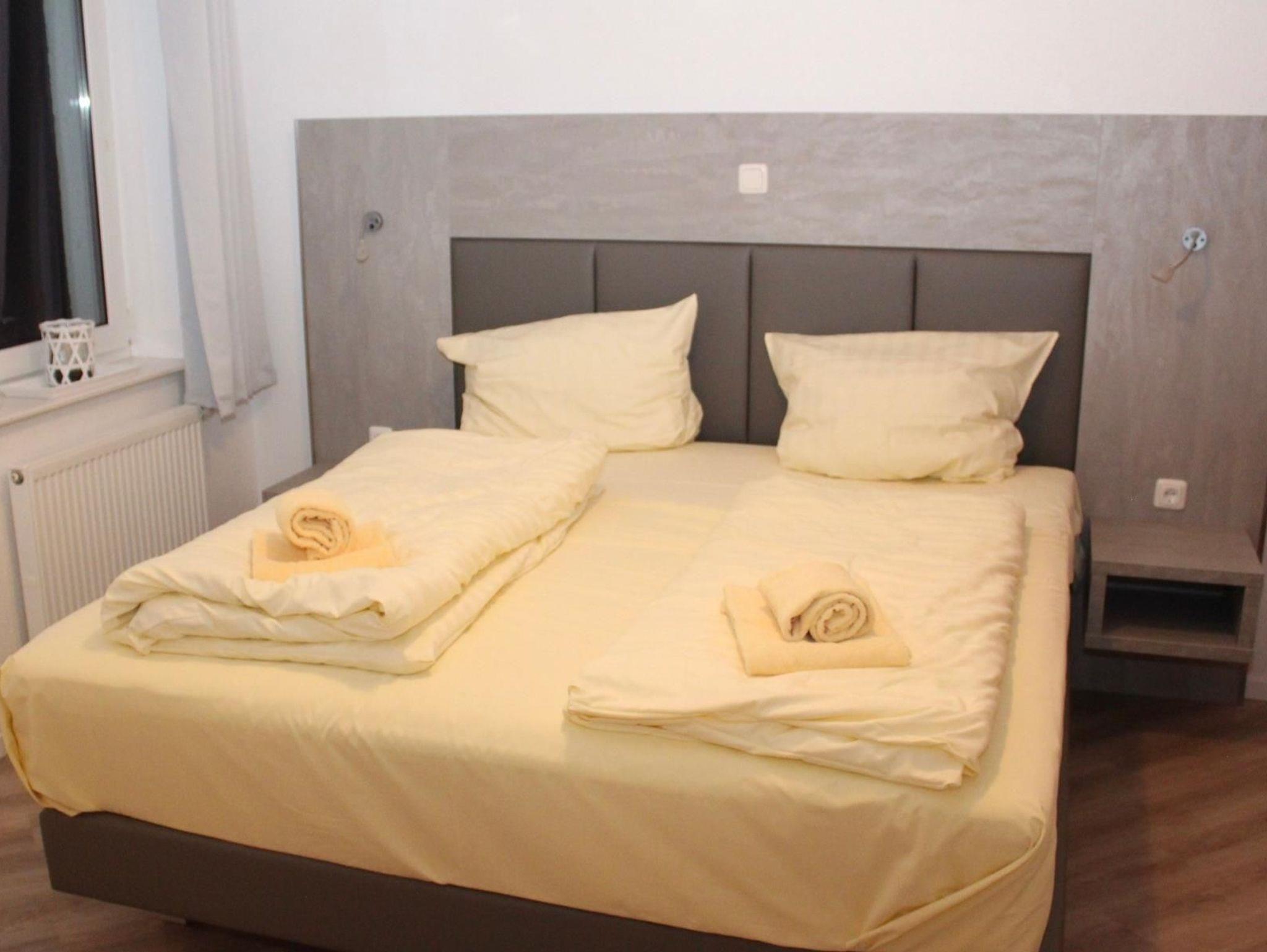 Sie wohnen in einem barrierefreien, modernen, gemütlich eingerichteten 3-Zimmer-Appartement (ca. 61 m²) für bis zu 5 Personen, ein Schlafzimmer mit Doppelbett, ein Schlafzimmer mit zwei getrennten Betten, Wohnraum mit bequemer Couchgarnitur und Schlafplatz für die 5. Person, separater Essplatz, voll ausgestatteter Küchenbereichmit Geschirrspüler und Mikrowelle, Dusche/WC und Föhn, SAT-TV mit sky-Bundesliga, Mini-HiFi-Anlage mit CD-Player, Balkon und Stellplatz. Hochstuhl und Kinderbett auf Anfrage gegen eine geringe Gebühr möglich.