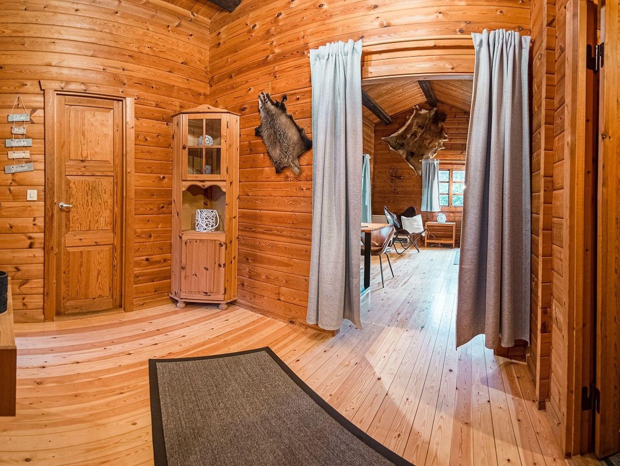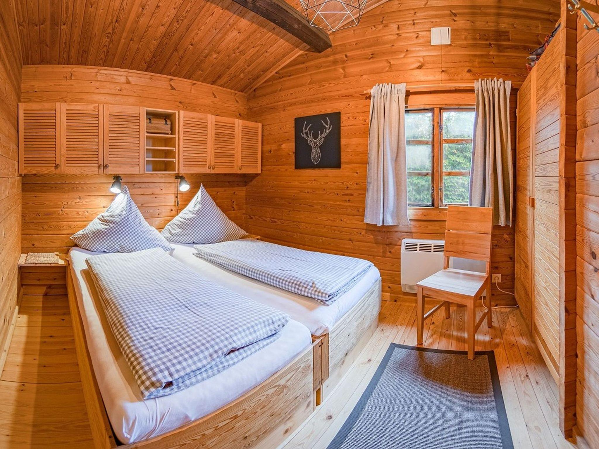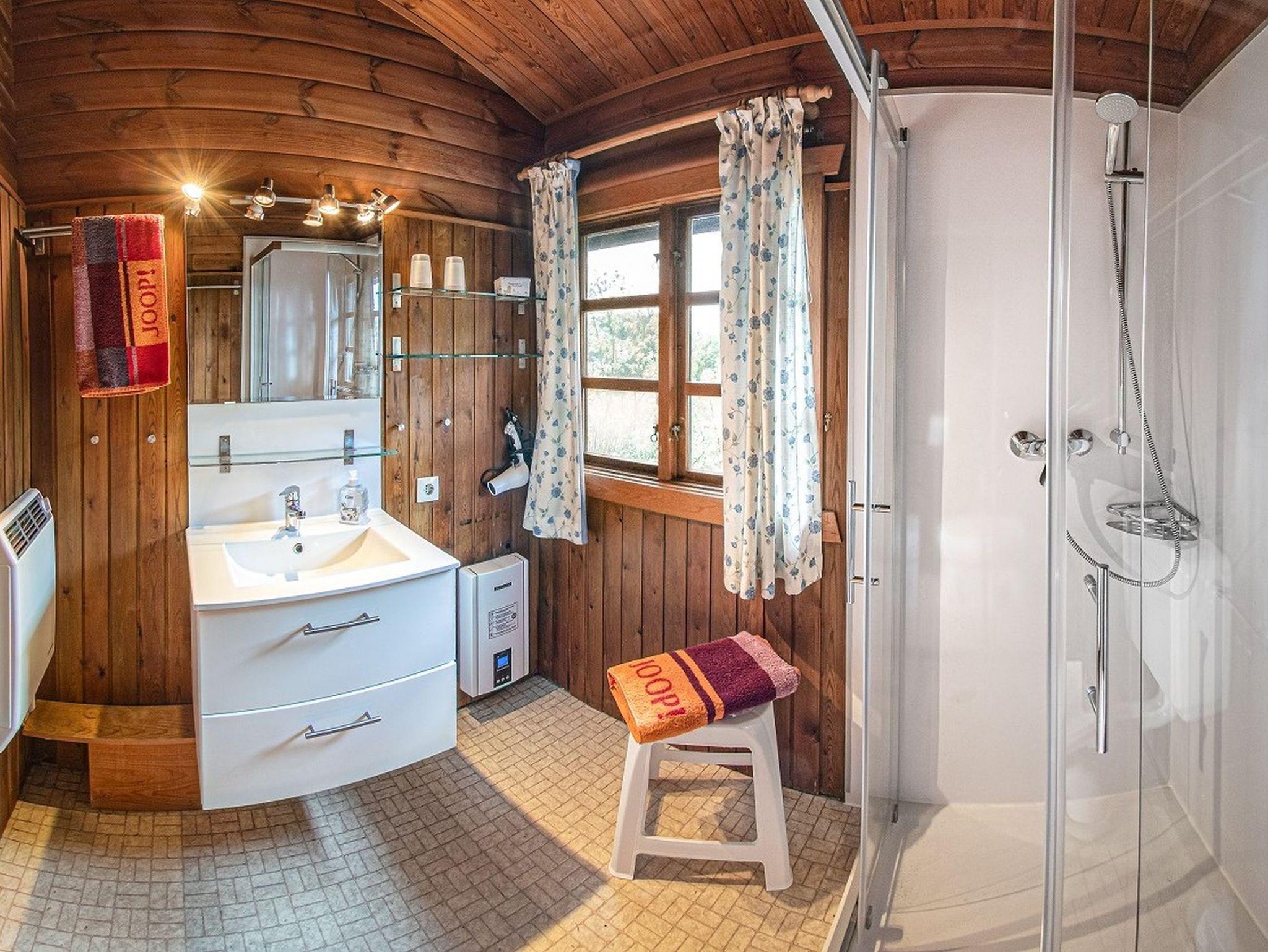 Des Weiteren verfügt das Blockhaus über zwei Schlafzimmer mit Doppelbetten sowie einem Badezimmer mit Dusche. Ein Föhn liegt natürlich schon für Sie bereit.