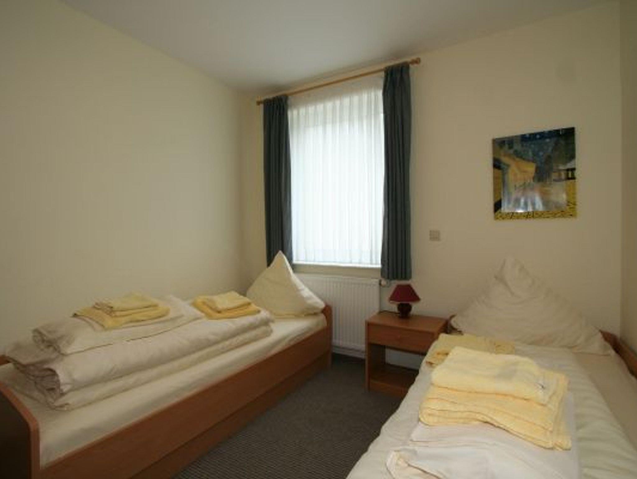 Sie wohnen in einem großzügigen 3-Zimmer-Appartement für bis zu 5 Personen auf 69 m² Wohnfläche. Ein Schlafzimmer mit Doppelbett, ein Schlafzimmer mit zwei Einzelbetten, Wohnraum mit bequemer Schlafcouch für eine Person, separater Essplatz, voll ausgestatteter Küchenbereich mit Mikrowelle und Geschirrspüler, Dusche/WC und Föhn, SAT-Flachbild-TV mit sky-Empfang und Balkon.