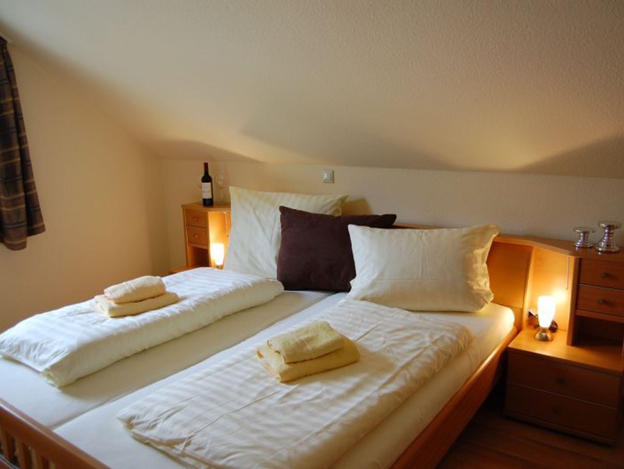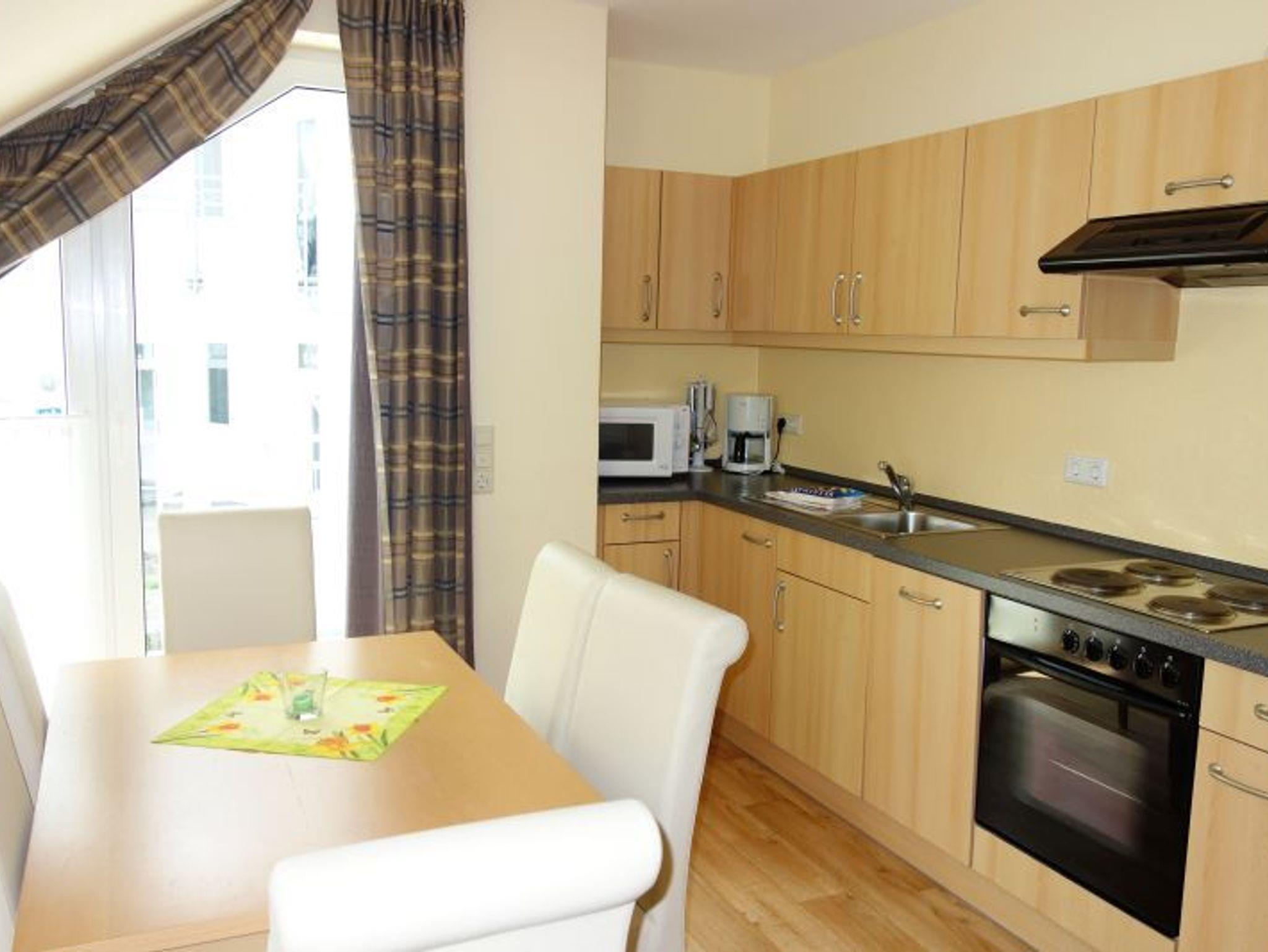 Sie wohnen in einem 3-Zimmer-Appartement für bis zu 6 Personen, ca. 59 m², ein Schlafzimmer mit Doppelbett, ein Schlafzimmer mit getrennten Betten, Wohn-/Schlafraum mit bequemer Doppelbettcouch, separater Essplatz, voll ausgestatteter Küchenbereich mit Geschirrspüler und Mikrowelle, Dusche/WC und Föhn, Balkon, SAT-Flachbild-TV.