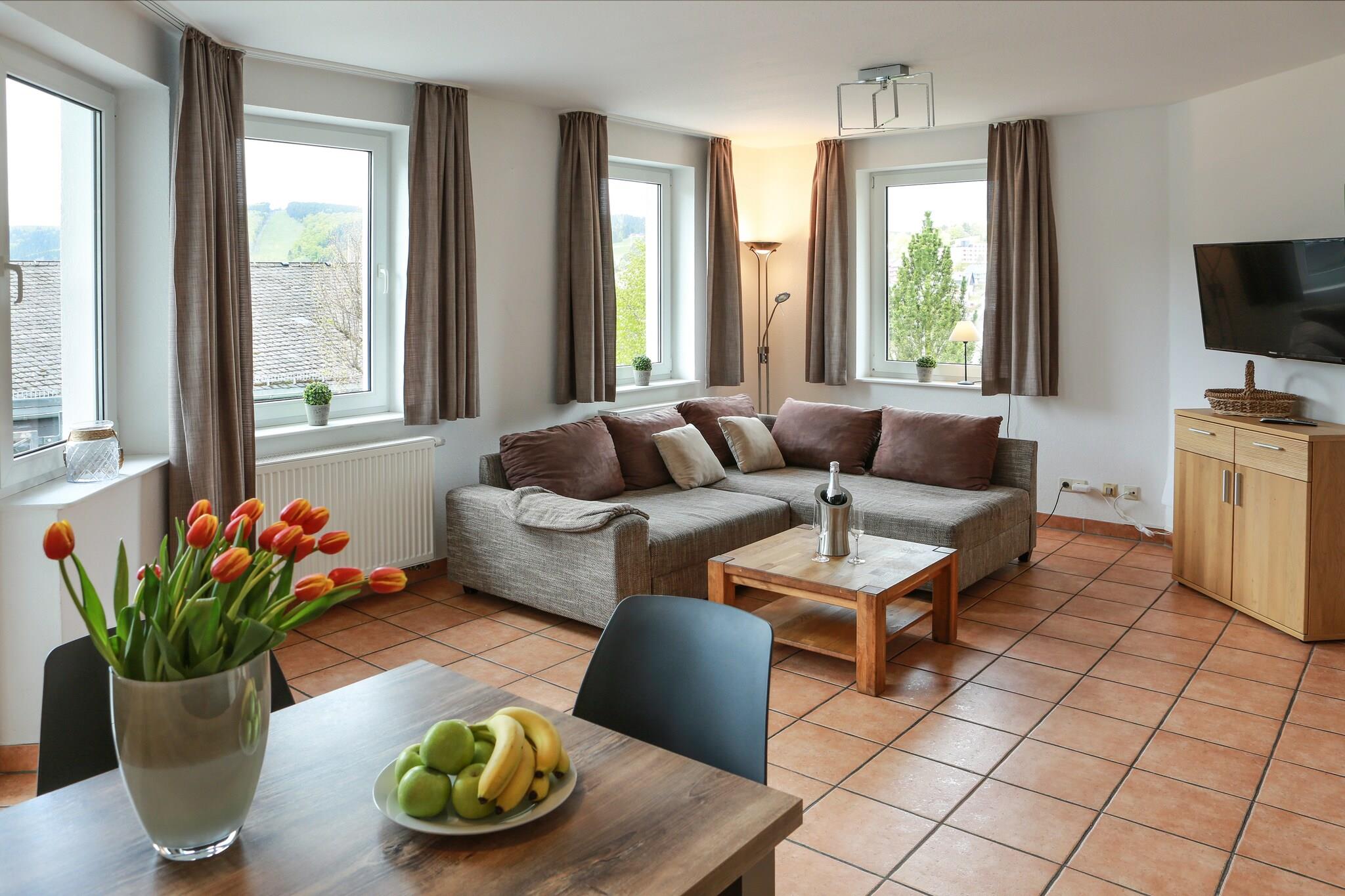 Tilbring din ferie direkte i Willingen, centralt og med indkøbsmuligheder. Lejligheden ligger i hjertet af byen. Indkvarteringen har en dejlig bjergskråning med udsigt over Willingen og Ittertal-dalen. Gør dig klar til at nyde vidunderlige og varierede ferier i Sauerland-regionen. Følgende faciliteter er i nærheden: Lagunen-vandland, skøjtebane, biograf og turistinformationskontoret. I nærheden har du mulighed for at ride på ski-karrusellen. Lejligheden er fuldt møbleret og individuelt designet. Til sin top beliggenhed er Willingen en attraktiv destination, hvor hele familien kan nyde de mange muligheder året rundt. VM-byen med sin skibakke tilbyder forskellige fritidsfaciliteter, der garanterer gode oplevelser for alle. Eventyrgolf, en udstillingsminde, sommerbogbog og forlystelsespark er blot nogle få eksempler. Om vinteren er Willingen et paradis for skiløbere og langrendsløjper. Populære udflugter: søen Edersee (45km), søen Diemelsee (20km), slottet i Bad Arolsen, Kassel (60km), Paderborn (50km), Winterberg (25km), Korbach (20km), Fort Fun Adventure Park (40km).