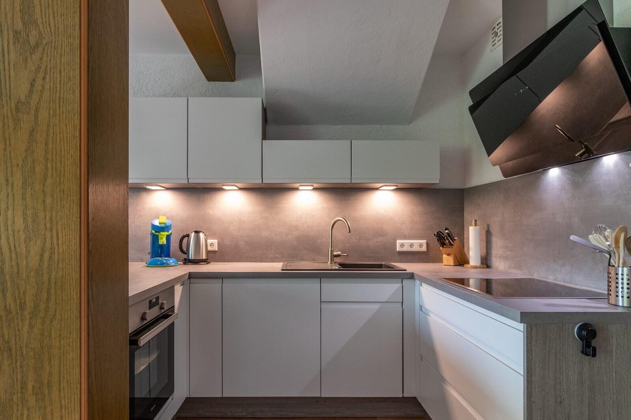 På 3. etage: (åbent køkken(elkedel, komfur(glaskeramisk), kaffemaskine(kaffetragt, kaffepude), ovn, mikrobølgeovn, opvaskemaskine , køleskab(+ fryser)), stue / spisestue(enkeltsovesofa, Fjernsyn, spisebord, sofahjørne), soveværelse(dobbeltseng), soveværelse(dobbeltseng), badeværelse(bruser, håndvask, toilet), badeværelse(badekar med bruser, håndvask, toilet, føntørrer), Repos) pulterkammer, bar, tørretumbler, tremmeseng, sauna(deles med andre gæster), vaskemaskine, balkon, parkering, barnestol, hyggespil, Ladestation til el-biler