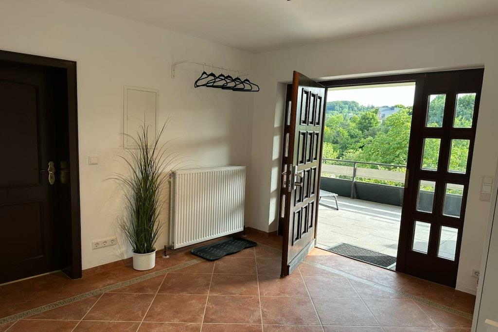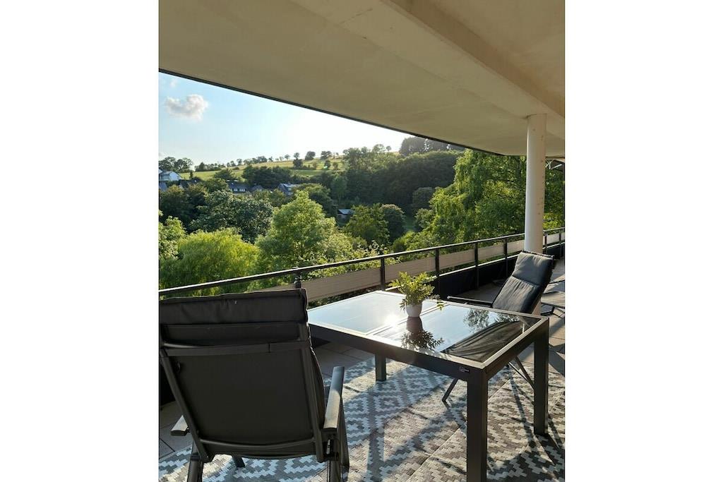Velkommen til vores naturferiested ved Osterkopf i Usseln/Willingen. Vores kærligt nyindrettede ferielejlighed tilbyder plads til op til fire personer. Der er også en rejseseng, højstol og pusleunderlag, hvilket gør den ideel til familier med små børn. Lejligheden er kærligt og omhyggeligt indrettet af os i en moderne og hyggelig stil og har en separat indgang. Et højdepunkt er den rummelige balkon med en storslået udsigt over det omkringliggende grønt, Pön-bjerget og den idylliske park med dens soppebassin. Rullejalousier sikrer en god nats søvn. Der er en særlig parkeringsplads til rådighed, hvor cykler kan opbevares og sikres. Sengelinned og håndklæder er inkluderet. Nøgleoverdragelse er enkel og sker via en numerisk kode. Lejligheden er tilgængelig via trapper.