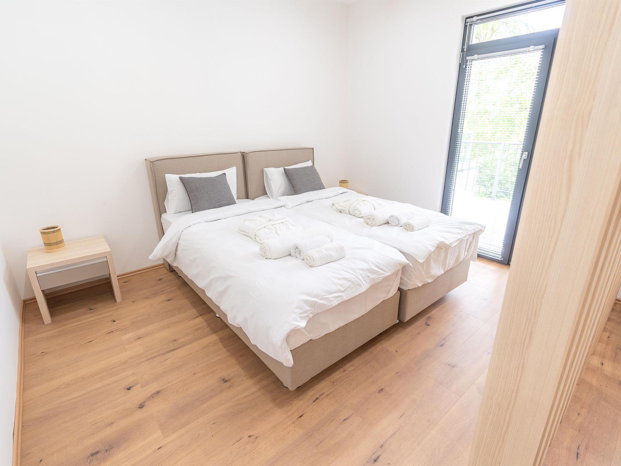 Willkommen bei Colakation! Dieses geräumige Apartment bietet zwei bequeme Einzelbetten (jeweils 90 cm breit) und eine großzügige Terrasse, ideal für entspannte Stunden im Freien. Das besondere Highlight dieser Wohnung ist der stilvolle Raumtrenner, der für eine tolle Atmosphäre und viel Gemütlichkeit sorgt. Frische Handtücher, Bettwäsche und kostenfreie Parkplätze sind selbstverständlich inklusive. Die voll ausgestattete Küche bietet alles, was Sie für Ihren Aufenthalt benötigen. Mikrowellen und Backöfen können ausgeliehen werden, und Waschmaschine sowie Trockner stehen gegen einen kleinen Aufpreis zur Verfügung.