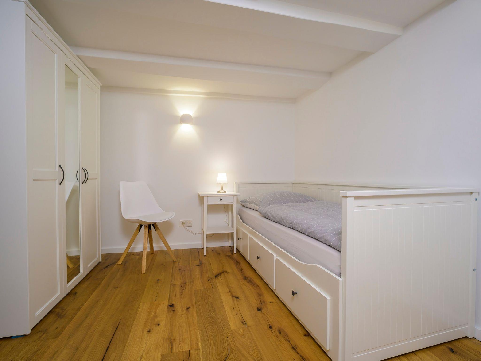 Diese Wohnung ist vom Grundriss identisch mit der Wohnung Oarwe. Besonders in den beiden Schlafräumen wird das urige Gefühl von alten Fachwerkhäusern deutlich und lässt erahnen, das die Menschen früher um einiges kleiner waren als heute.