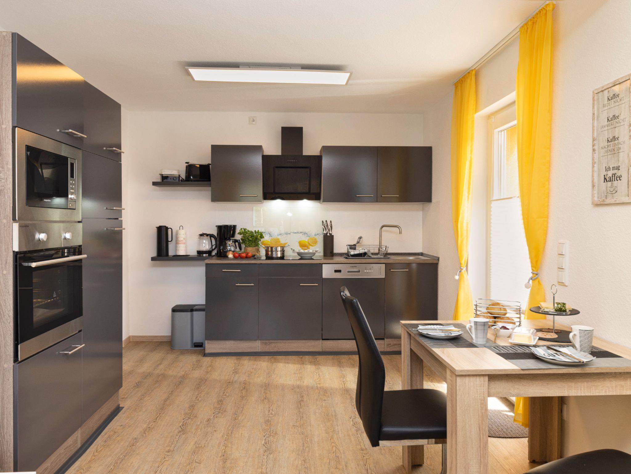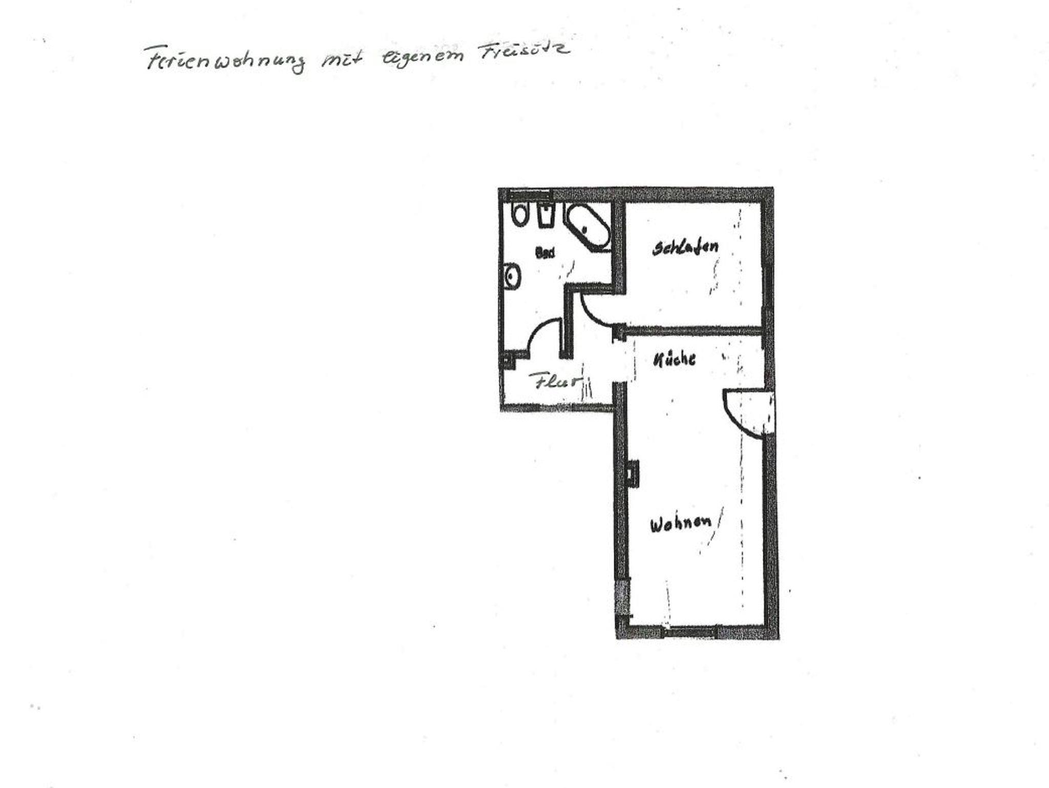 Kernsarnierte Ferienwohnung mit Schlafzimmer (Bett 140x200), Kleiderschrank mit Minisafe, Herrendiener sowie Fernseher. Wohn-Küchenraum mit großzügiger Einbauküche (Backofen oben, Mikrowelle, großer Kühlschrank, großes Gefrierfach, Glasceranfeld). Des Weiteren Kaffeemaschine, Espressokocher, Wasserkocher, Eierkocher und Toaster. Esstisch für 2 Personen. Wohnbereich mit Schlafcouch (Liegefläche 140x200), Hocker, moderne Schrankwand mit Fernseher auch mit Amazon-TV, Alexa sowie WLAN inklusive. Großzügiges Badezimmer mit Eckbadewanne auch zum Duschen mit Duschrollo, Bidet, Toilette und großzügigem Waschtisch mit Umbaumöbeln. Eigener Freisitz mit Blick zum Bach, auf Wunsch stellen wir Ihnen gerne einen Grill mit Holzkohle zum Selbstkostenpreis zur Verfügung.