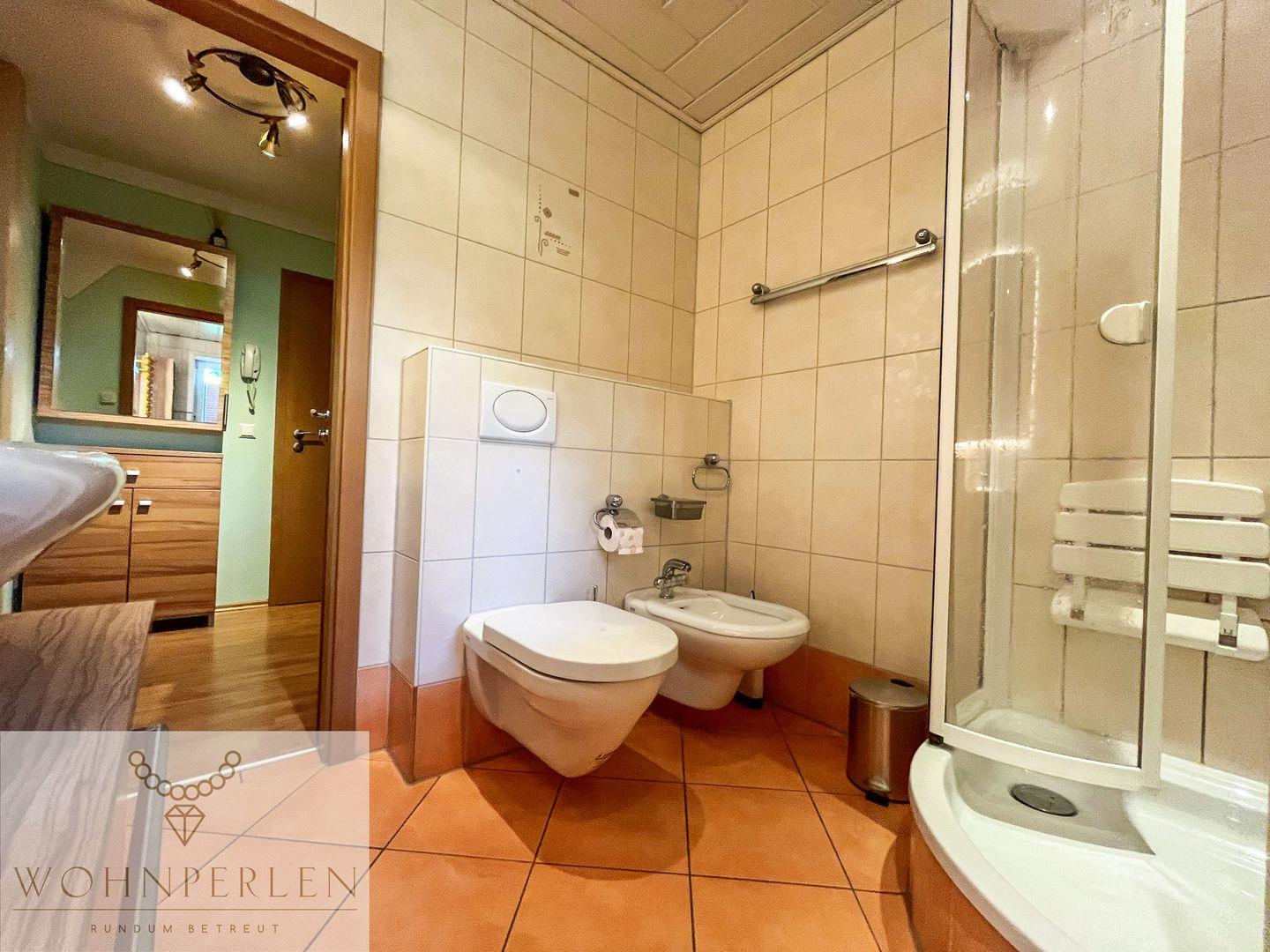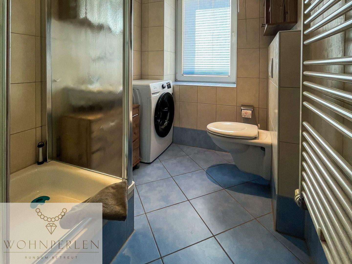 Die Wohnung verfügt über zwei einladende Schlafzimmer, die mit Laminatboden ausgestattet sind und viel Licht durch große Fenster erhalten. Hier können Sie nach einem langen Tag zur Ruhe kommen. Der durchdachte Grundriss bietet Ihnen außerdem zwei Badezimmer, darunter ein modernes Bad, das mit einer bodengleichen Dusche, einer Badewanne, einem Bidet und einem Waschbecken ausgestattet ist. Handtücher und Badetücher werden selbstverständlich zur Verfügung gestellt, sodass Sie sich um nichts kümmern müssen.
