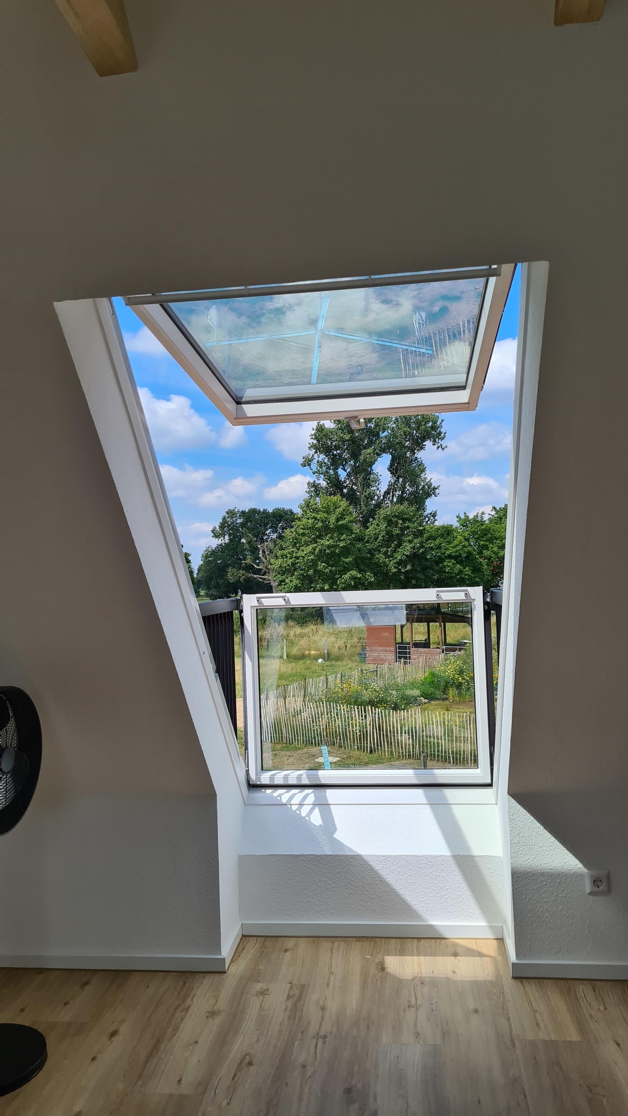 Im Elternschlafzimmer könnt ihr direkt vom Bett aus durch das Dachflächenfenster die Sterne bewundern.