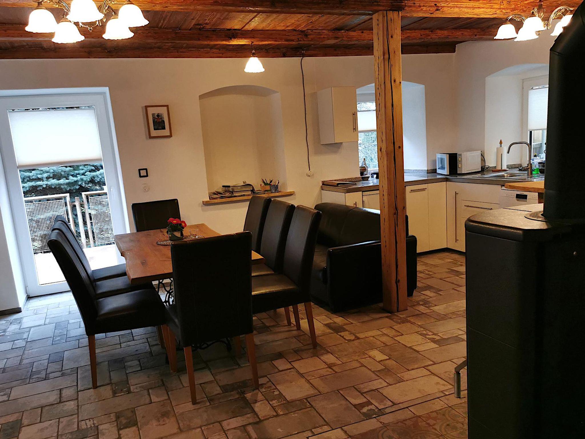 Mit einer Fläche von 126 m² auf 2 Etagen, verteilt auf 4 Schlafzimmer, 2 Bäder, 1 Aufenthaltsraum mit Wohnküche und Dachterrasse bietet unser 2023 saniertes Ferienhaus Platz für 8 Personen. Im EG, wo sich das Zwei-Bett-Zimmer Kirk, das Bad sowie der Aufenthaltsraum mit Wohnküche befinden, ist das Haus barrierefrei ausgebaut und somit für gehbehinderte Menschen gut geeignet. Der gemütliche Aufenthaltsraum mit Wohnküche ist mit Kaminofen, Flachbild-TV, Sofa, Esstisch, Einbauküche, Geschirrspüler, Kühlschränken, Kaffeemaschine, Mikrowelle und Küchenutensilien ausgestattet. Tschaidana ist ein Zimmer im OG mit Doppelstockbett. Taras ist ein Doppelzimmer mit Boxspringbett und Laubegast ein Doppelzimmer mit Doppelbett. Auf der Dachterrasse sowie in unserem kleinen Garten können Sie sich erholen und den Grill, die Feuerstelle sowie den Pizzaofen nutzen. WLAN sowie 2 Parkplätze stehen Ihnen kostenfrei zur Verfügung. Sowohl das gesamte Haus als auch jedes Zimmer kann einzeln gebucht werden.