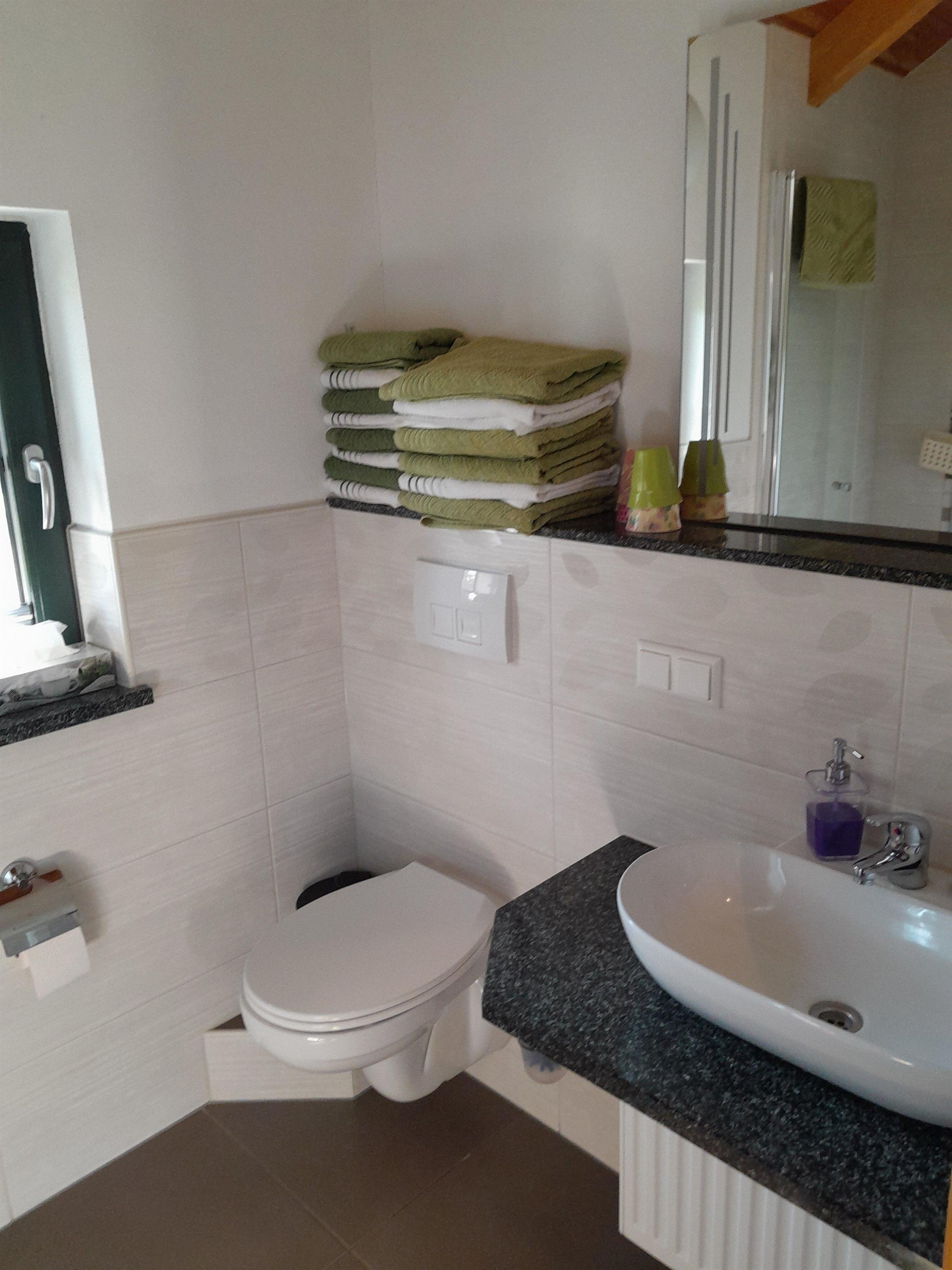 Es gibt 2 Schlafräume mit 5 Betten(2+3)im grossen Schlafraum befindet sich ein 2. Fernseher,Bad mit Dusche und WC,Wohnbereich mit Kamin,Küche vollausgestattet mit Waschmaschine und eine separate Toilette im Eingangsbereich,Fußbodenheizung in der unteren Etage und im Bad,Natursteinauflagen in Küche,Bad,Treppe und Fensterbänken.