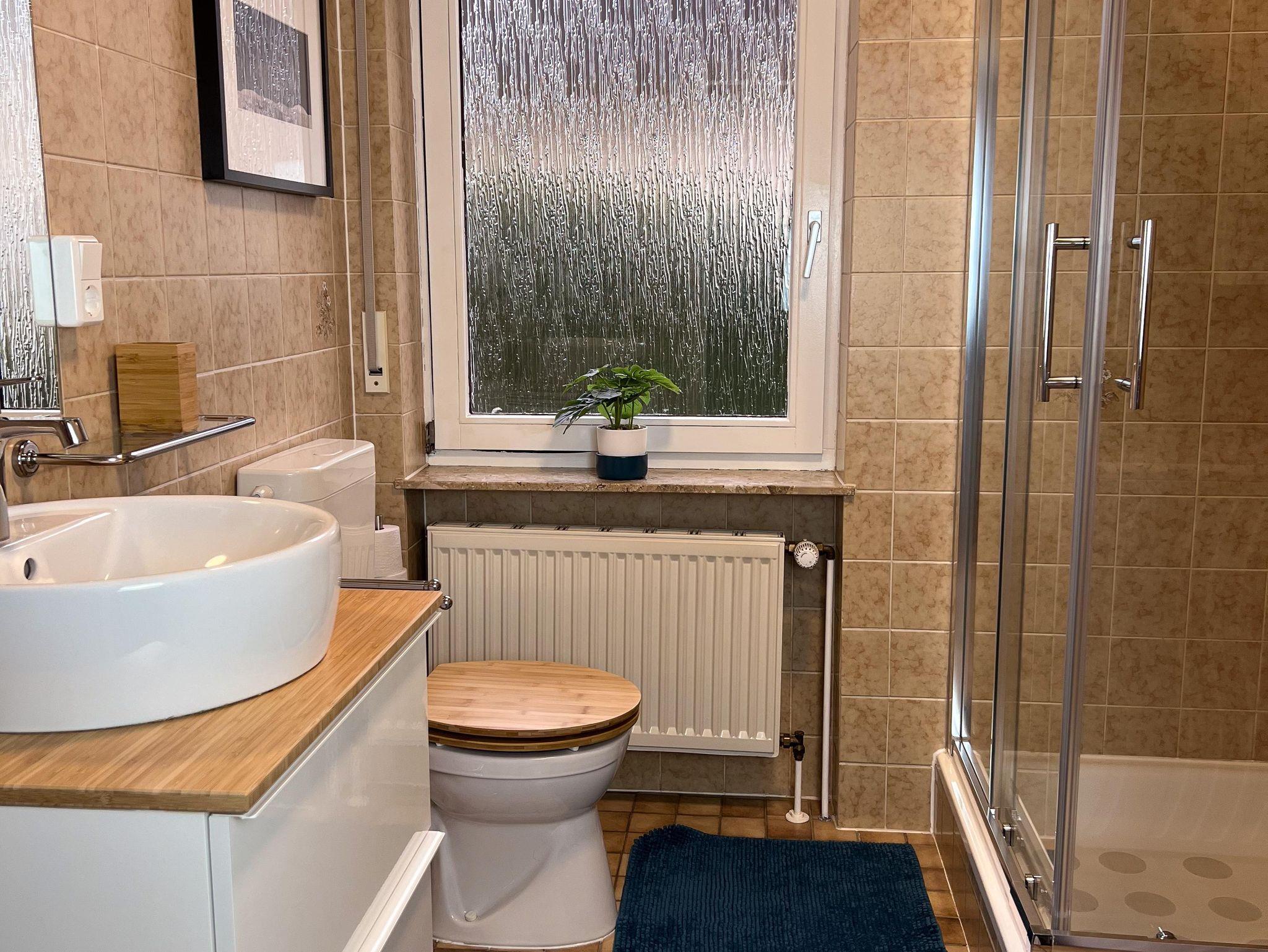 Auf rund 70 Quadratmetern bietet unser ruhiges Ferienhaus für 2 Personen ein Schlafzimmer mit Boxspringbett (Marke Jette Joop), ein großes Wohnzimmer mit Fernsicht und TV, einen großen Balkon, ein Badezimmer mit Dusche und WC, ein Gäste-WC und eine moderne, gut eingerichtete Küche mit Backofen, Mikrowelle, Toaster, Wasserkocher und Spülmaschine. Auch eine Waschmaschine ist vorhanden.