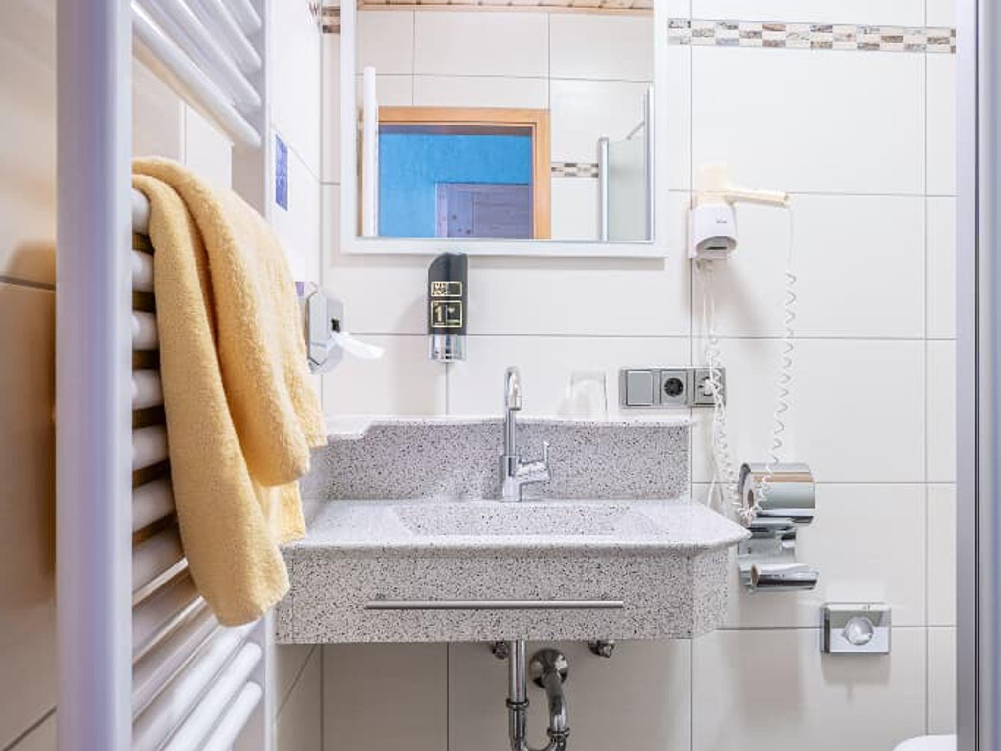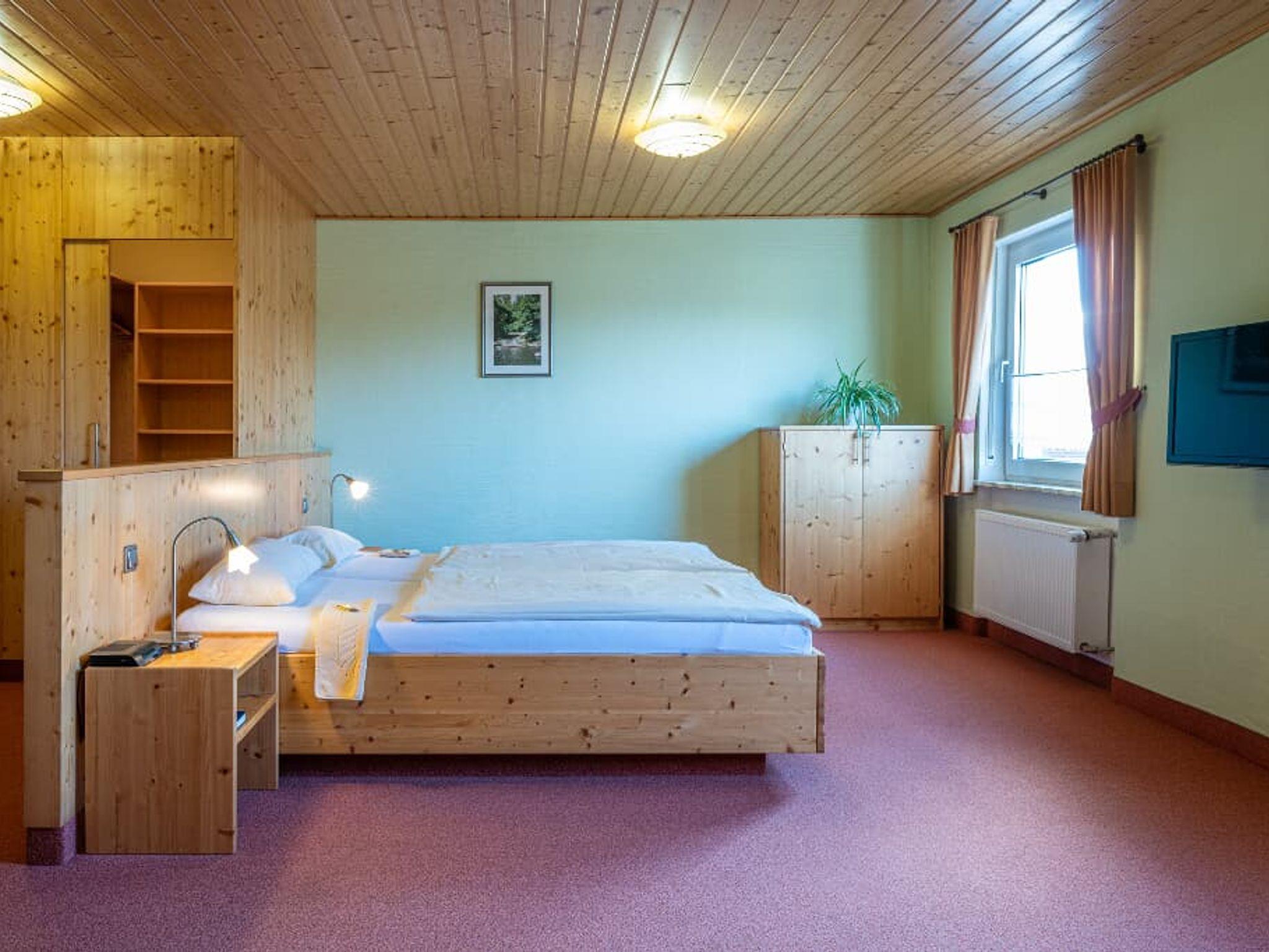 Unsere gemütlich eingerichteten Dreibettzimmer verfügen über ein Doppelbett und ein