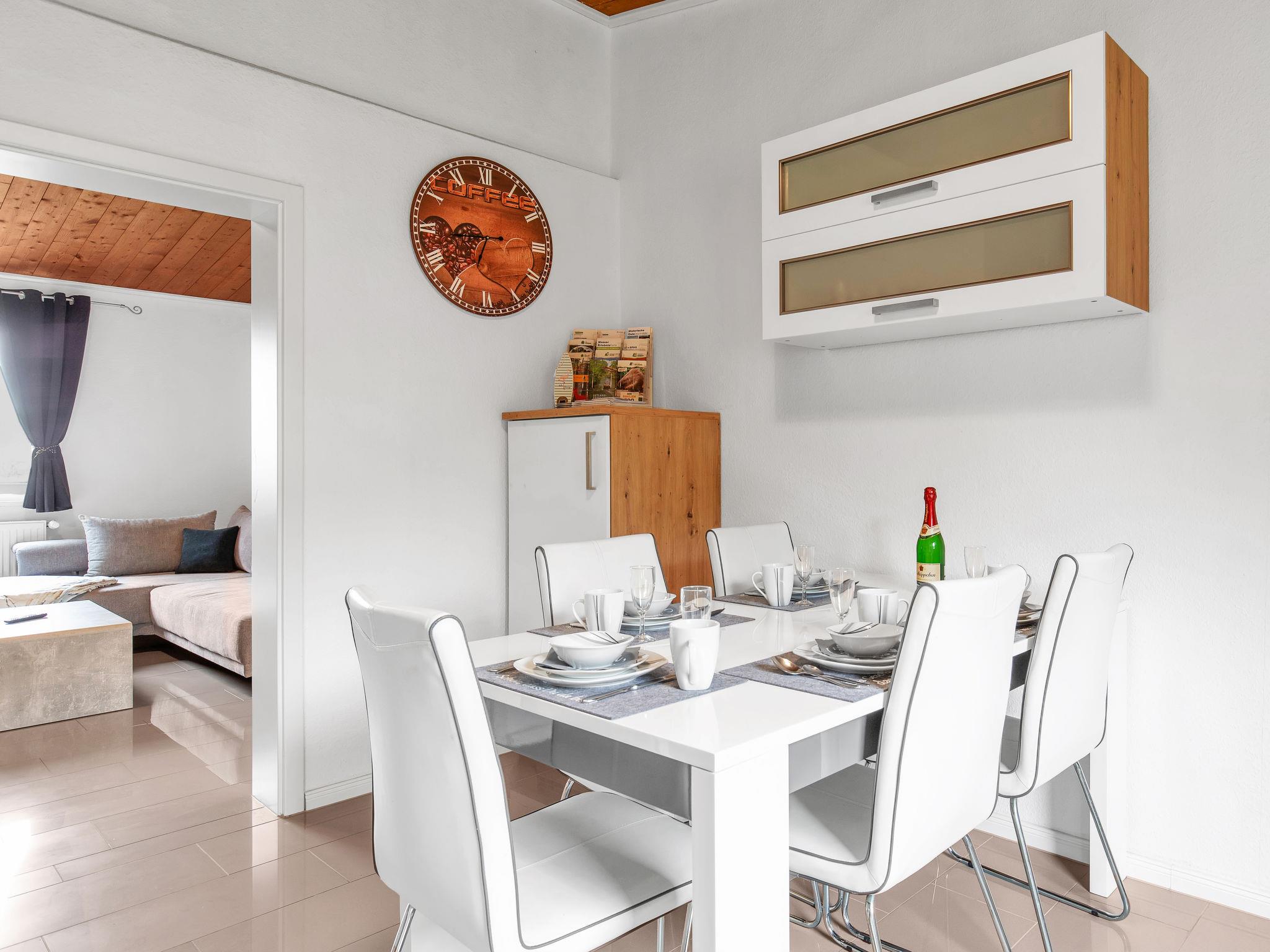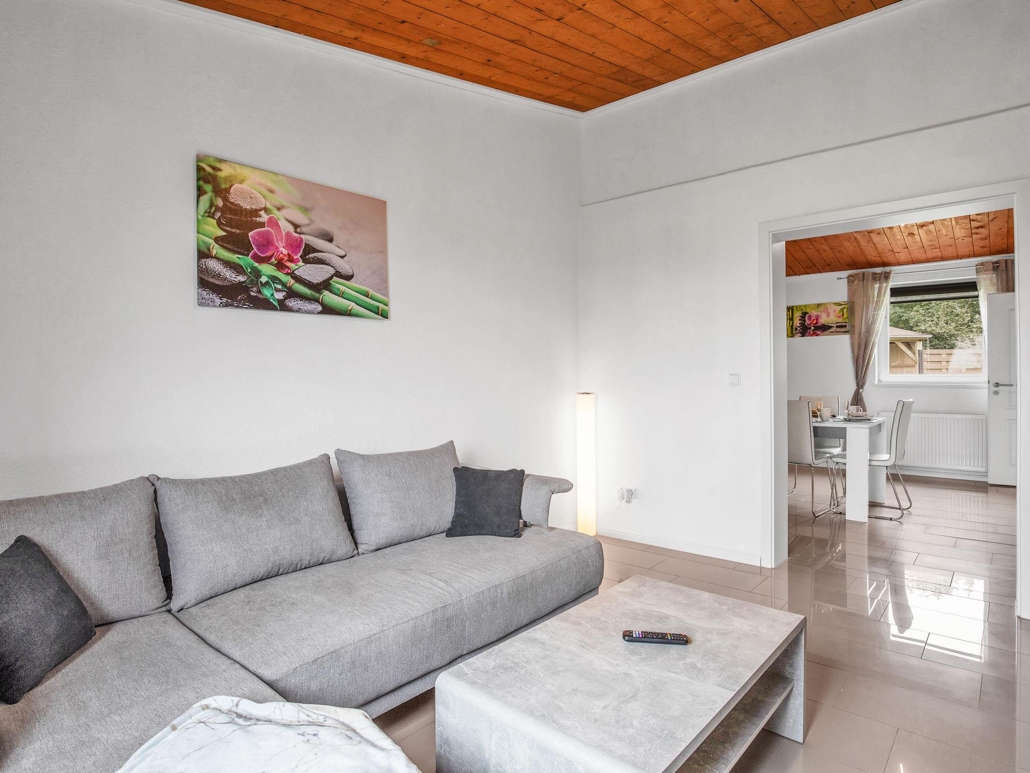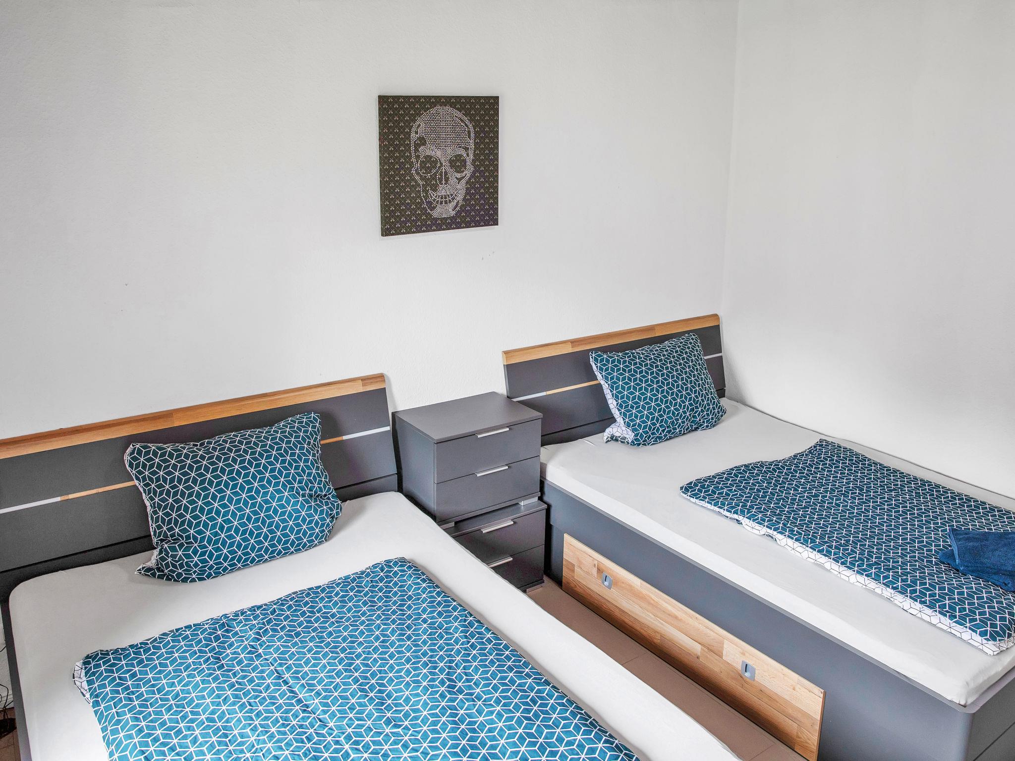5-room house 135 m2, on the ground floor. Fully renovated in 2023, modern and tasteful furnishings: living room with Scandinavian wood stove and TV (flat screen). Living room with Scandinavian wood stove and TV (flat screen). 1 room with 2 french beds (140 cm, length 200 cm). 2 rooms, each room with 1 double bed (180 cm, length 200 cm). Large kitchen (oven, dishwasher, 4 ceramic glass hob hotplates, toaster, kettle, electric coffee machine) with dining table. 2 Baths/showers. Gas heating. Facilities: Internet (WiFi, free). Please note: non-smoking house. No internal connecting door between the separated properties. A second identical kitchen is available.