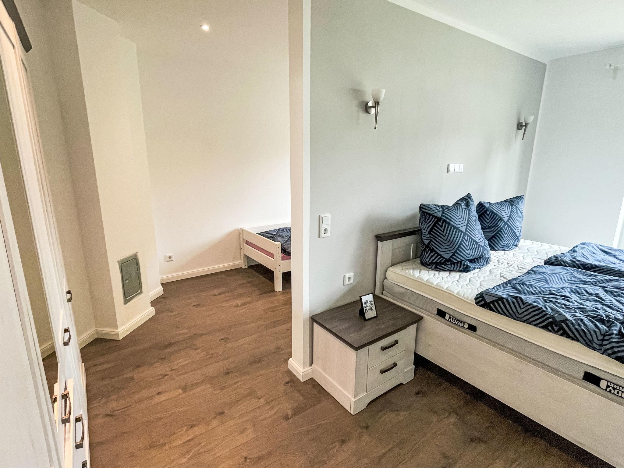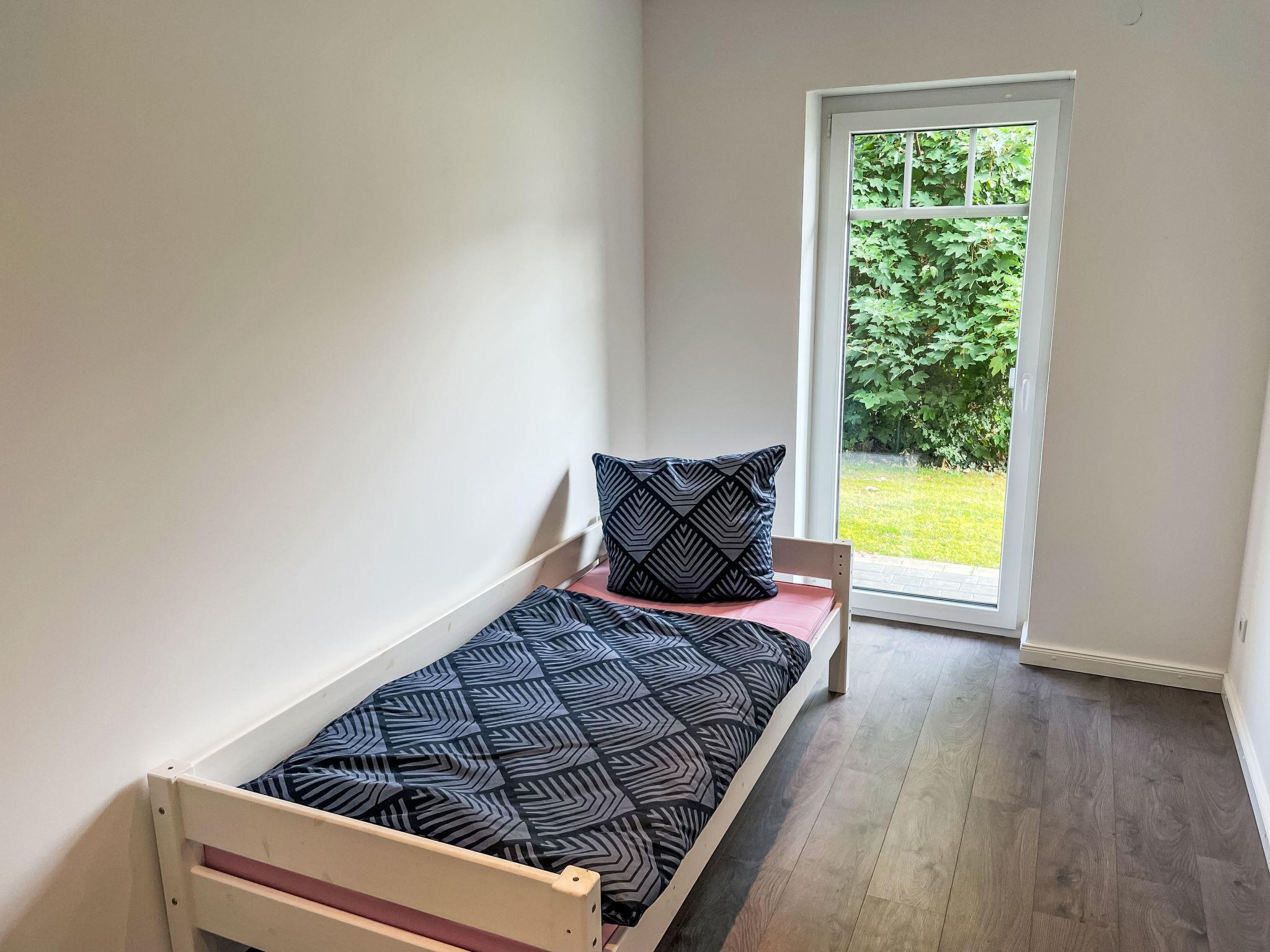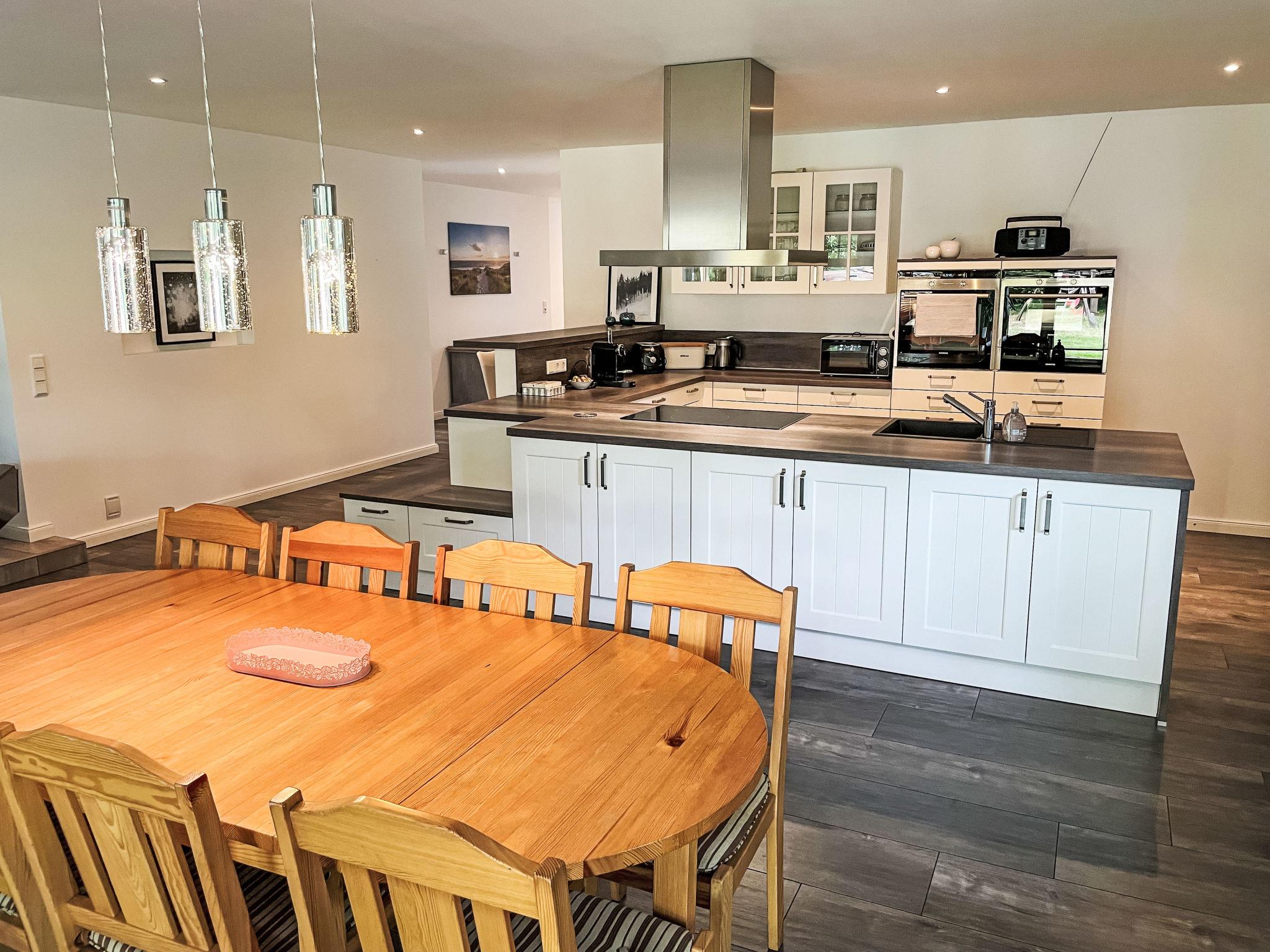 "Meyer", 4-room apartment 200 m2, on the ground floor. Spacious, very comfortable and modern furnishings: large living/dining room with dining table and satellite TV (flat screen). Exit to the garden, to the terrace. 1 room with 1 double bed (180 cm, length 200 cm), satellite TV (flat screen). 2 rooms, each room with 2 beds (90 cm, length 200 cm), satellite TV (flat screen). Interconnecting room with 1 bed (90 cm, length 200 cm). Large, open kitchen (oven, dishwasher, 4 ceramic glass hob hotplates, toaster, kettle, microwave, electric coffee machine). Shower/WC, bath/shower/WC. Gas heating. Terrace roofed, large garden. Terrace furniture, barbecue. Facilities: washing machine, children's high chair, baby cot. Internet (WiFi, free). Please note: suitable for families. Non-smokers only.