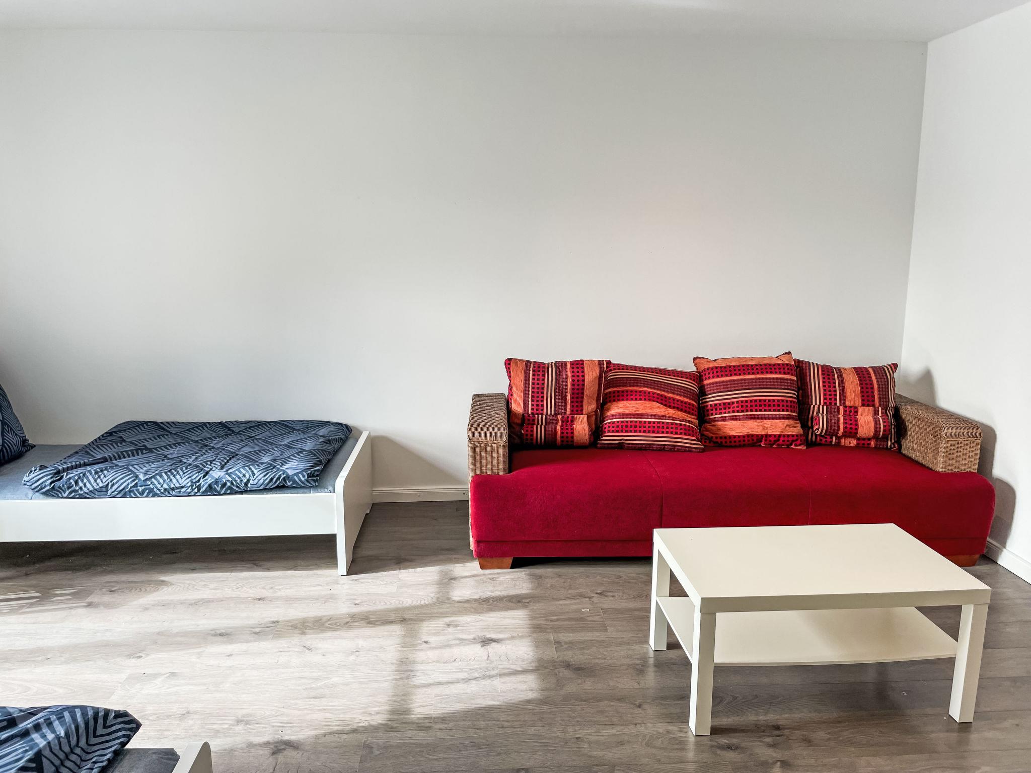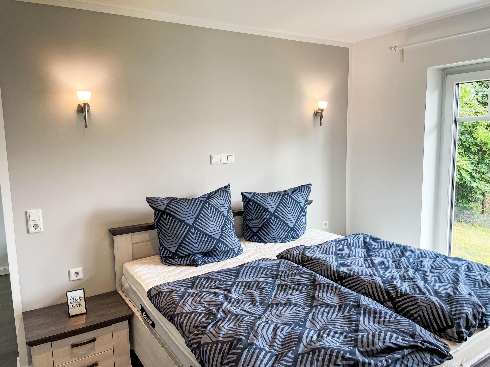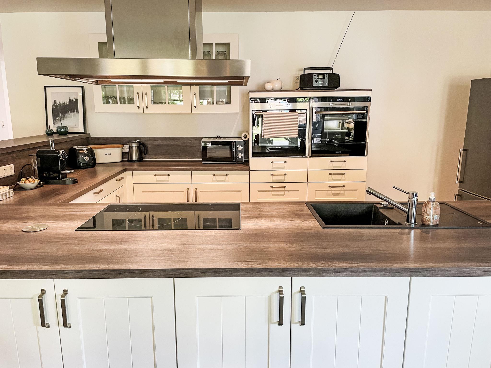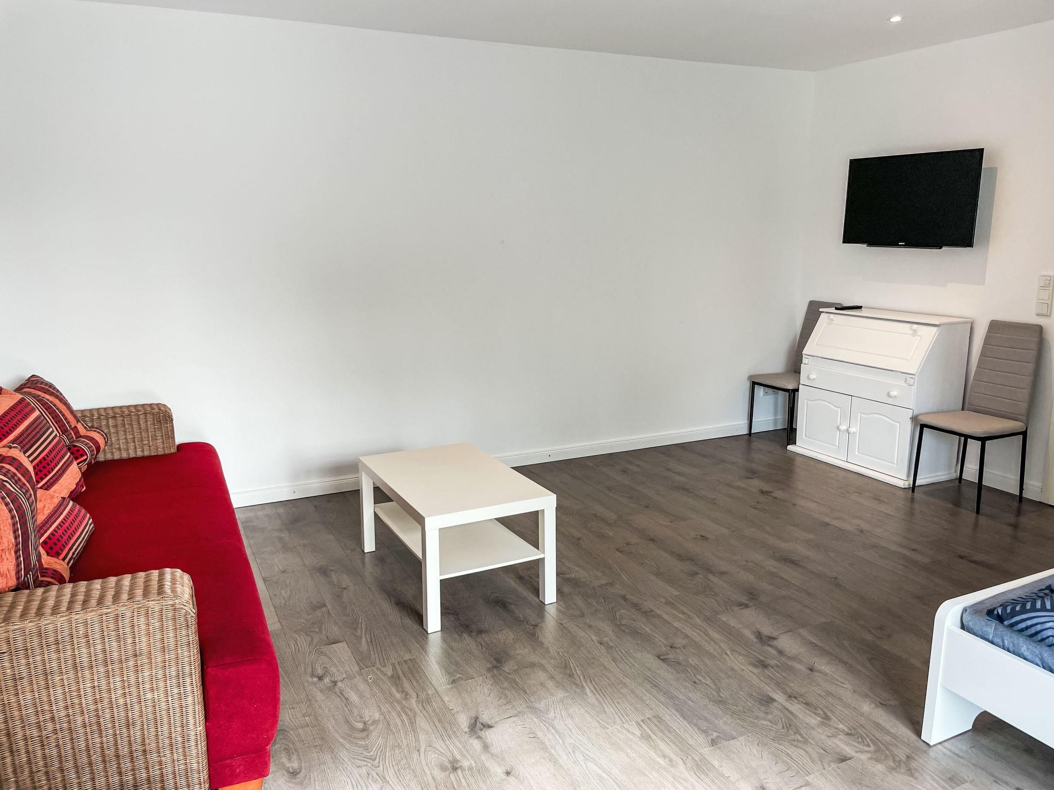 "Meyer", 4-room apartment 200 m2, on the ground floor. Spacious, very comfortable and modern furnishings: large living/dining room with dining table and satellite TV (flat screen). Exit to the garden, to the terrace. 1 room with 1 double bed (180 cm, length 200 cm), satellite TV (flat screen). 2 rooms, each room with 2 beds (90 cm, length 200 cm), satellite TV (flat screen). Interconnecting room with 1 bed (90 cm, length 200 cm). Large, open kitchen (oven, dishwasher, 4 ceramic glass hob hotplates, toaster, kettle, microwave, electric coffee machine). Shower/WC, bath/shower/WC. Gas heating. Terrace roofed, large garden. Terrace furniture, barbecue. Facilities: washing machine, children's high chair, baby cot. Internet (WiFi, free). Please note: suitable for families. Non-smokers only.