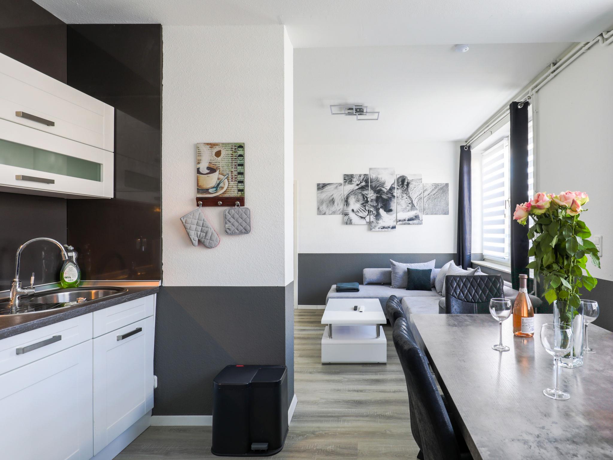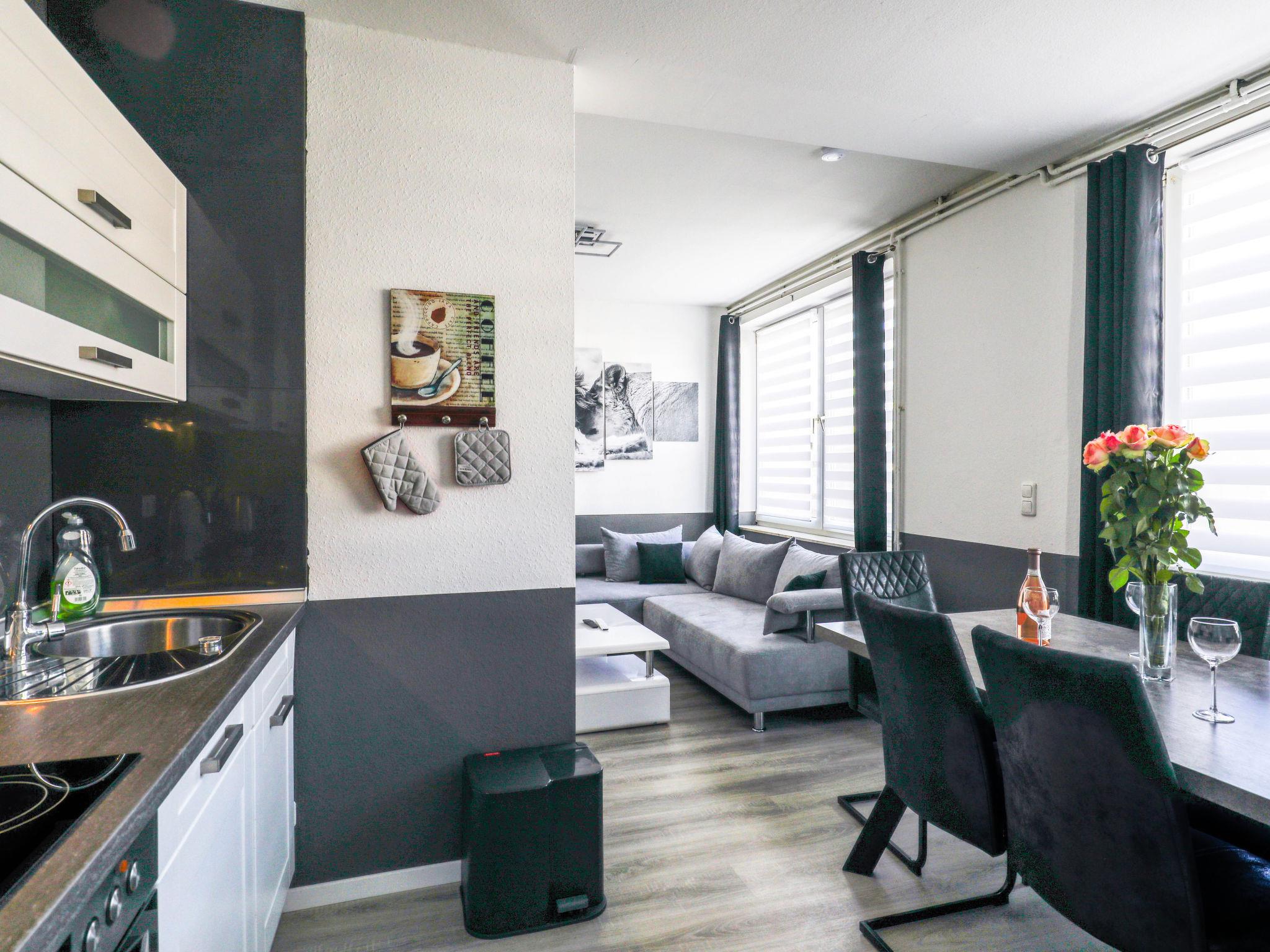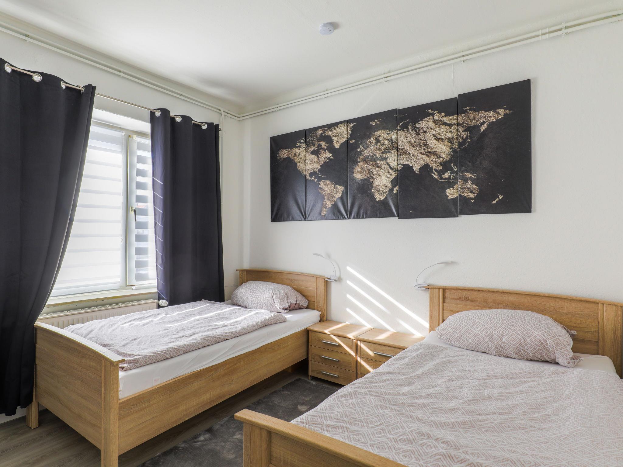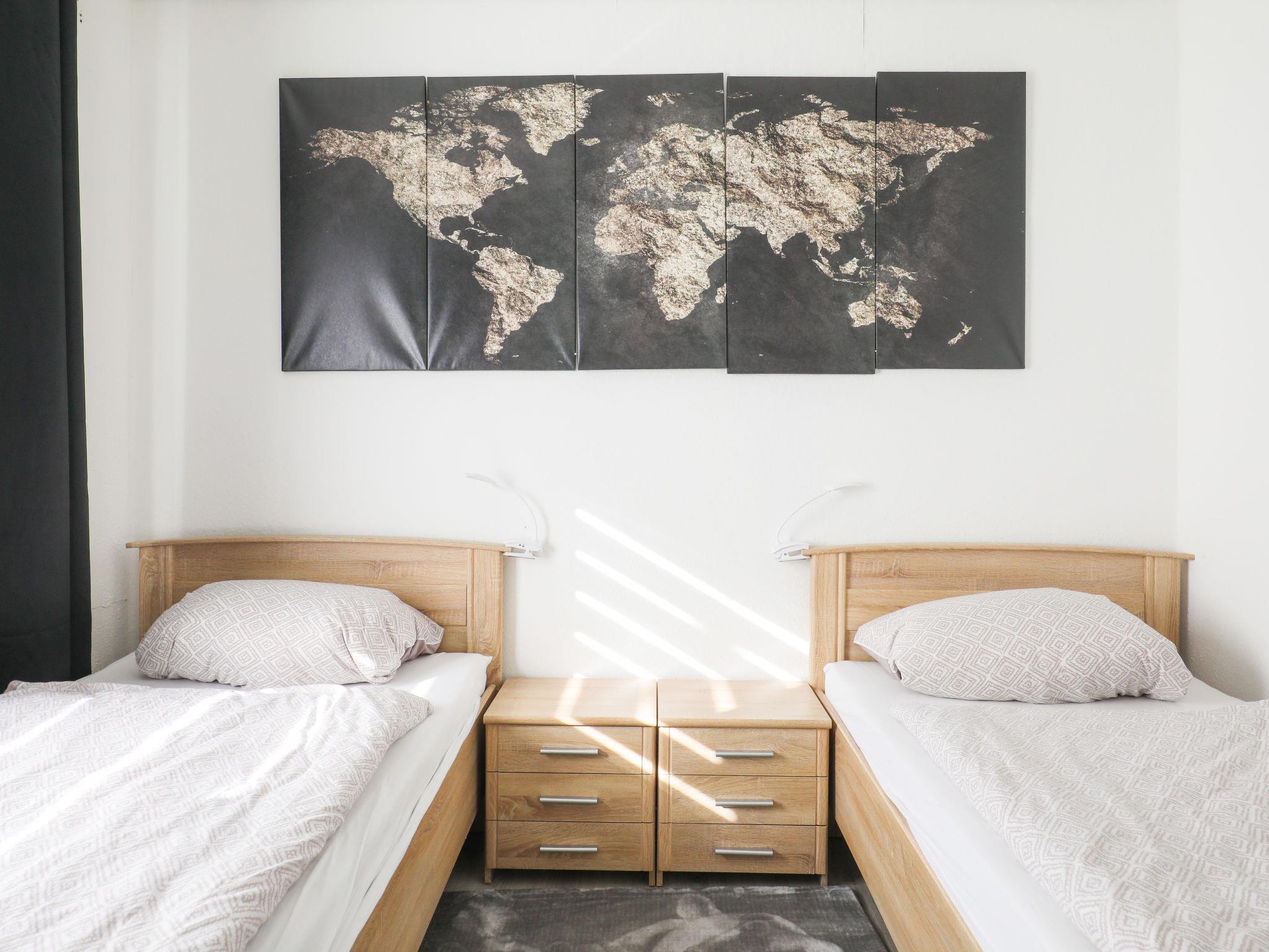 3-room apartment 80 m2, on the ground floor. Fully renovated in 2022, modern and stylish furnishings: open large living/dining room with dining table and flat screen. 1 room with 1 double bed (180 cm, length 200 cm). 1 room with 2 beds (90 cm, length 200 cm). Open kitchen (oven, dishwasher, 4 ceramic glass hob hotplates, toaster, kettle, electric coffee machine). 2 showers/WC. Heating. Facilities: Internet (WiFi, free). Please note: non-smokers only. Smoke alarm.