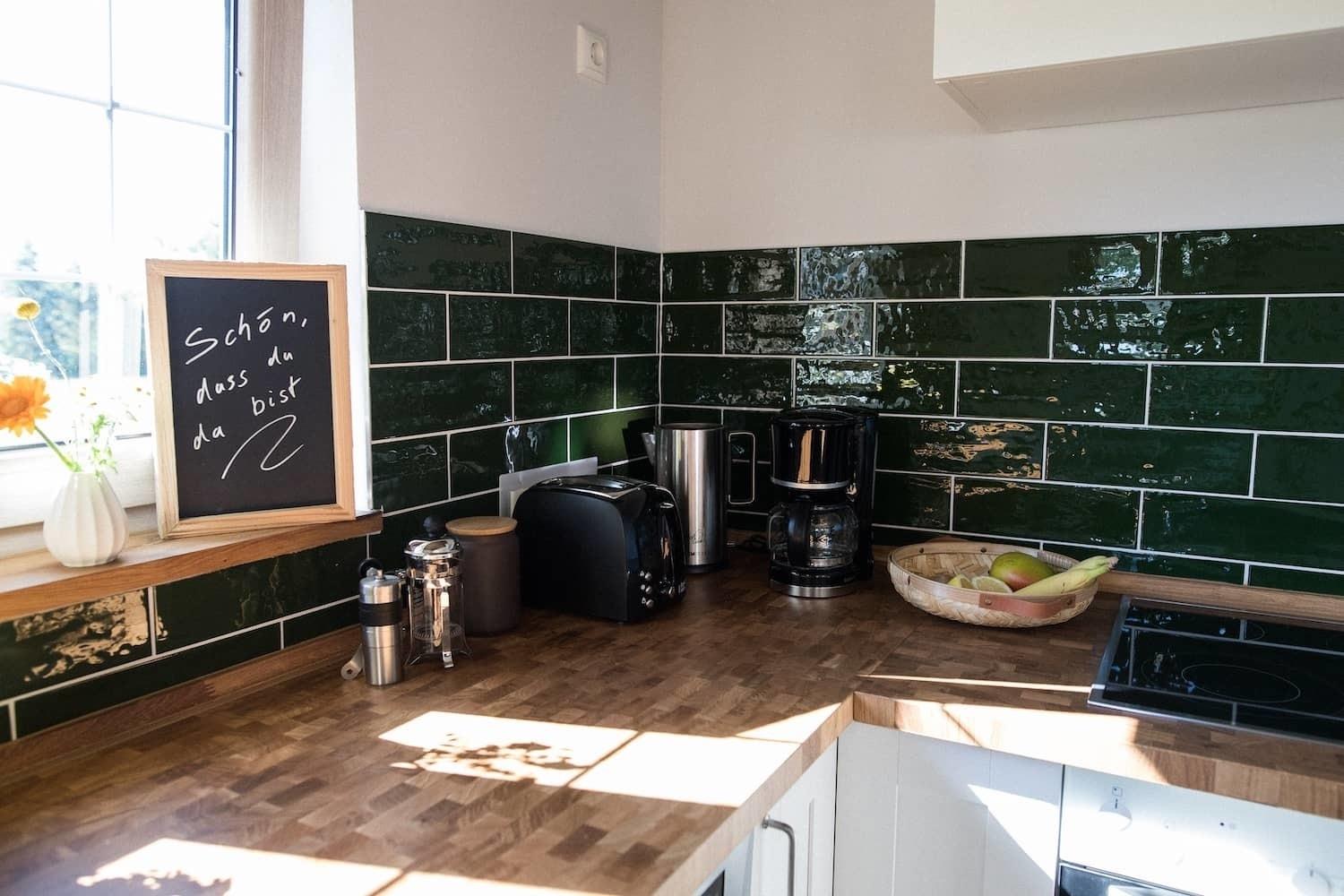 Die moderne und offene Küche des Ferienhauses ist komplettiert und komfortabel ausgestattet und bietet alles, was Du für Deine Urlaubsküche benötigst. Durch die hochwertigen Materialien, die in der Küche verbaut worden sind, wollen wir die Kochlust bei dir wecken.