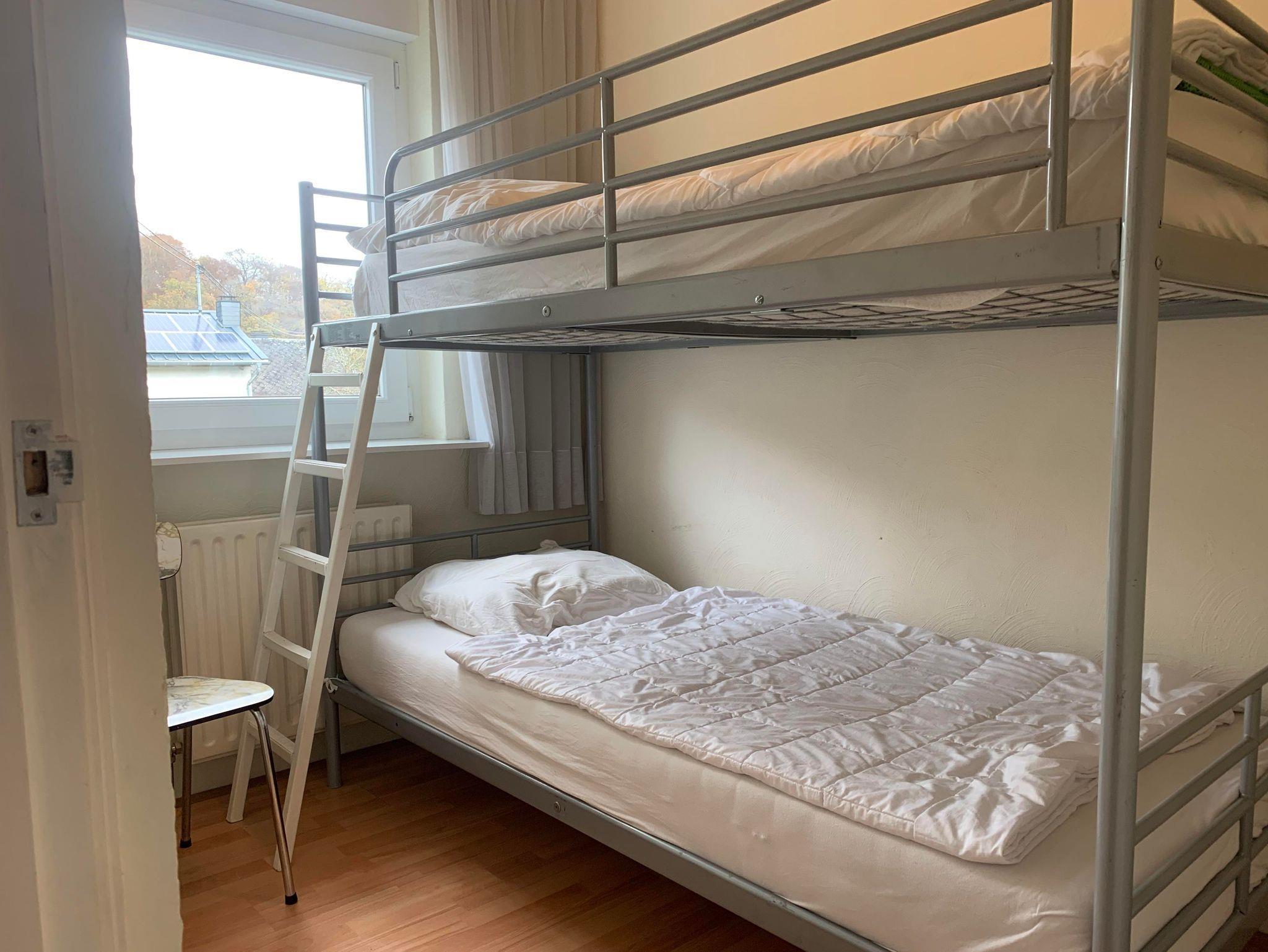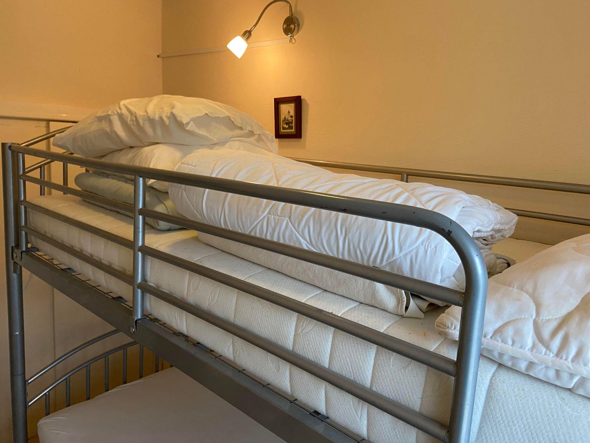 Ein Standard-Schlafzimmer mit Doppelbett und ein zusätzliches Schlafzimmer für zwei Personen (Etagenbett) im Erdgeschoss.