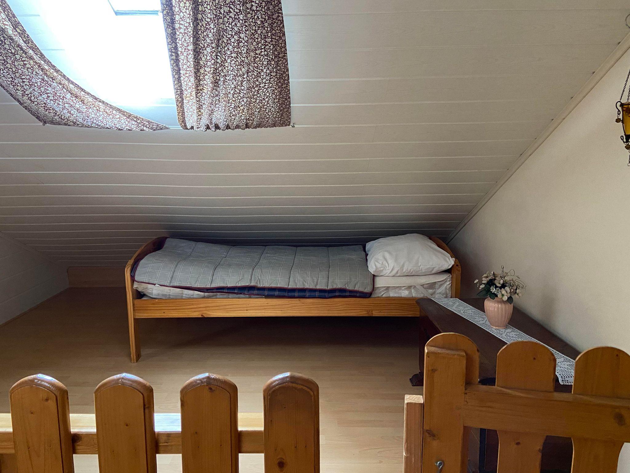 Offener Spitzboden über eine Raumspartreppe erreichbar mit zwei weiteren Betten.