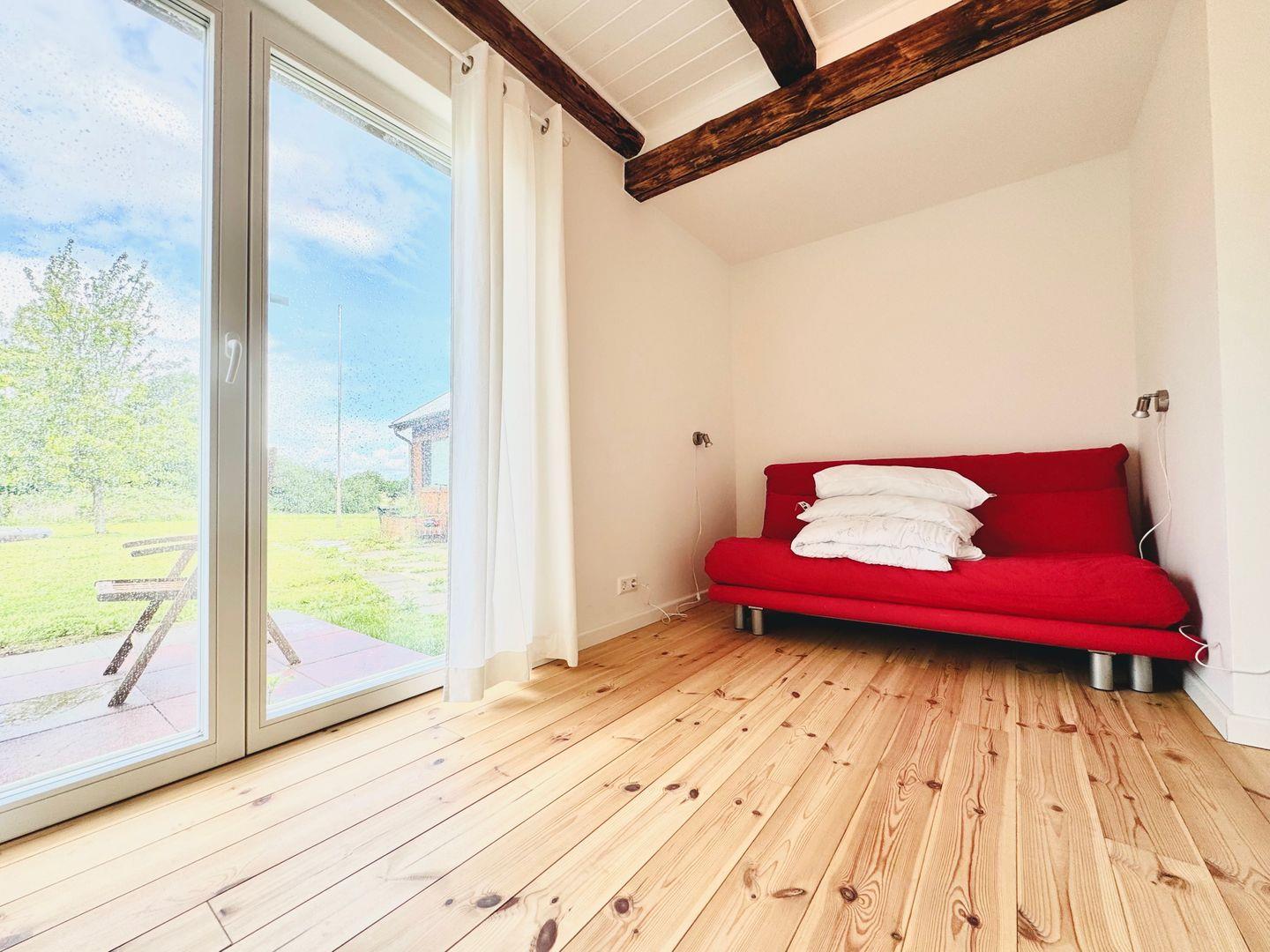 Der großzügige Terrasse lädt zum Entspannen ein und bietet ausreichend Platz für gesellige Grillabende oder sonnige Frühstücke im Freien. Genießen Sie die frische Luft im freien und lassen Sie sich von der malerischen Landschaft verzaubern. Ein eingeschränkter Blick auf die Schlei rundet das Gesamtbild ab und sorgt für eine besondere Atmosphäre.