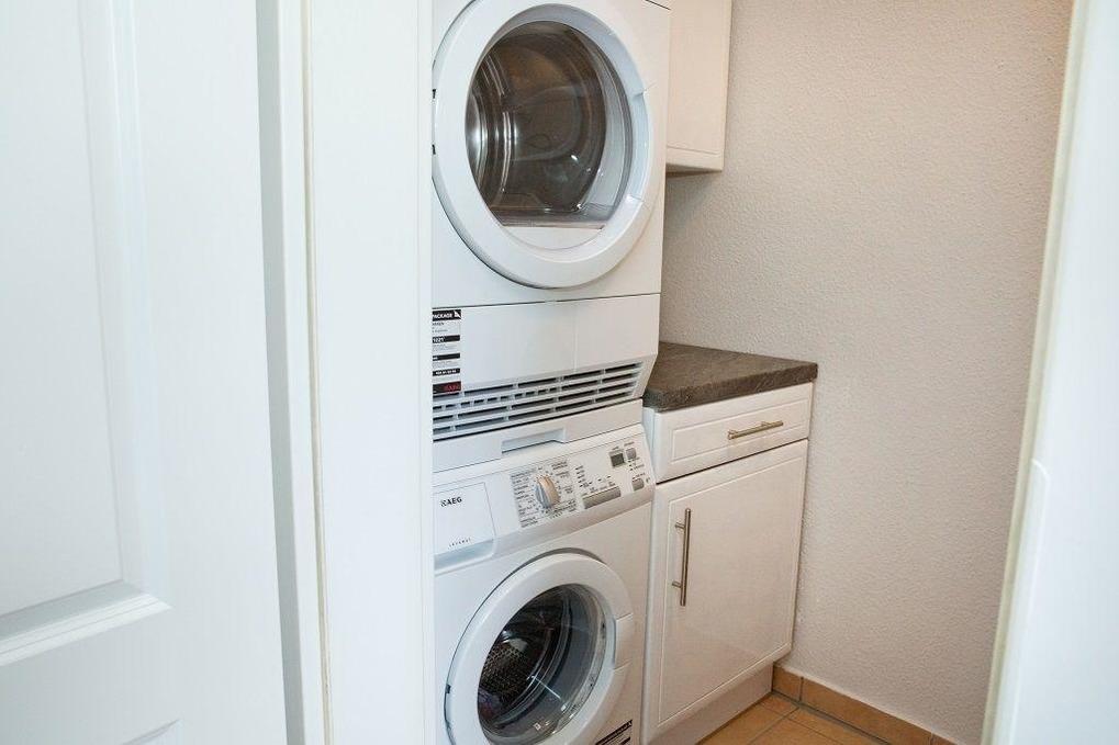 Sep. Raum mit Waschmaschine und Trockner.