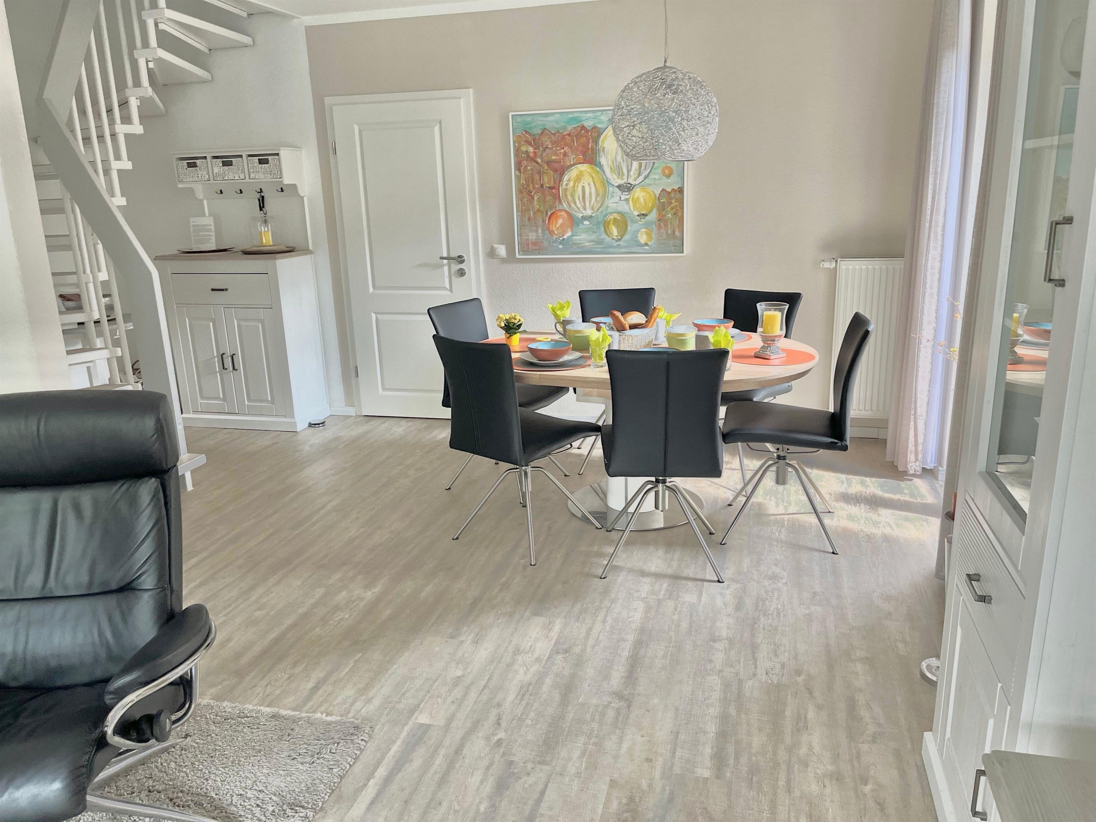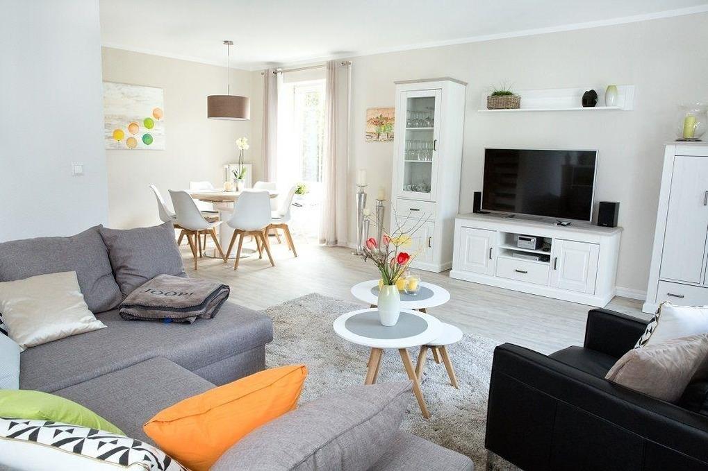 Es erwartet Sie ein großes Wohnzimmer mit Eßecke, TV, Blue-Ray-Player, HiFi-Kompaktanlage, sep. großzügige und mit allen Extras ausgestattete Küche, d. h. Induktionskochfeld, 4-Sterne-Kühlschr., Geschirrsp., Backofen, Mikrowelle, Kaffeemaschine, Padmaschine, Toaster, Wasserkocher, elek. Zitruspresse f. frischen O-Saft, Hand- u. Stabmixer, Waffeleisen etc.