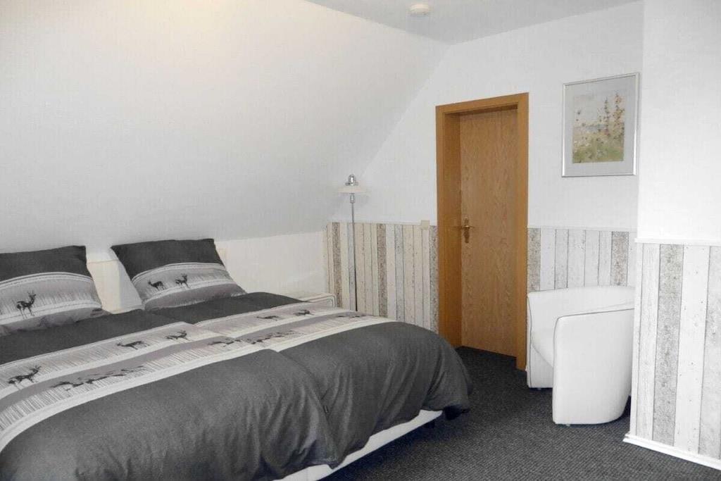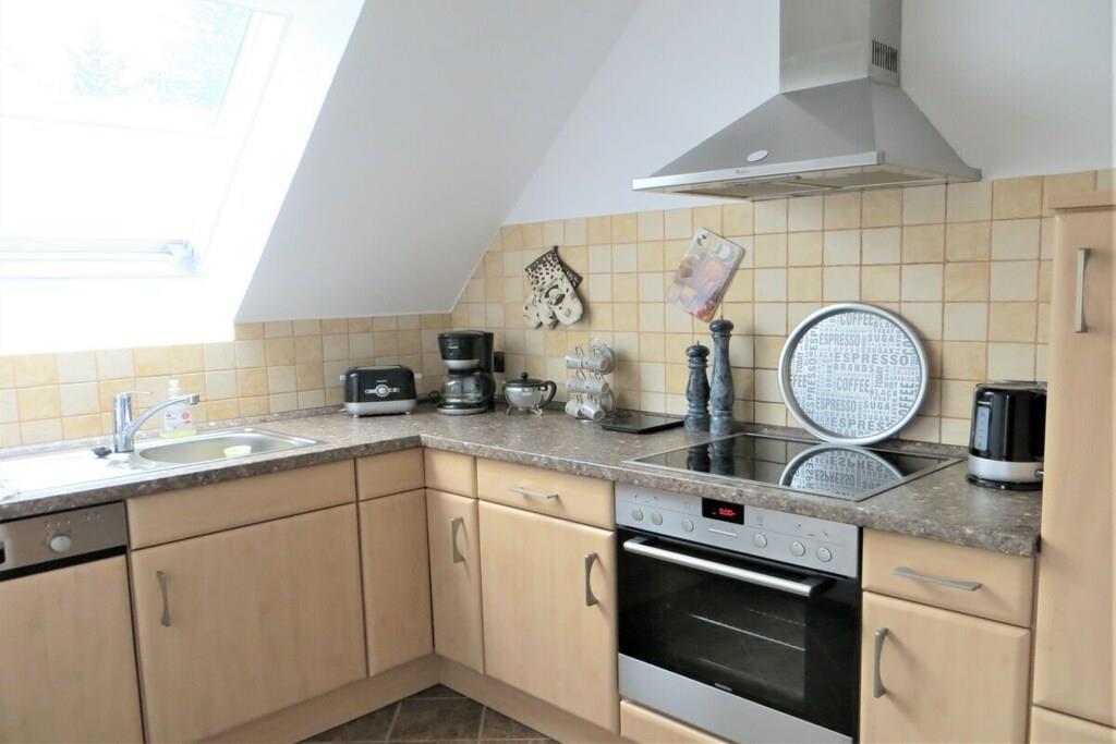 Kærligt møbleret ferielejlighed (80 m²) med balkon, renoveret og nyindrettet, bestående af en rummelig stue med komfortabel sidde- og spiseplads, elektrisk pejs og et stort smart-tv (inkl. engelsk parabolantenne). Soveværelse 1 har en komfortabel boxmadras (180 x 200 cm), mens soveværelse 2 har en stor sovesofa (160 x 200 cm) samt en ekstra seng og en babyseng (hvis nødvendigt). Det veludstyrede køkken tilbyder alt, hvad du behøver til madlavning, inklusive ovn, keramisk kogeplade og opvaskemaskine. Badeværelset har bruser, badekar og toilet.