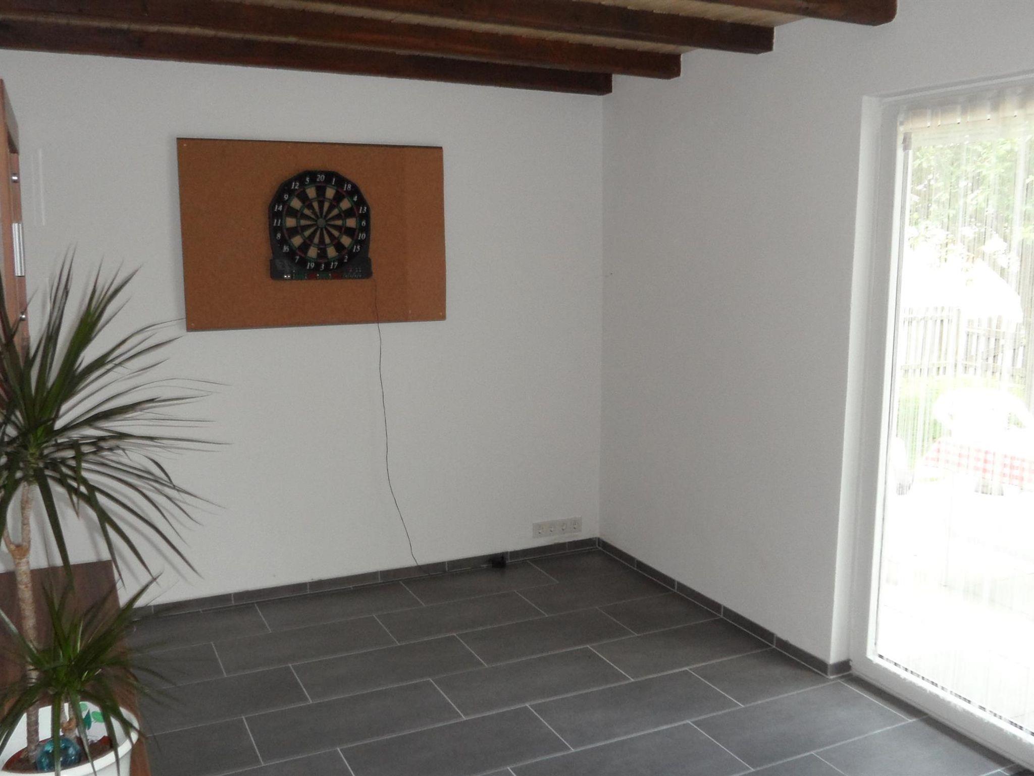 Der Anbau mit Zugang zur Terrasse lässt auch bei schlechtem Wetter keine Langweile aufkommen (Spielmöglichkeiten vorhanden).