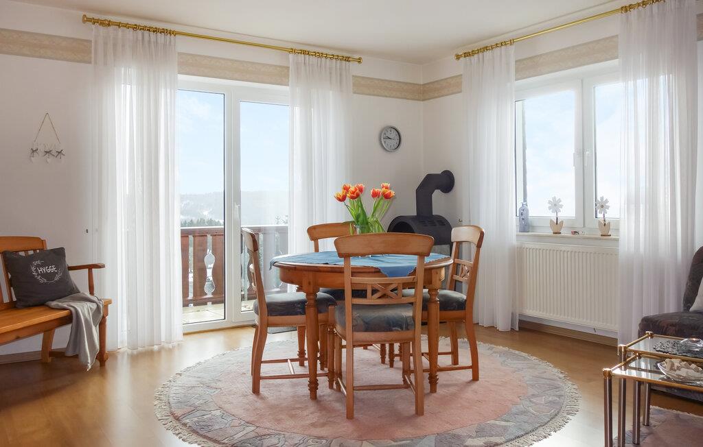 Denne skønne lejlighed ligger i et større kompleks i en idyllisk beliggenhed med udsigt til bakker, enge og skove. Her venter jer en behagelig base, hvor I kan fyre op i brændeovnen og hvile stængerne med brætspil og kortspil ved spisebordet. Boligen er udstyret med alt, I behøver til en afslappende ferie uden de store bekymringer. I sommermånederne kan I trække ud på altanen og nyde en lækker morgenmad med en skøn udsigt til de smukke omgivelser.