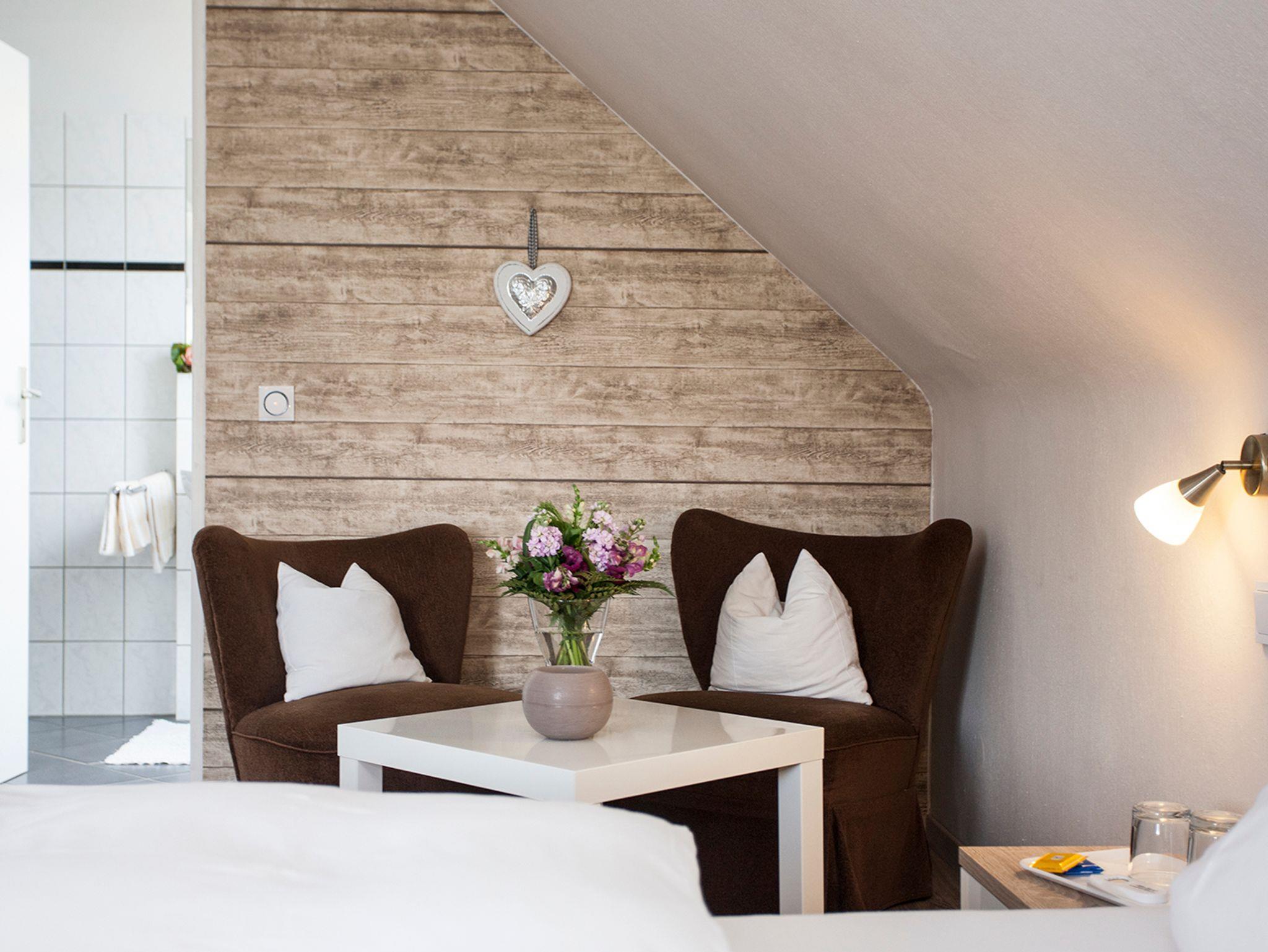 Freundlich eingerichtete Doppelzimmer mit Sitzecke/TV und seperatem Badezimmer mit Dusche/WC