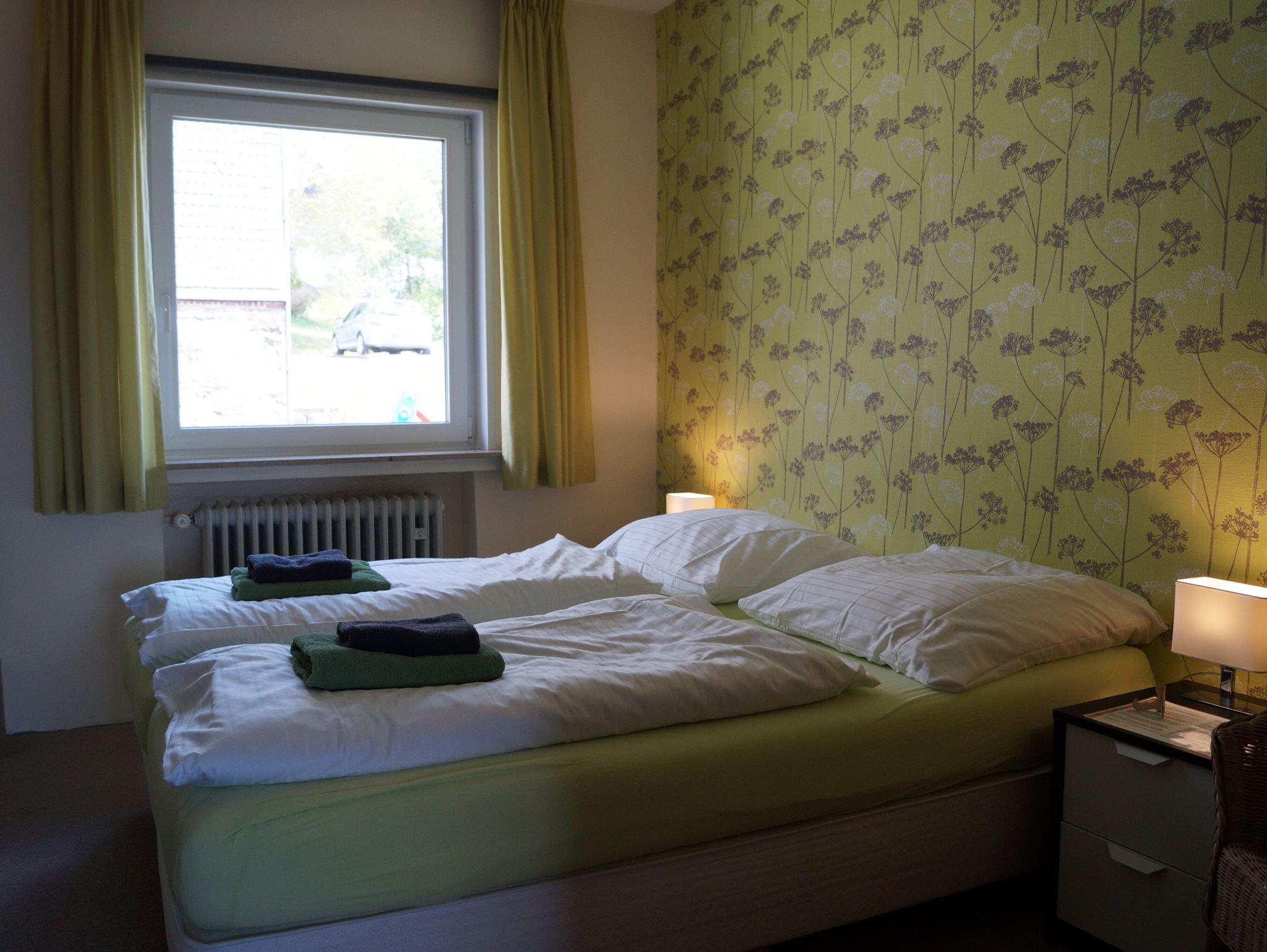 Platz für 4 Personen mit privater sanitärer Einrichtung. Der Raum ist in 2 Zimmer unterteilt. In biede Zimmer 2 separate Einzelbetten. Bettwäsche ist im Preis inklusive. Ein Schrank schafft Platz für ihr Gepäck und Kleidung. Das Zimmer bietet einen tollen Garten- und Bergblick. Ebenfalls ist ein eigenes Bad mit Dusche und WC vorhanden. Handtücher liegen im Badezimmer bereit. Kostenloses Wlan steht zur Verfügung.