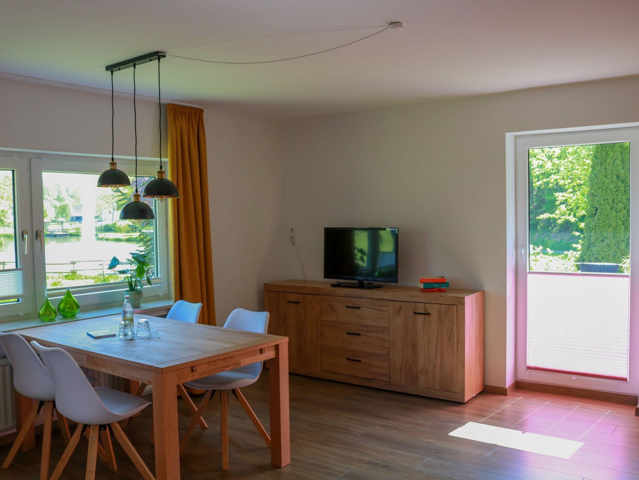 Die Ferienwohnung befindet sich im 1. Obergeschoss des Hauses. Die Wohnung verfügt über ein Schlafzimmer mit Doppelbett und ein Schlafsofa im Wohnbereich. Eine Küchenzeile mit Kühlgefrierkombination, Spülmaschine, 2 Plattenherd, Kaffeemaschine, Wasserkocher, Toaster und ein Minibackofen ist ebenfalls vorhanden. Das Badezimmer verfügt über Dusche, WC, Waschbecken und Föhn. Ein sonniger Balkon mit Blick auf den See lädt zum Verweilen und Entspannen ein.