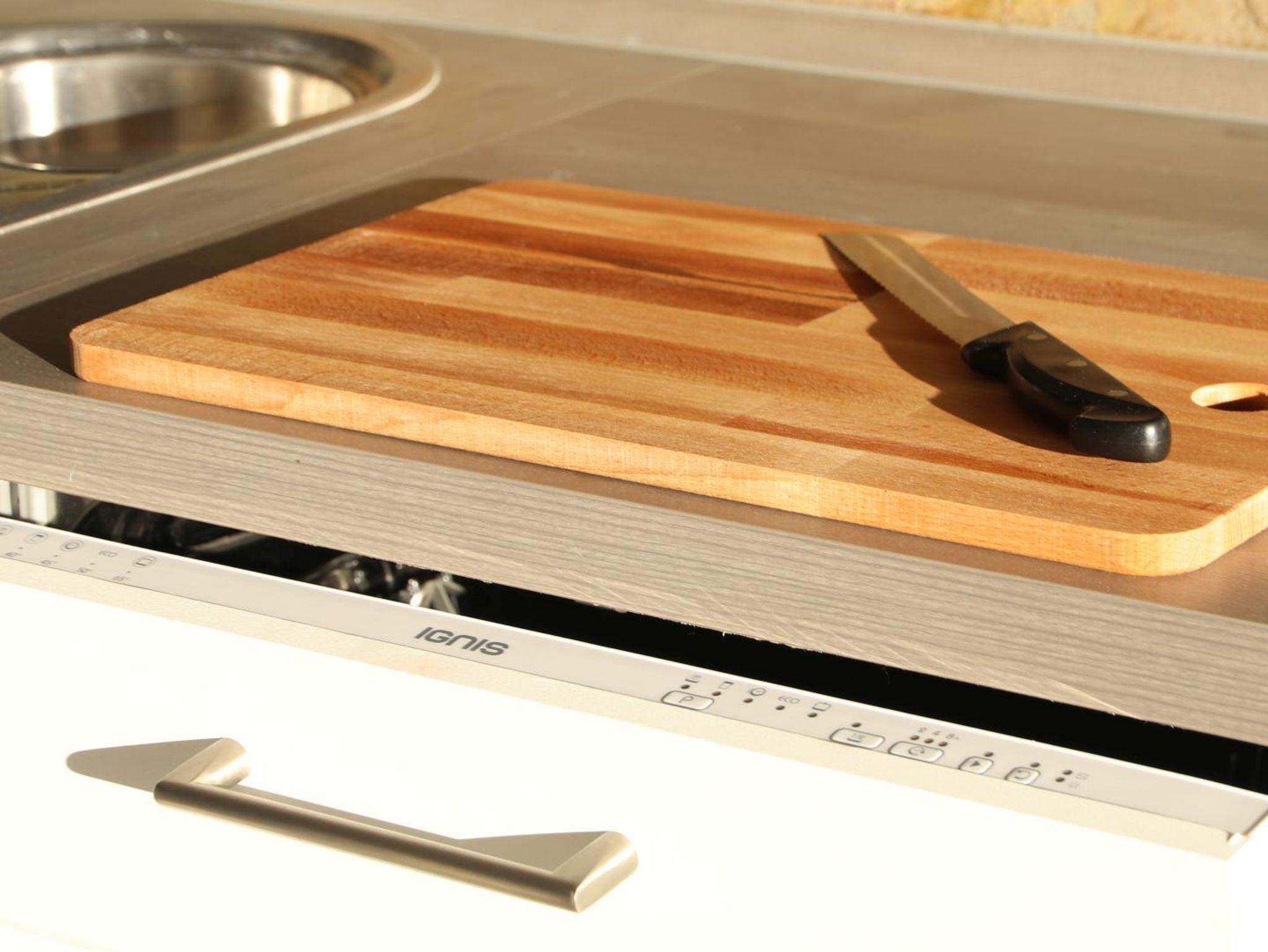 Die Küchenzeile ist mit einem Kühlschrank mit Gefrierfach, Backofen, Herd und Geschirrspülmaschine ausgestattet. Küchenwäsche ist inklusive.
