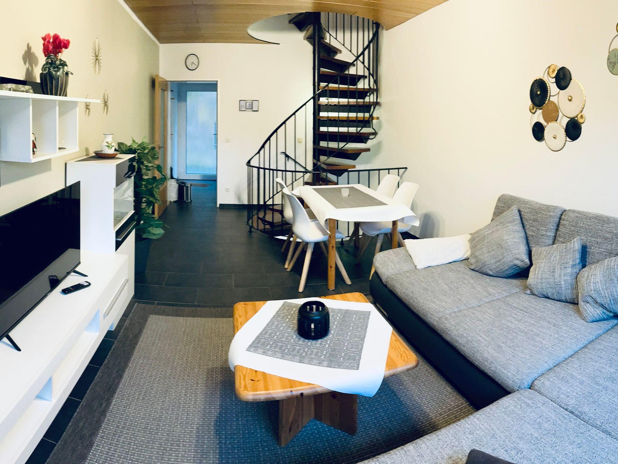 Gemütliche FeWo für 4 Personen, die Wohnung ist über drei Etagen mit einer Wendeltreppe aufgeteilt.