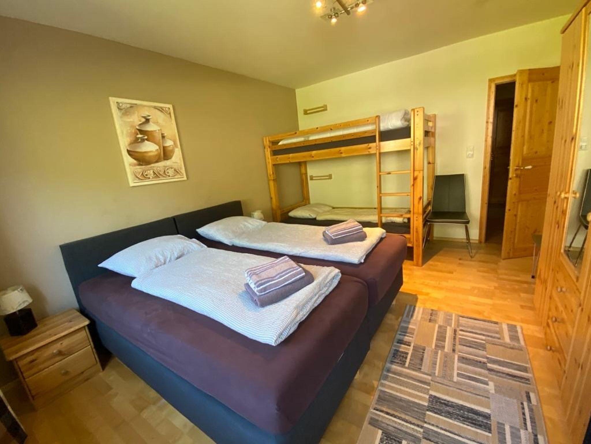 Das Haus ist aufgeteilt in 3 Wohnungen, die getrennt oder gemeinsam vermietet werden. Jedes Wohnung hat eine eigene Haustür, zugänglich aus dem gesamten Treppenhaus, mit einem Haustelefon, damit Ihrer Privatsphäre gewährleistet bleibt und Ihrer Aufenthalt so gemütlich wie möglich ist. Die Wohnungen sind sehr nett und geschmackvoll eingerichtet, damit man sich schnell wie zu Hause fühlt. Im Wohnzimmer befinden sich ein Smart-Fernseher (mit Streaming-Funktionen) und DAB-Radio. Die Küche ist völlig ausgerichtet mit u.a. einem Kühlschrank, einem Gefrierschrank, einer Kaffeemaschine (Senseo und Filterkaffee), einem Wasserkocher, einem Geschirrspüler, einem Toaster, einem Ofen und eine Mikrowelle. Es ist kabelloses Internet verfügbar. Im Keller befinden sich eine Waschmaschine und ein Trockner für Ihre Urlaubswäsche zwischendurch. Es gibt ein Spielzimmer im Keller das mit allen Arten von Spielzeug und diverse Bücher ausgestattet ist und auch eine Tischtennisplatte fehlt nicht. Im Winter gibt es die Möglichkeit Ihrer Ski's im Keller auf zu räumen, im Sommer ist hier Platz für Fahrräder / Mountainbikes oder Motorräder. Hochstuhl, Kinderbett und Wickeltisch sind vorhanden.