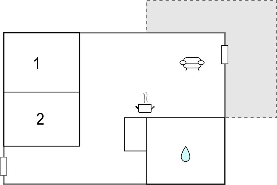 Opholdsstue/køkken - 1 Soveplads. (Sofa, madras eller lignende).