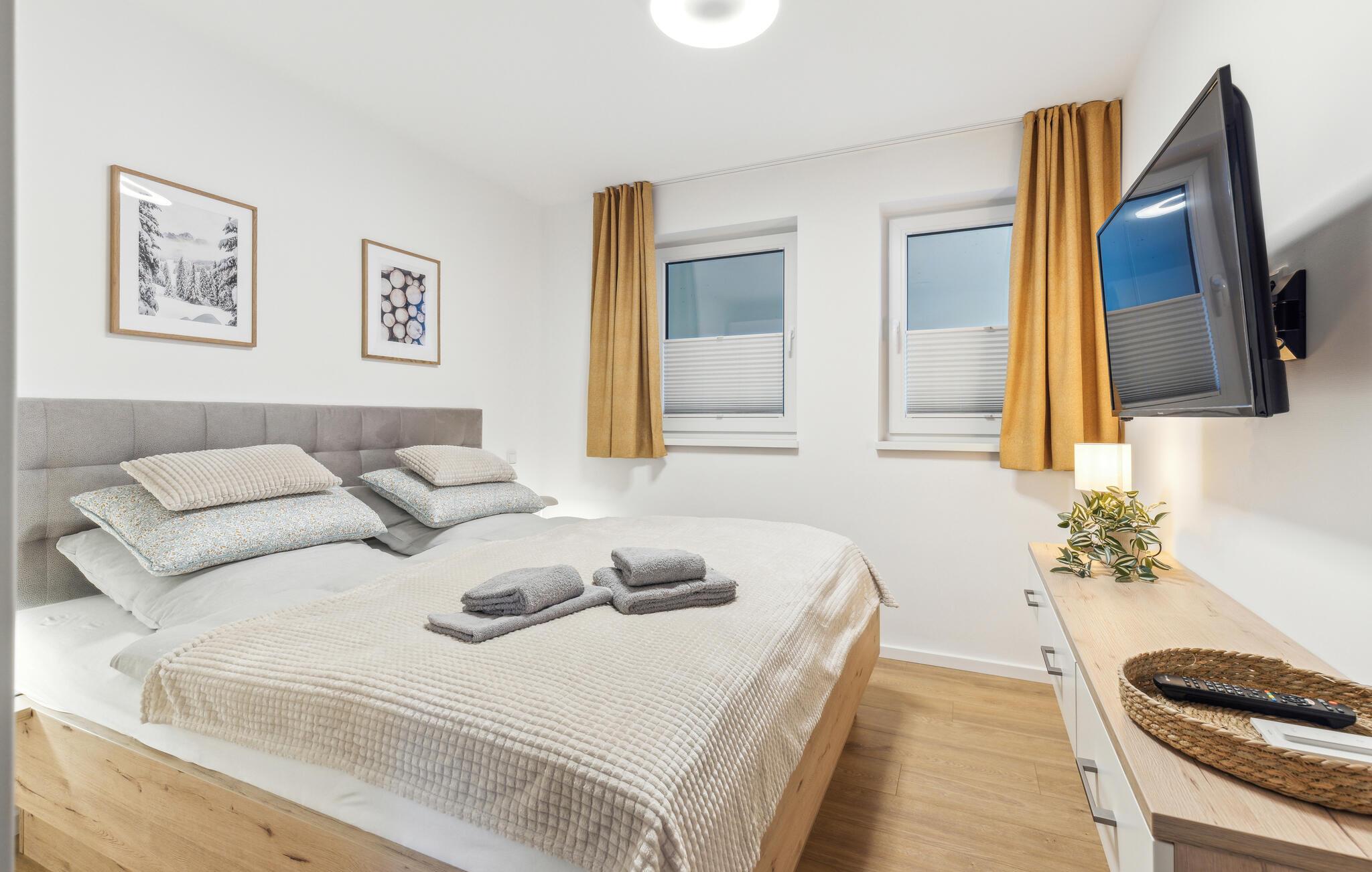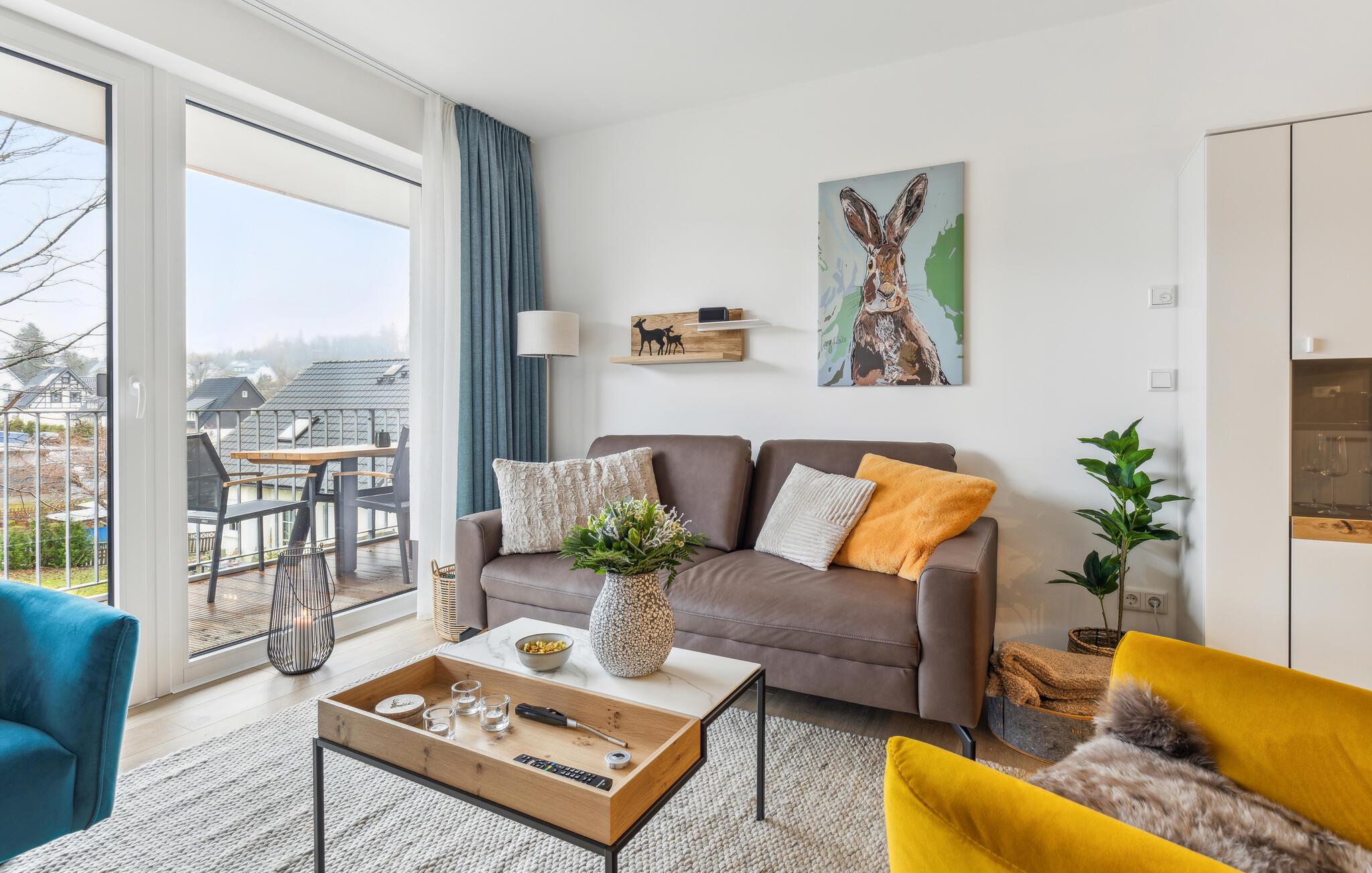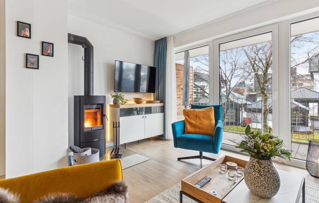 Glæd jer til en afslappende og varieret ferie i denne ferielejlighed i Winterberg, tæt på smuk natur. Lejlighedernes eksklusive møbler omfatter et fuldt udstyret køkken med højkvalitets hvidevarer. Lejligheden har to soveværelser og en meget lys og rummelig stue. Ferielejligheden byder på masser af plads til aktiviteter sammen, uanset om I laver mad sammen, holder spilleaften eller hygger jer i sofaerne. Pejsens stille knitren skaber en særlig hyggelig atmosfære. Den smagfulde indretning giver optimale betingelser for at tilbringe en god tid sammen i en stilfuld atmosfære.
