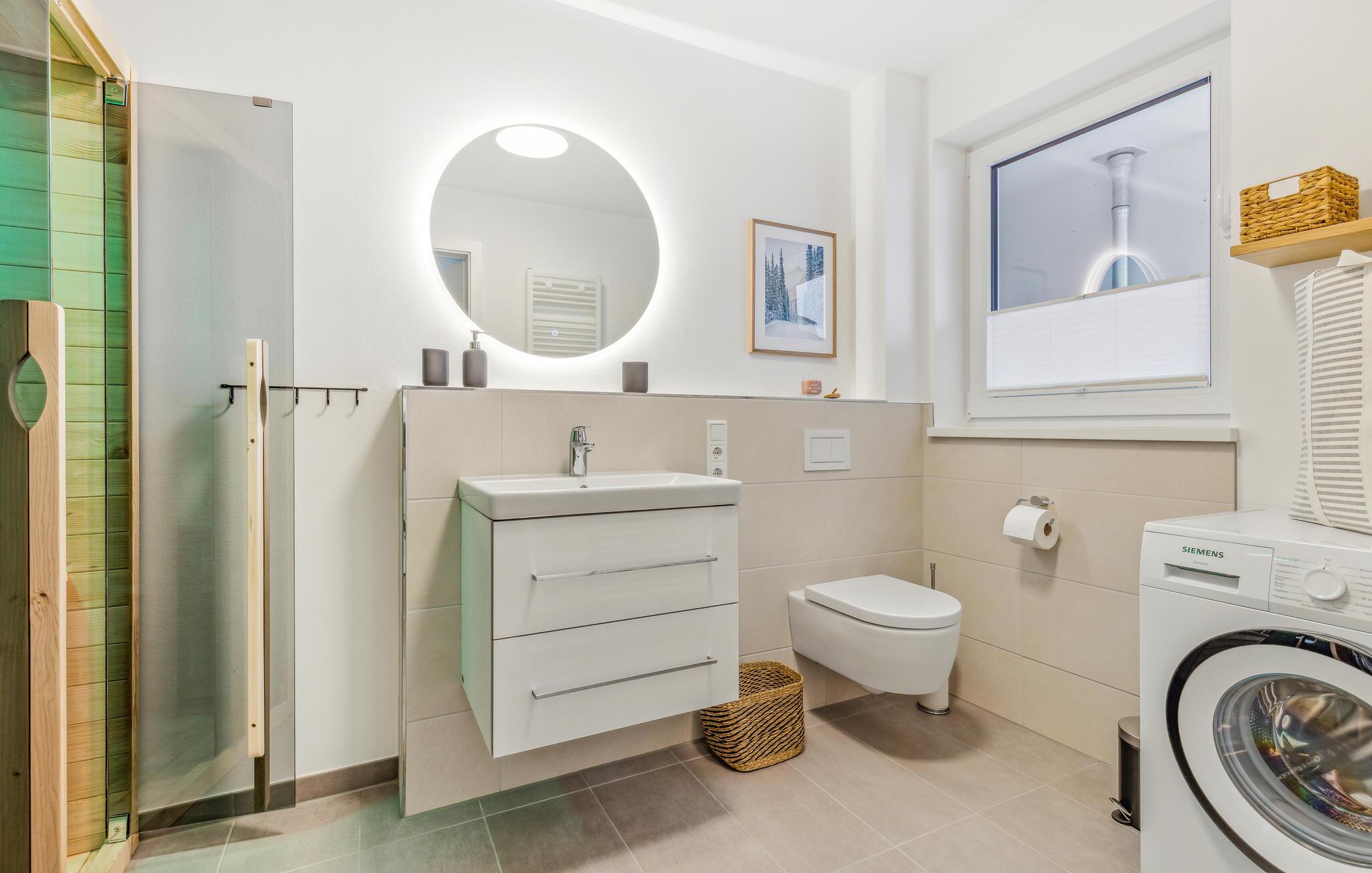 Men man kan ikke bare tilbringe skønne timer i ferielejligheden. På varme sommerdage tilbyder altanen med havemøbler et vidunderligt sted at slappe af. Her kan I få en afslappet morgenmad og tilberede lækre måltider på grillen. Et højdepunkt ved ferielejligheden er saunaen af ??høj kvalitet, hvor I kan slappe af selv på frostklare vinterdage.