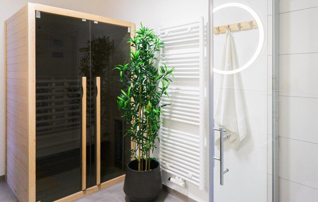 Men man kan ikke bare tilbringe skønne timer i ferielejligheden. På varme sommerdage tilbyder altanen med havemøbler et vidunderligt sted at slappe af. Her kan I få en afslappet morgenmad og tilberede lækre måltider på grillen. Et højdepunkt ved ferielejligheden er saunaen af ??høj kvalitet, hvor I kan slappe af selv på frostklare vinterdage.