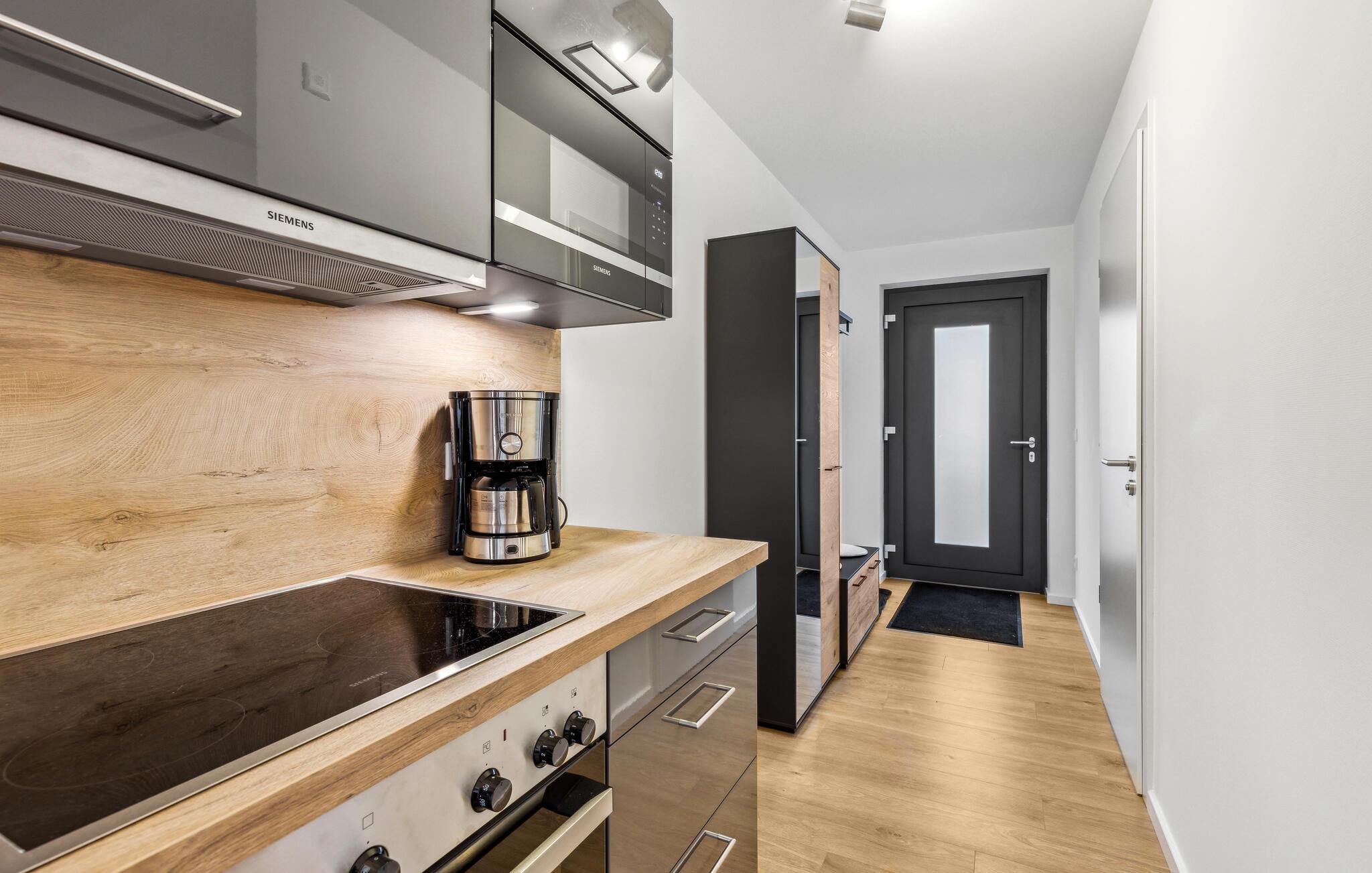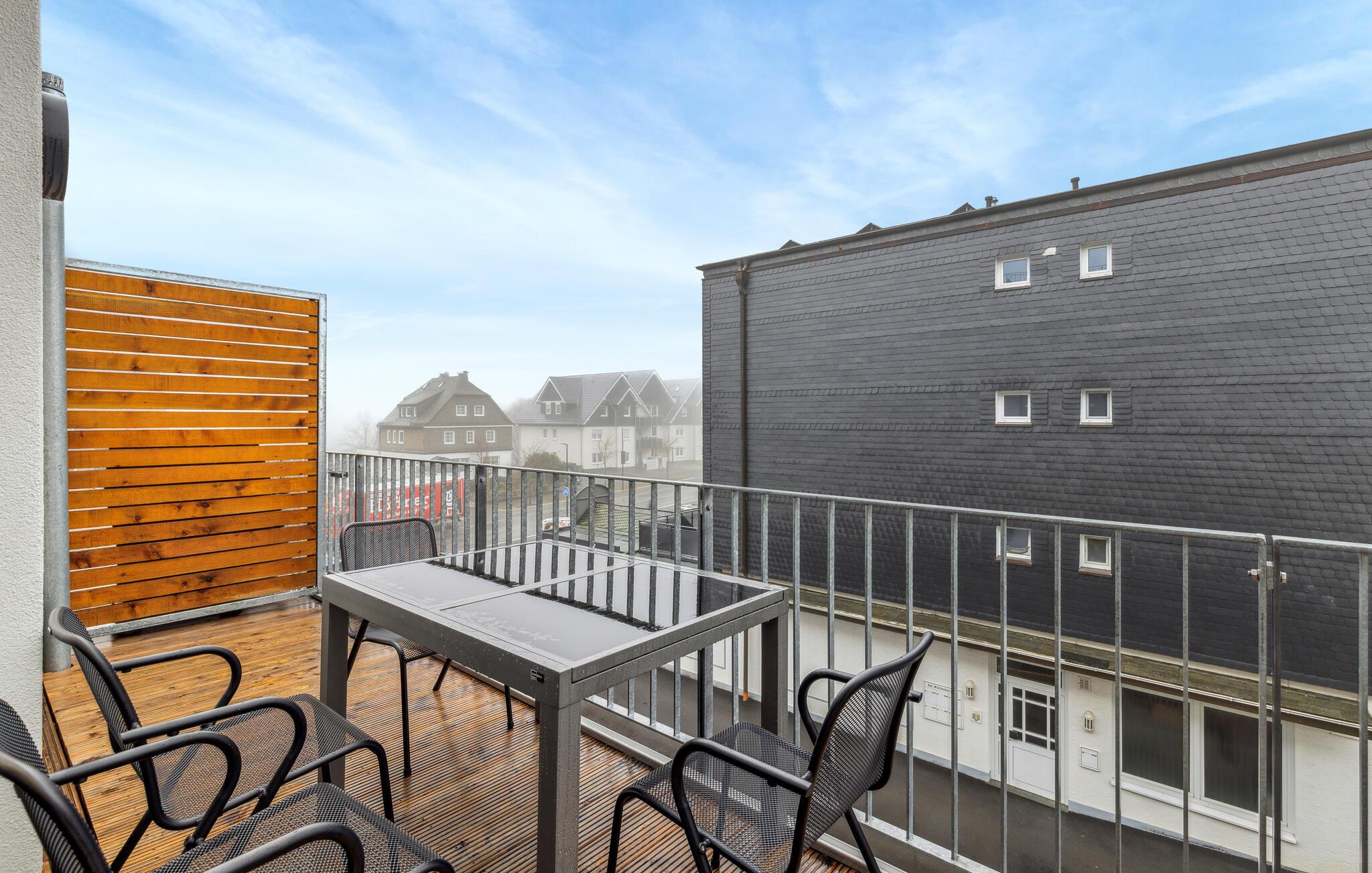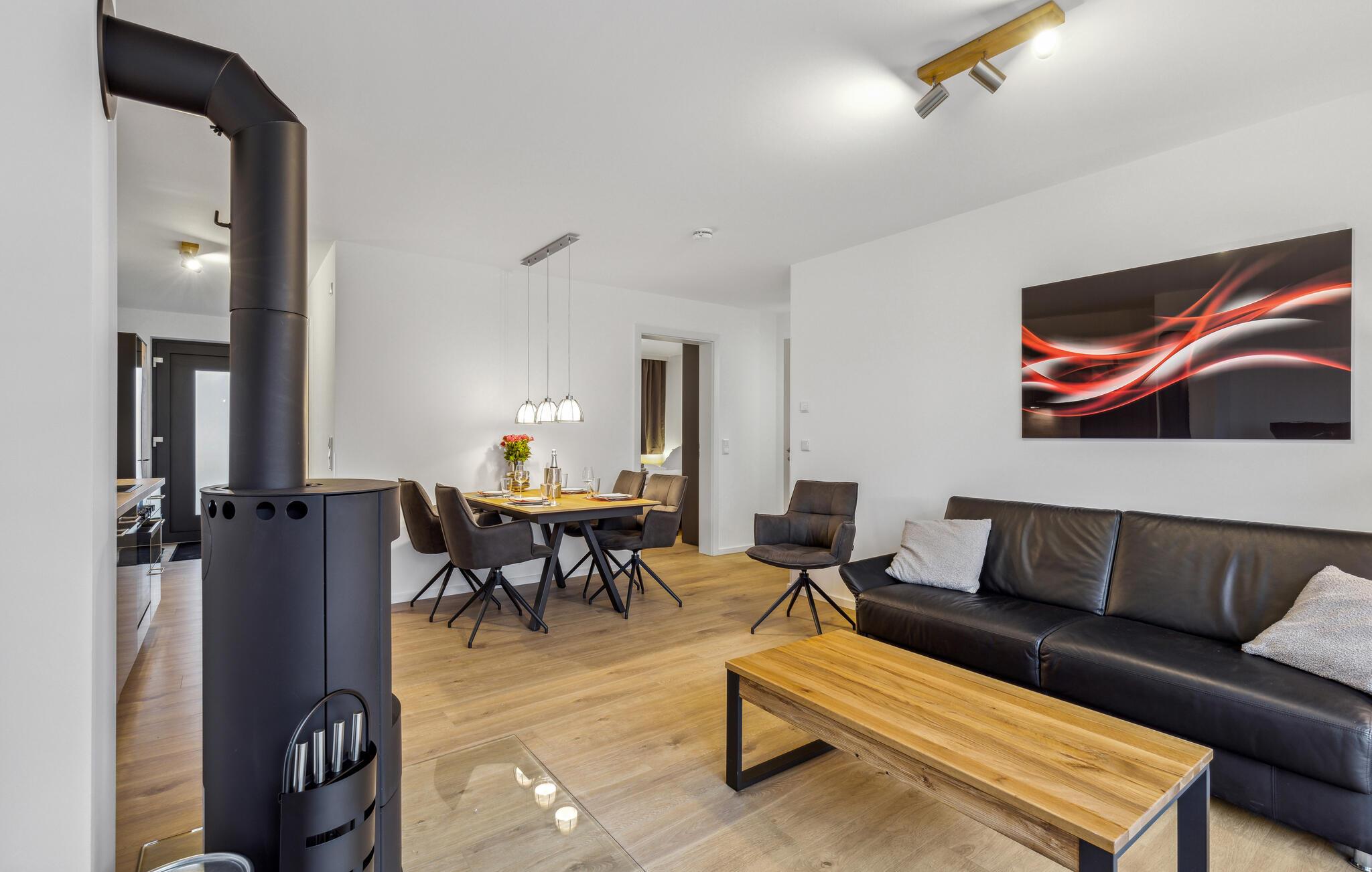 Glæd jer til en afslappende og varieret ferie i denne ferielejlighed i Winterberg, tæt på smuk natur. Lejlighedernes eksklusive møbler omfatter et fuldt udstyret køkken med højkvalitets hvidevarer. Lejligheden har to soveværelser og en meget lys og rummelig stue. Ferielejligheden byder på masser af plads til aktiviteter sammen, uanset om I laver mad sammen, holder spilleaften eller hygger jer i sofaerne. Pejsens stille knitren skaber en særlig hyggelig atmosfære. Den smagfulde indretning giver optimale betingelser for at tilbringe en god tid sammen i en stilfuld atmosfære.